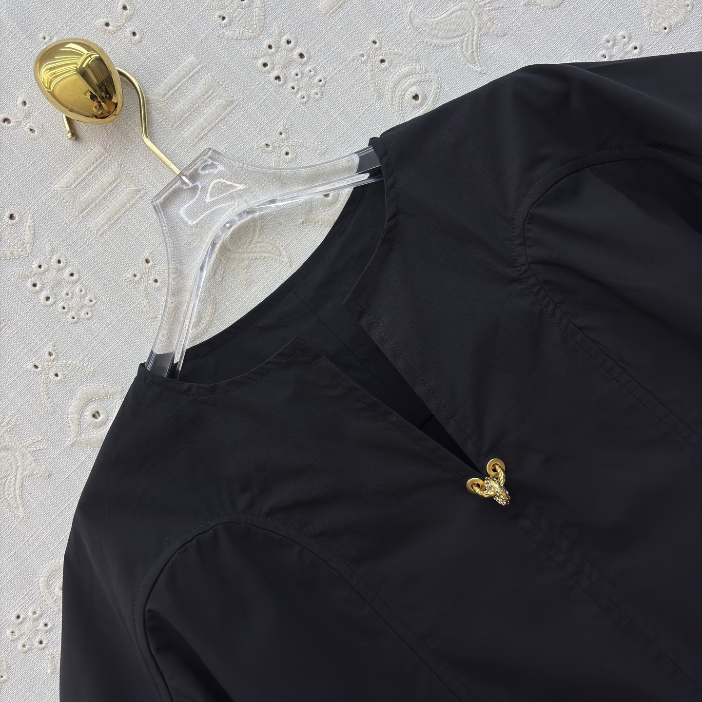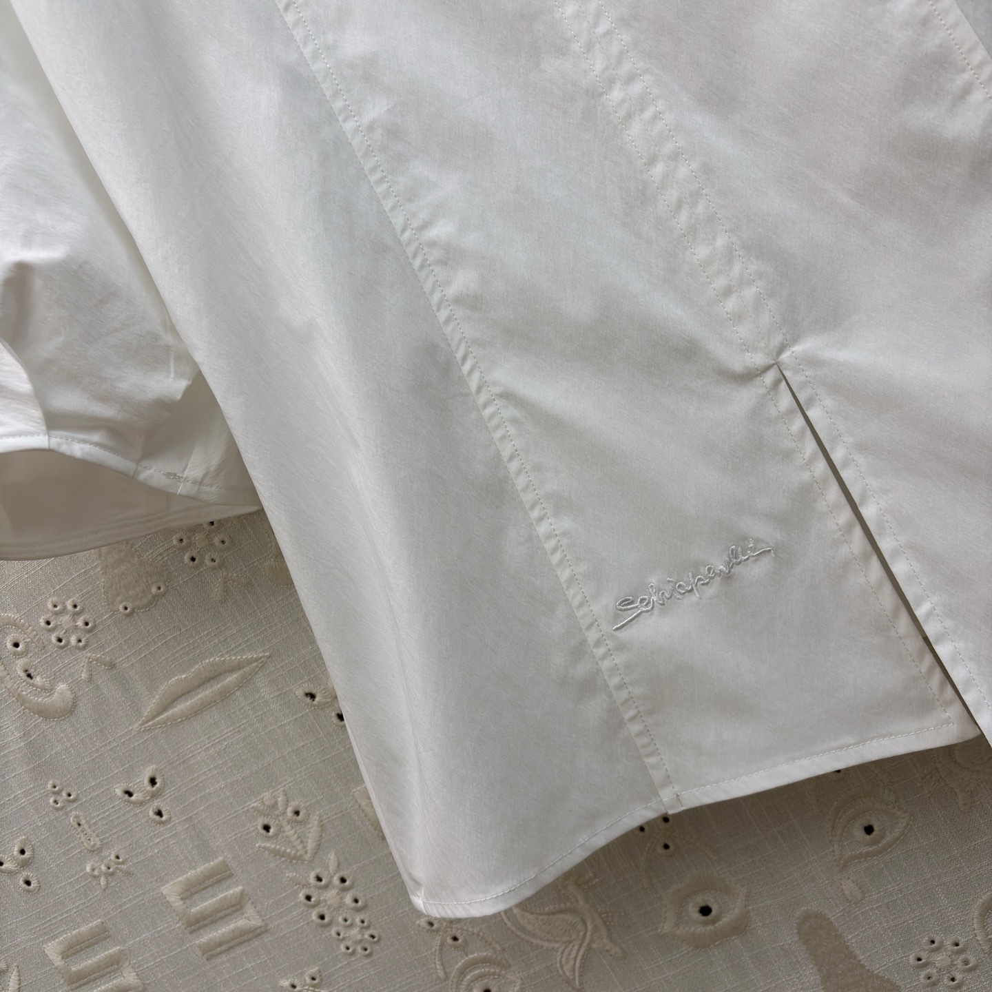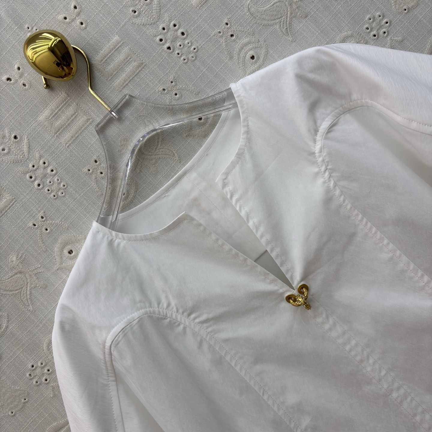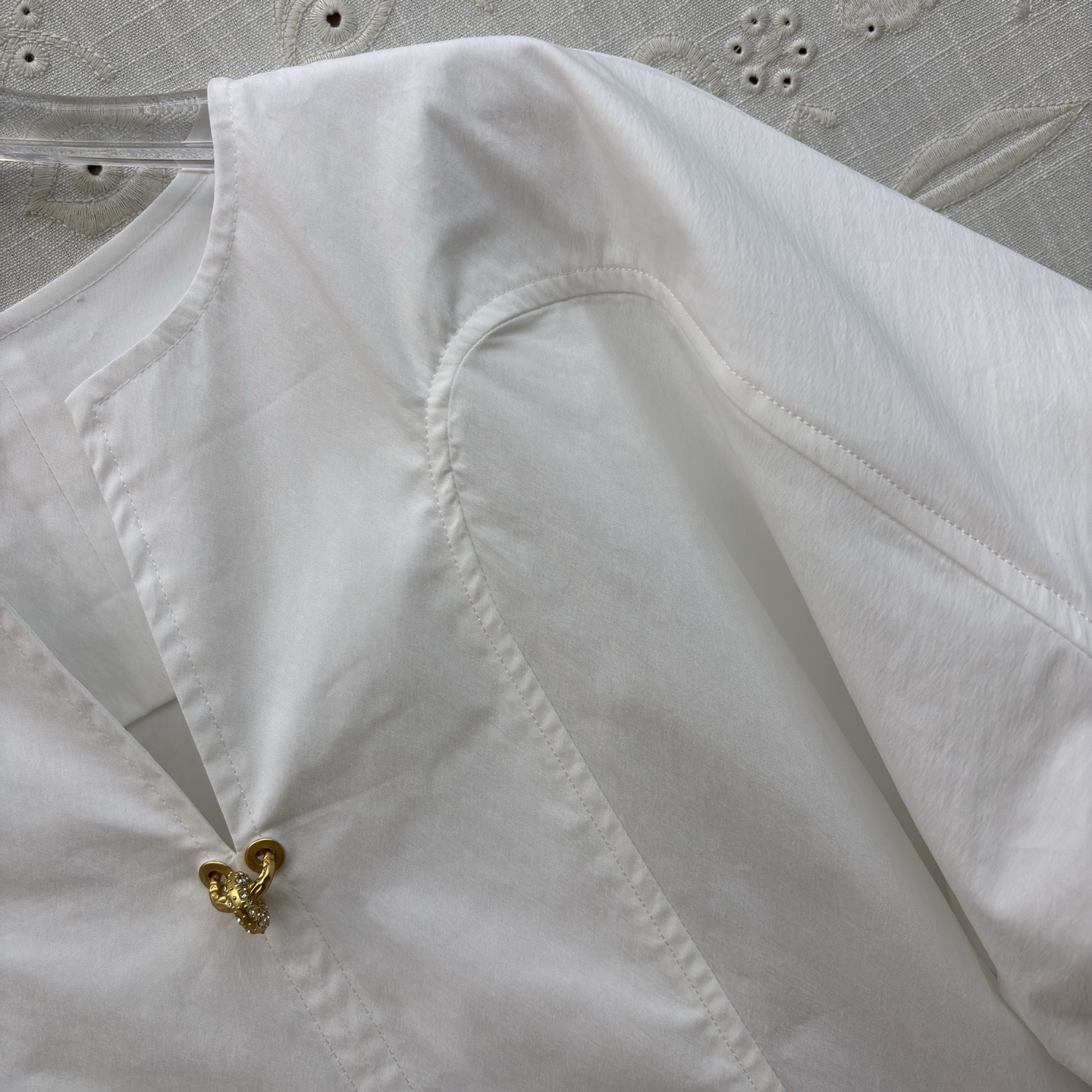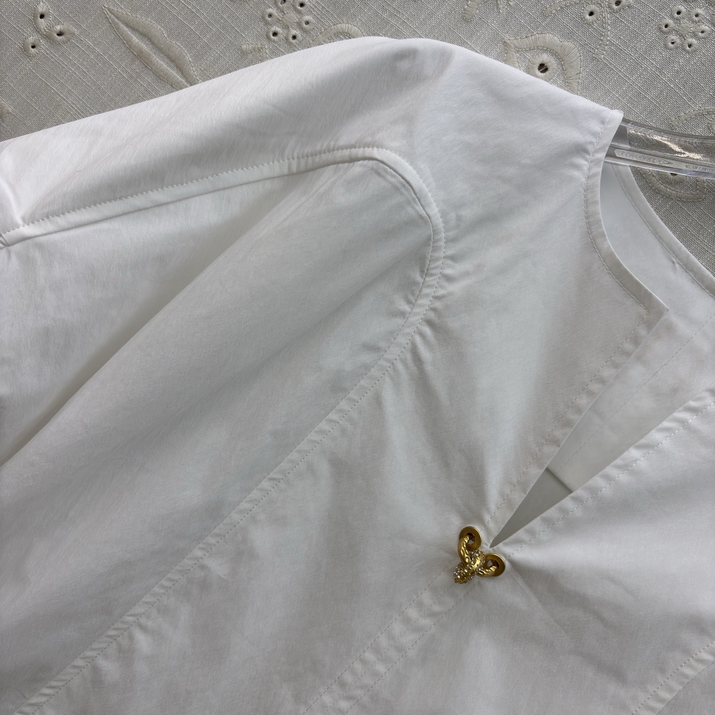 Блузка с пышными рукавами в сочетании с юбкой миди. Небольшой V-образный вырез и металлические пряжки помогают скрыть руки. Продается отдельно в размерах S, M и L