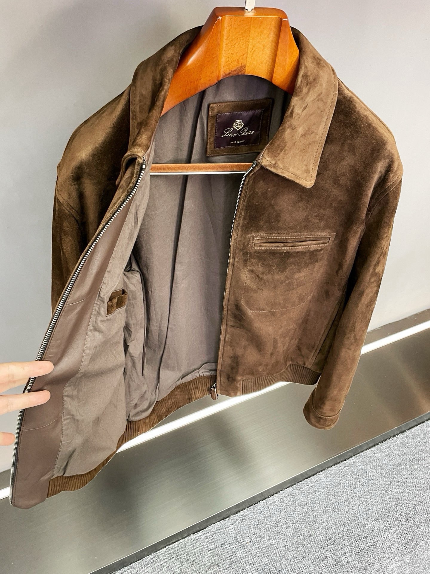 Бренд Loro Piana: это итальянская компания, являющаяся образцом сдержанной элегантности в мире ультра-роскошной моды. Она известна использованием лучших в мире материалов, таких как сверхтонкая шерсть и кашемир, и тщательным мастерством. Модель сочетает легкость рубашки и статусность кожаной куртки. Она выполнена из мягкой натуральной замши с бархатистой фактурой. Куртка имеет водоотталкивающую пропитку. Дизайн включает отложной воротник, нагрудные накладные карманы с клапанами и застежку-молнию. Куртка отличается легкостью и комфортной посадкой по фигуре.