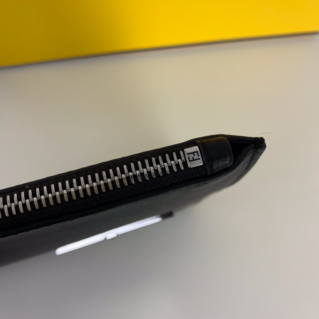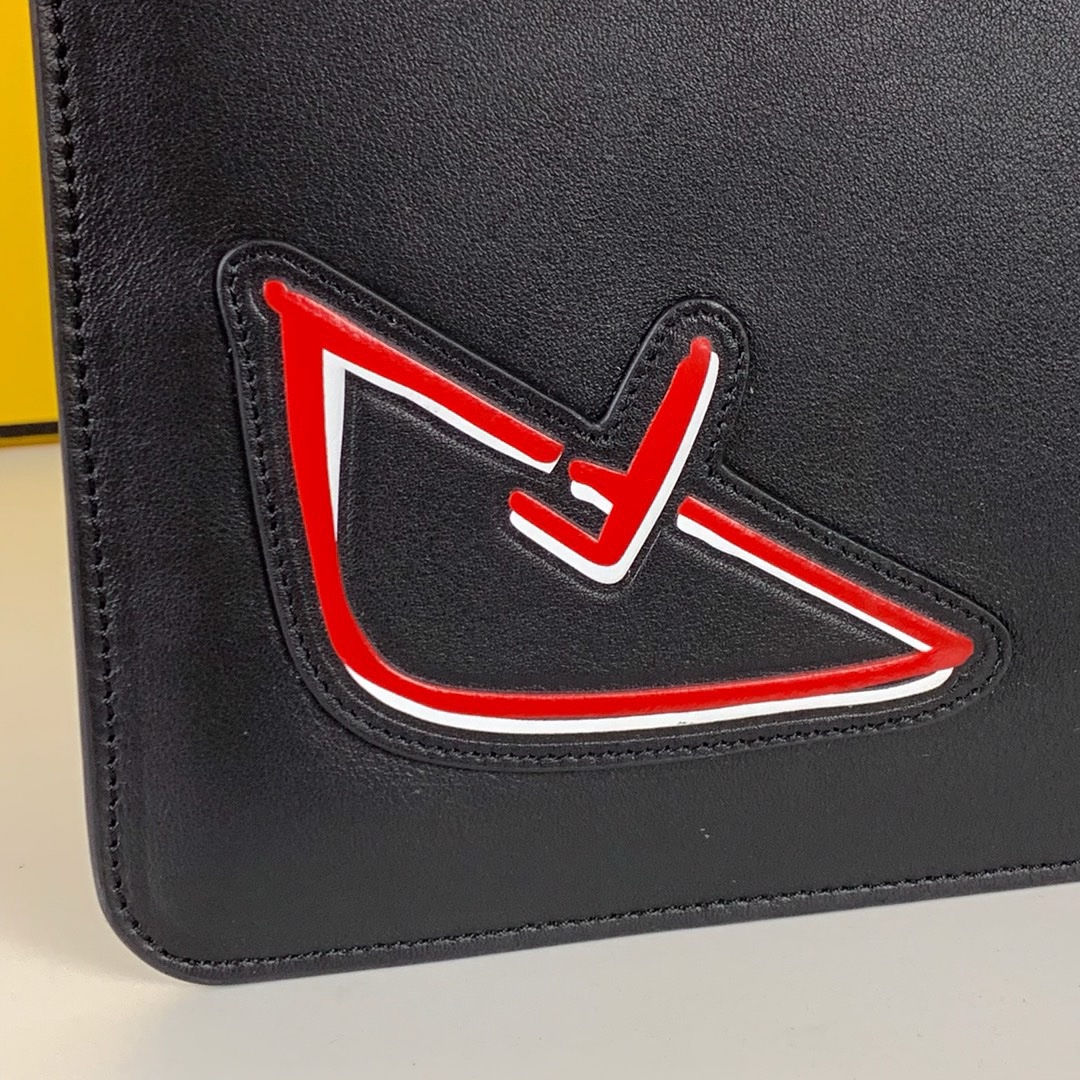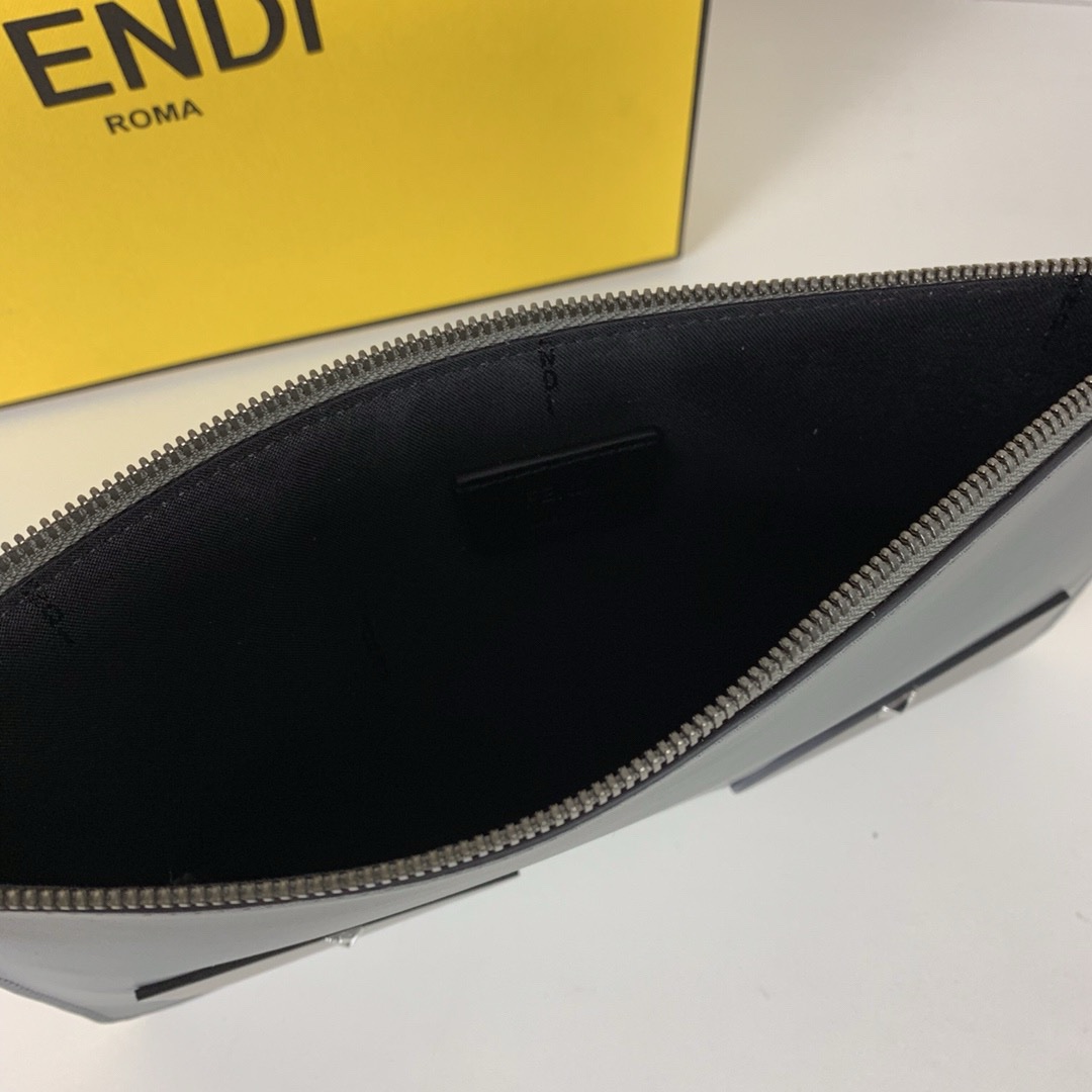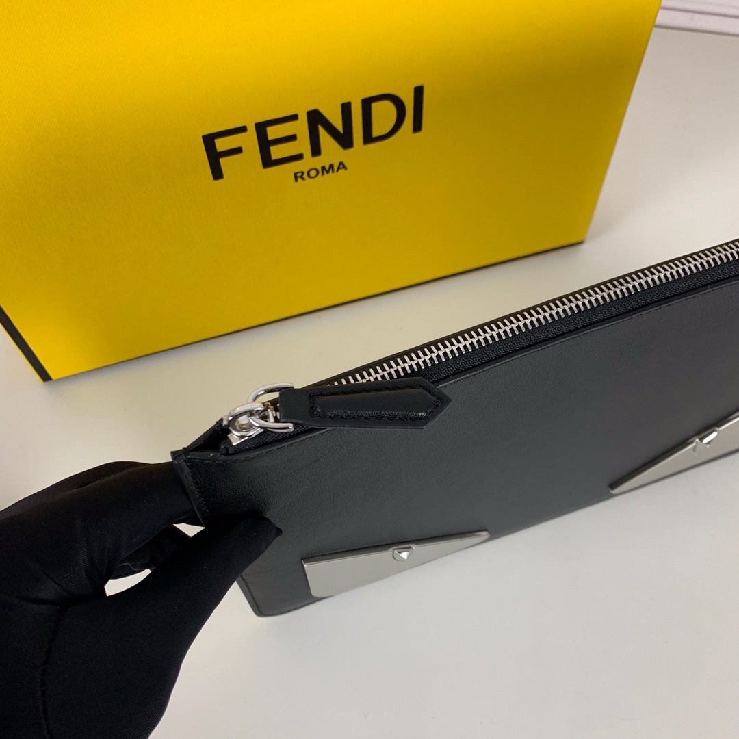 Клатч FENDI на молнии Внутренний плоский карман, флуоресцентная кожа. Украшен черной матовой металлической аппликацией в форме «глаза жука». Фурнитура с палладиевым покрытием. Сделано в Италии. Размеры: 27х20х6 см