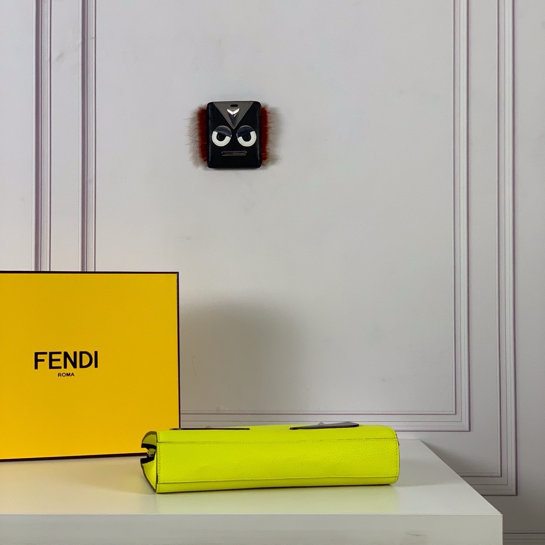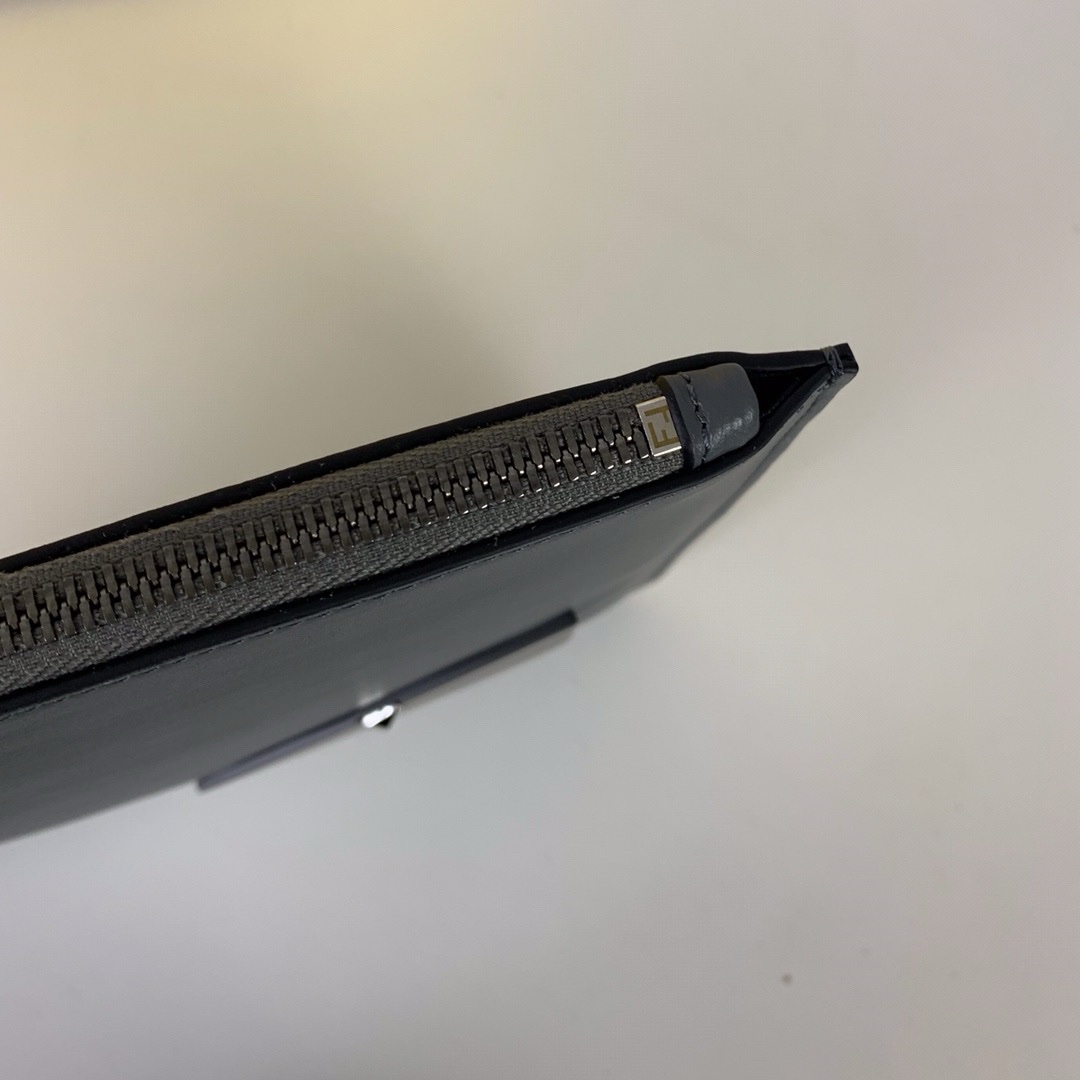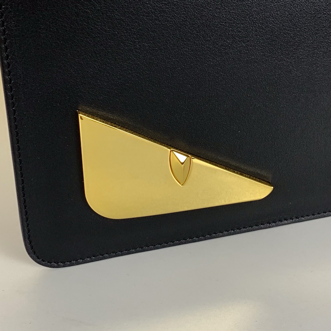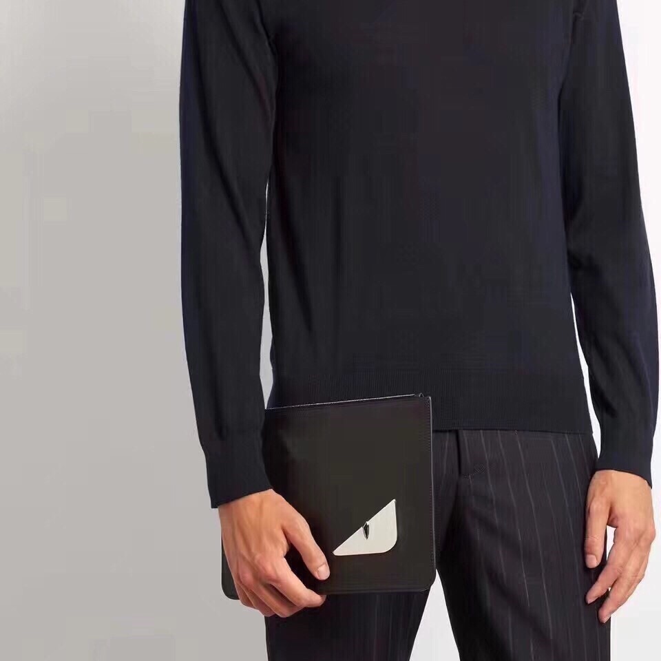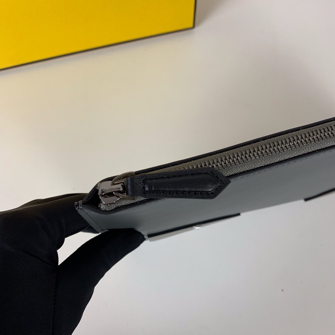 Клатч FENDI на молнии Внутренний плоский карман, флуоресцентная кожа. Украшен черной матовой металлической аппликацией в форме «глаза жука». Фурнитура с палладиевым покрытием. Сделано в Италии. Размеры: 27х20х6 см
