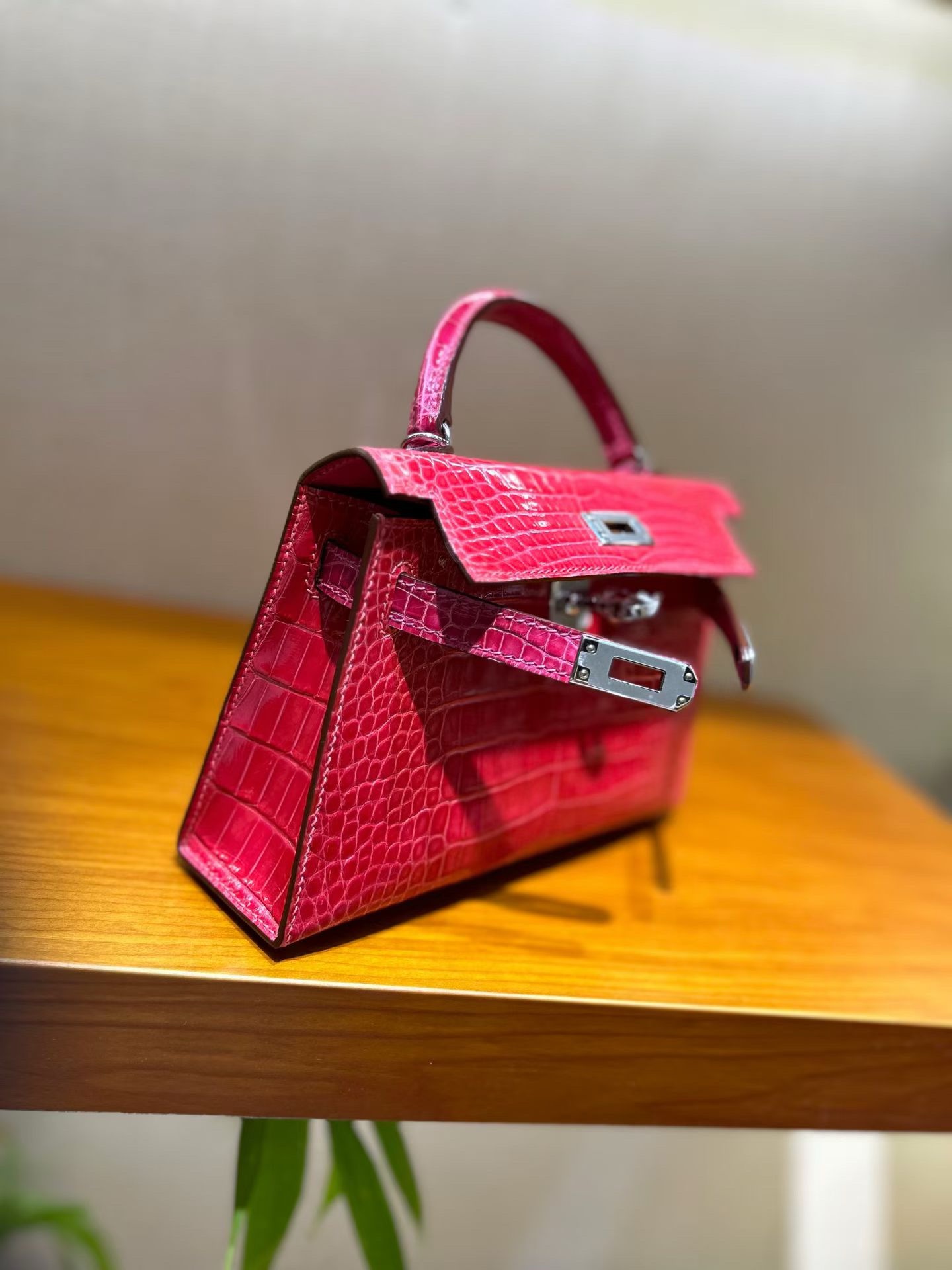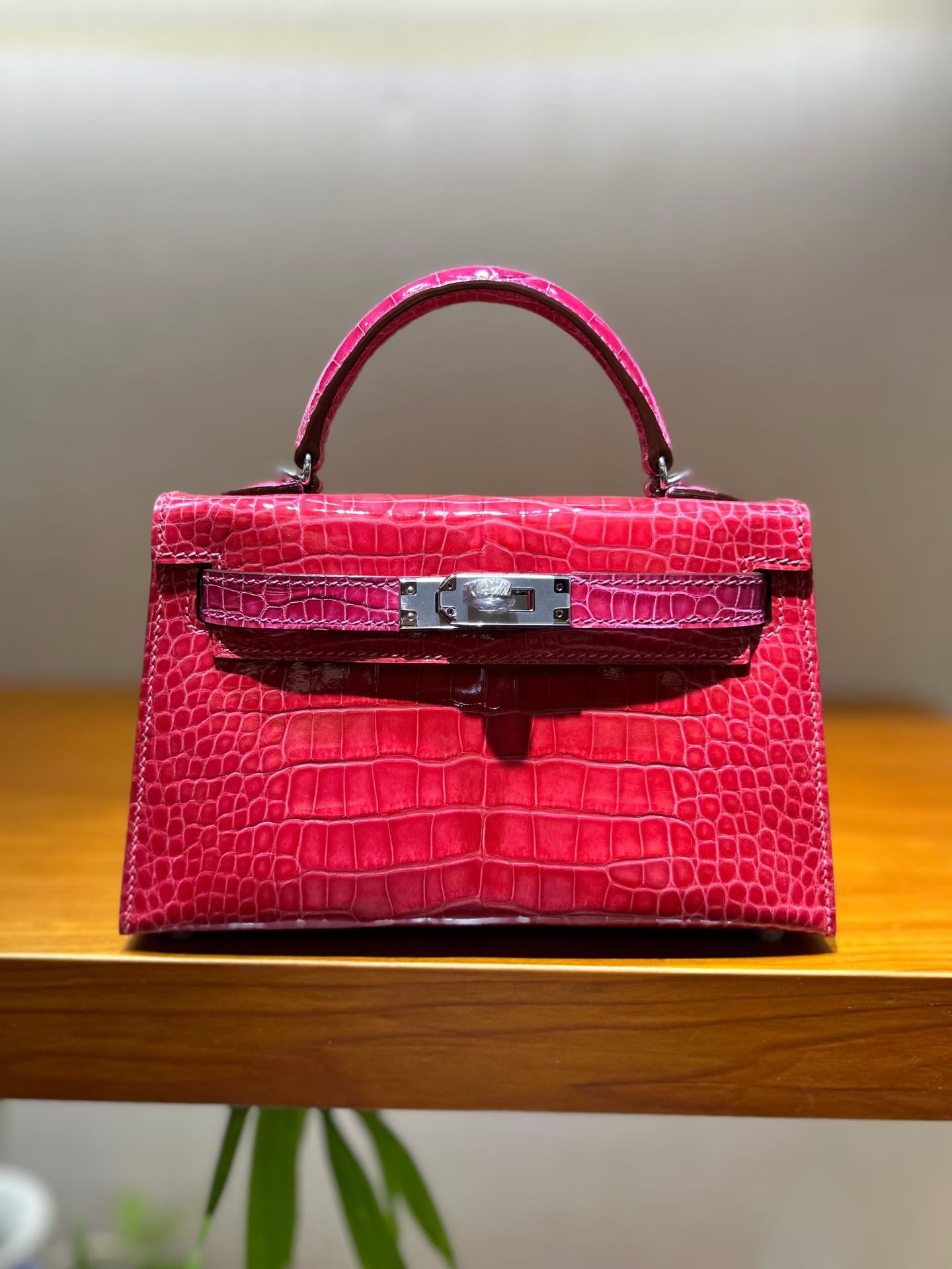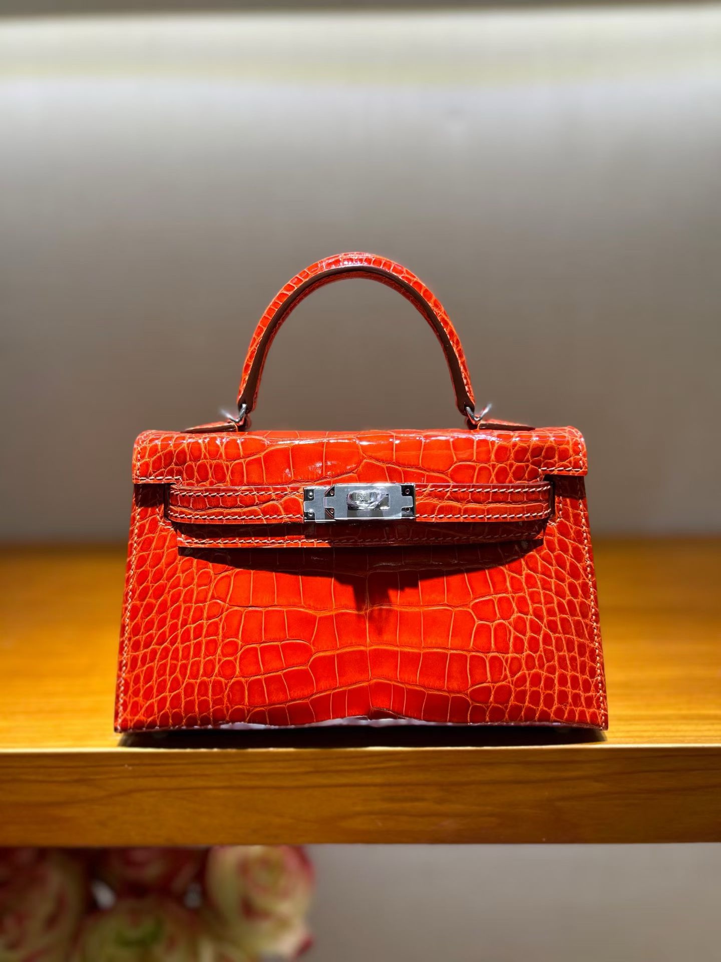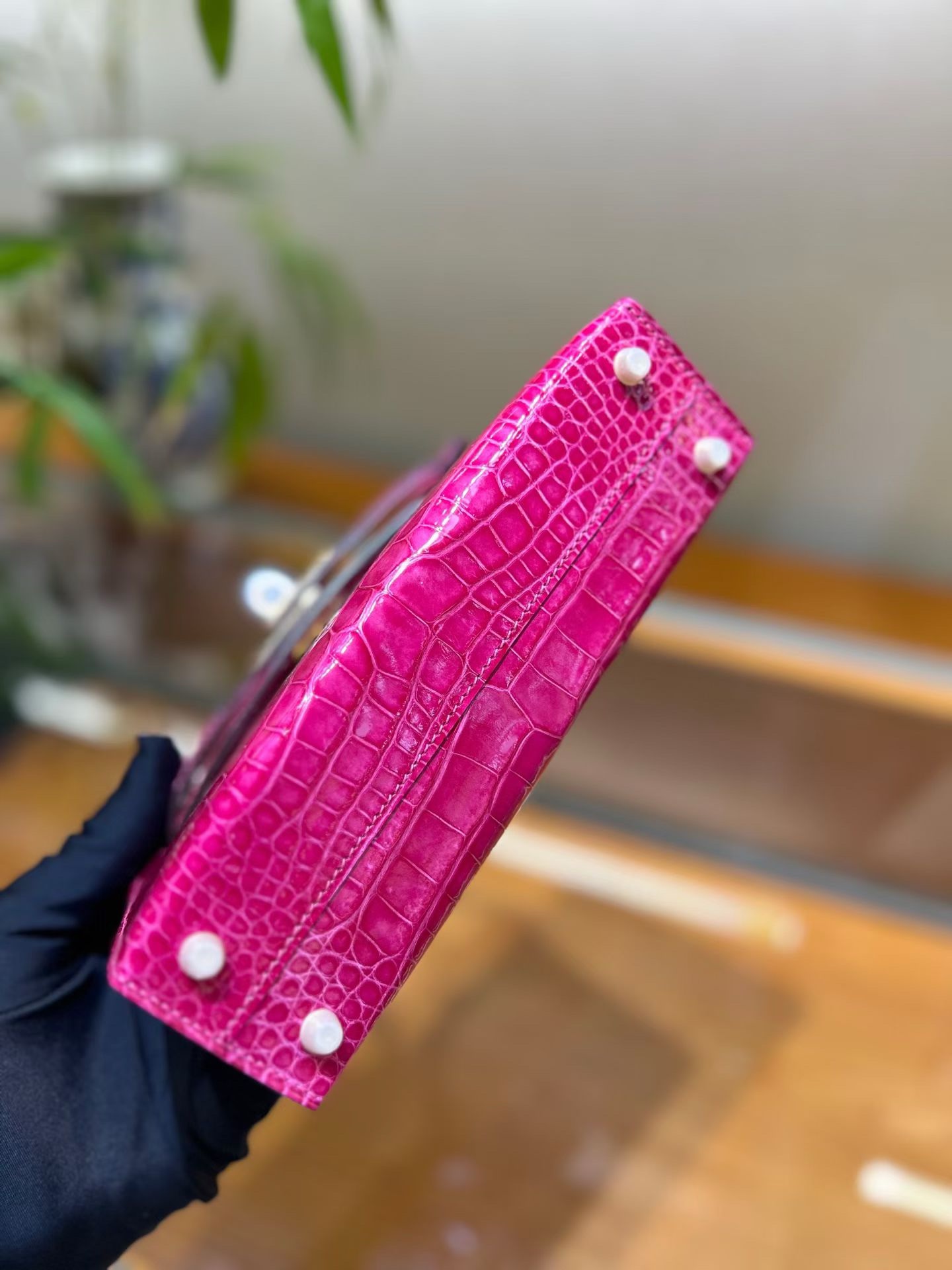 Материал и отделка: Сумка выполнена из материала с выраженной глянцевой текстурой, из кожи аллигатора.