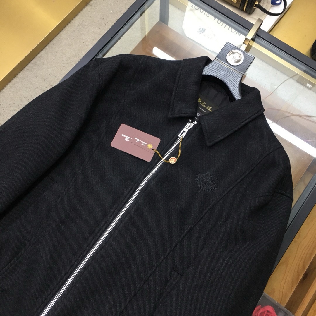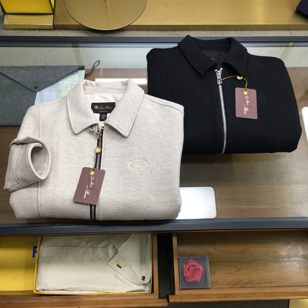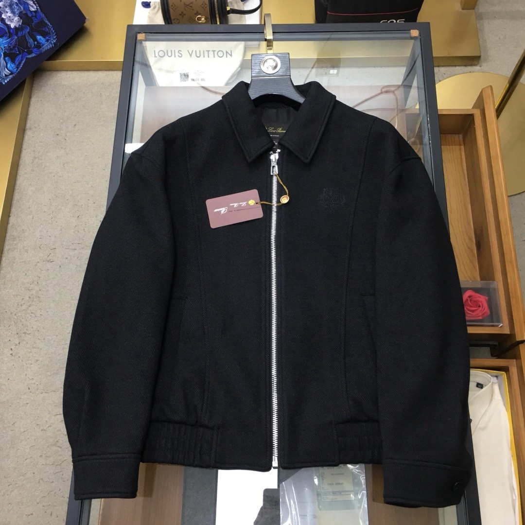 Куртка-бомбер Loro Piana. Бренд Loro Piana известен использованием сверхтонкой шерсти, кашемира и других эксклюзивных натуральных волокон, что обеспечивает исключительное качество и комфорт. Куртка выполнена в классическом стиле бомбера с воротником, застежкой-молнией по всей длине, эластичными манжетами и нижним краем в рубчик. Присутствуют два передних прорезных кармана. Дизайн бренда олицетворяет концепцию «тихой роскоши», фокусируясь на качестве материалов и безупречном крое, а не на заметных логотипах.