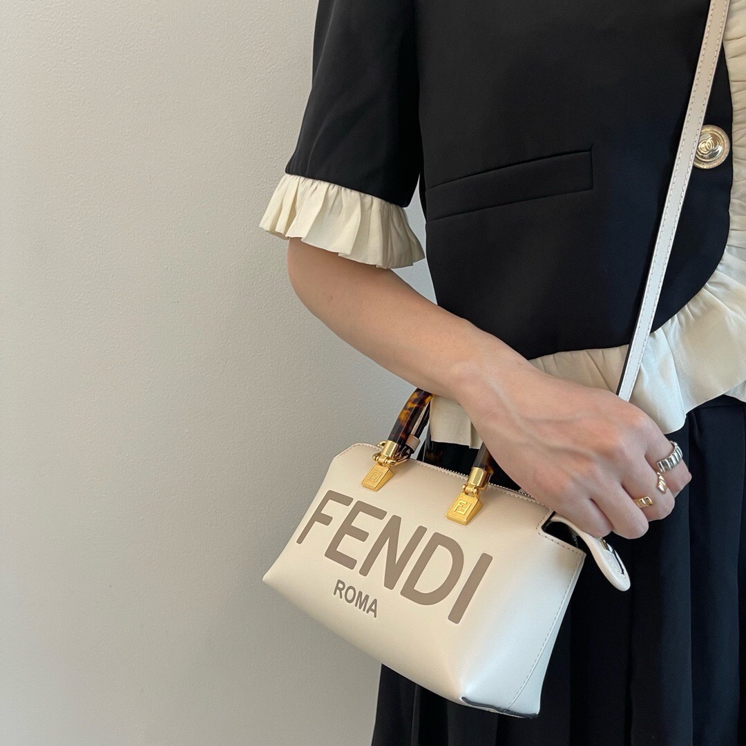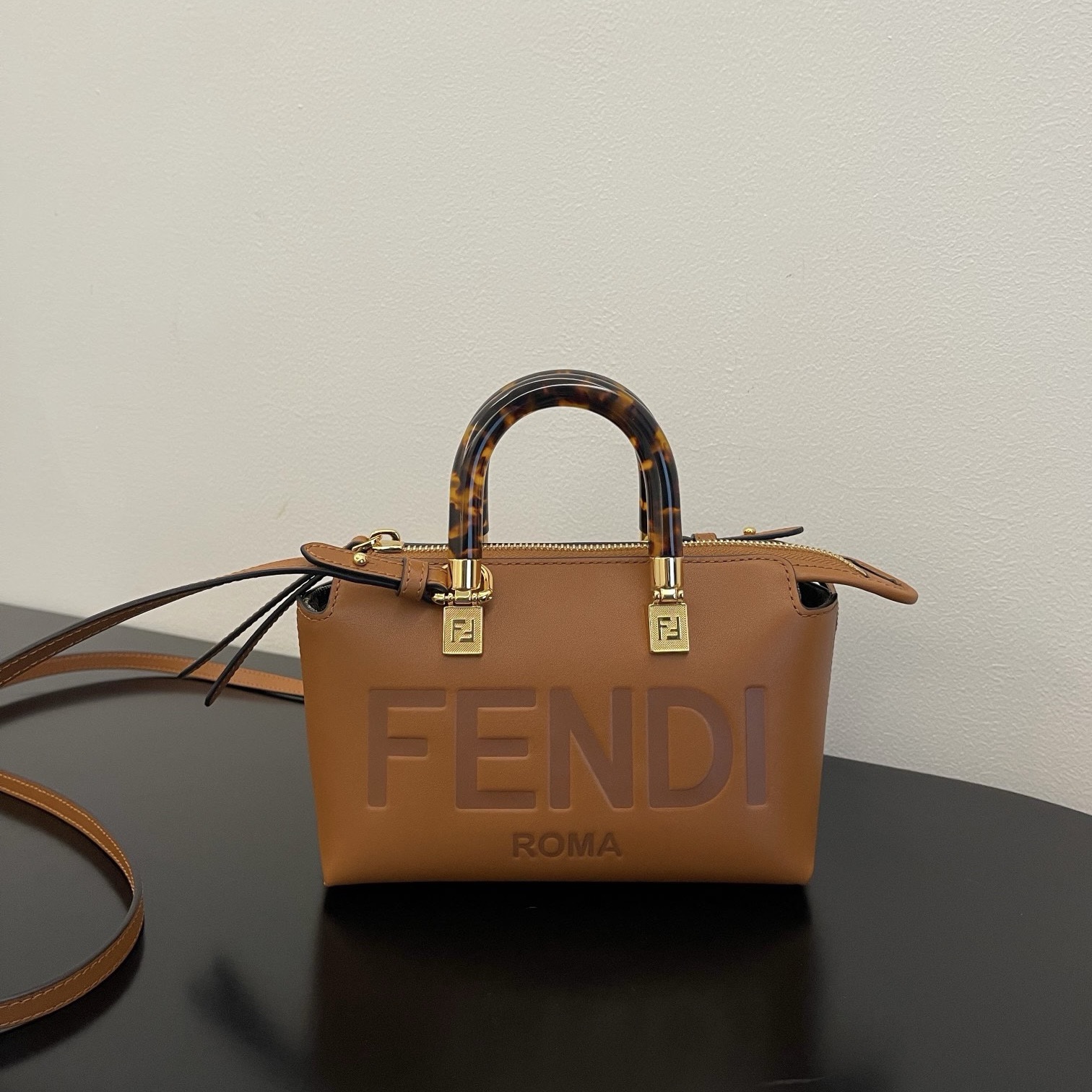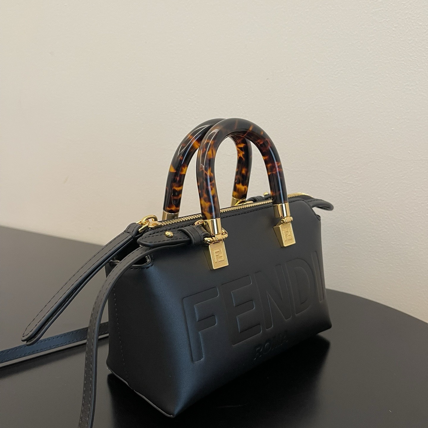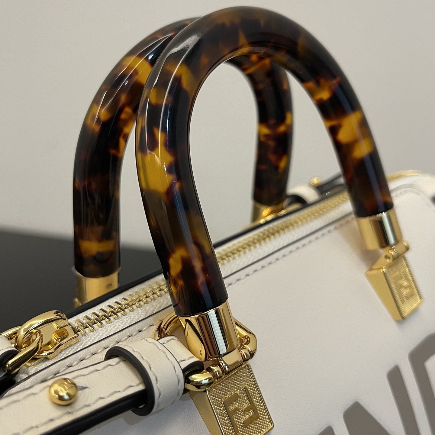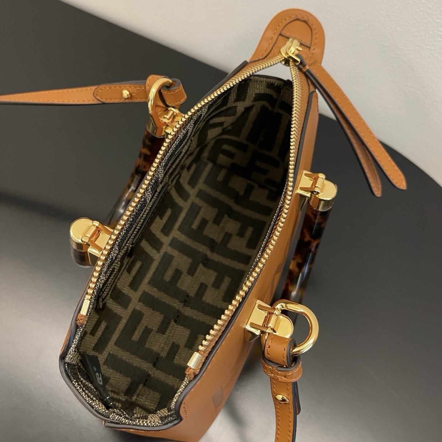 Изготовлена из кожи с тисненым логотипом FENDI ROMA и жесткими акриловыми ручками с эффектом черепаховой панцири. Застежка-молния. Внутри тканевая подкладка, карманы и фурнитура золотистого цвета. Сумочка имеет ручки и съемный плечевой ремень для ношения в руке, на плече или через плечо. Сделано в Италии.