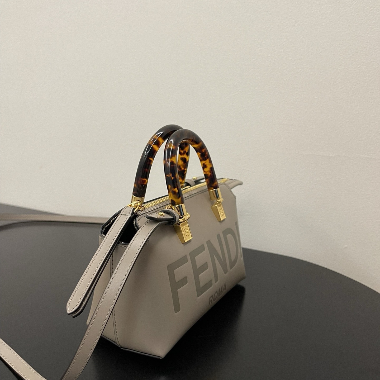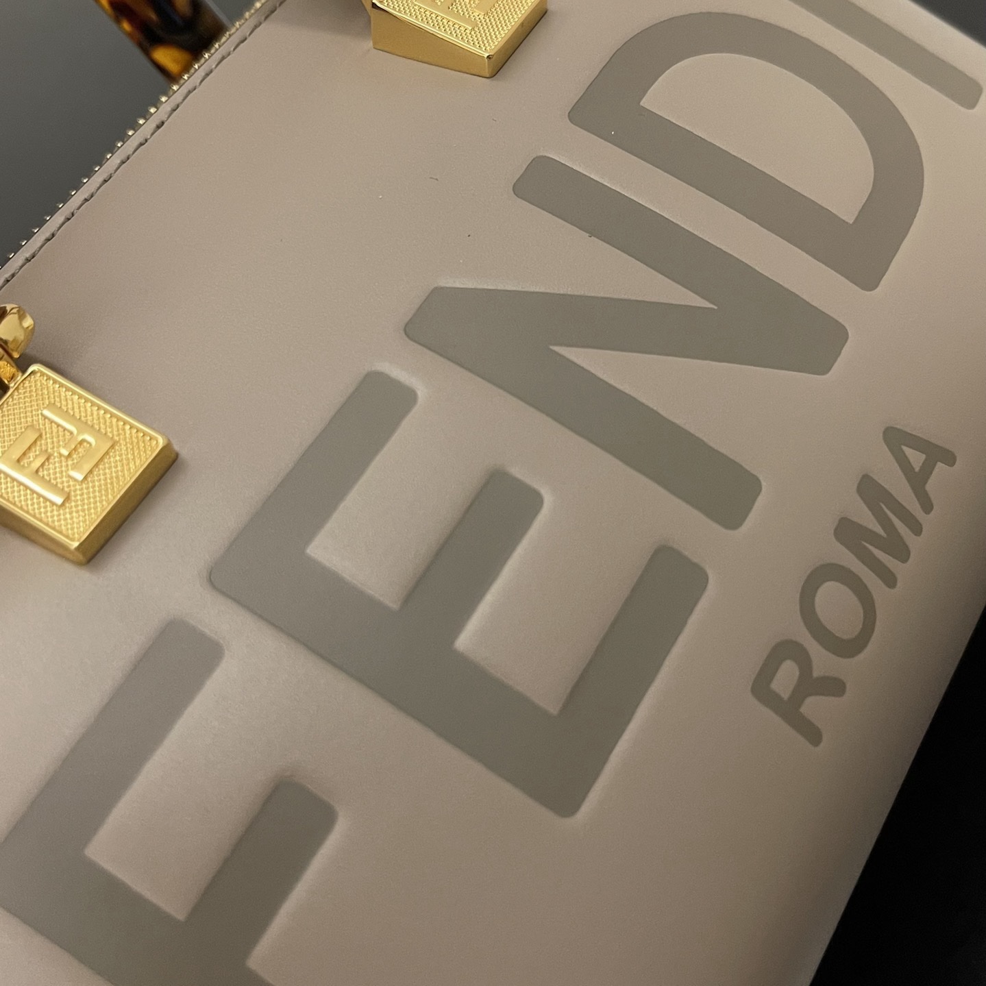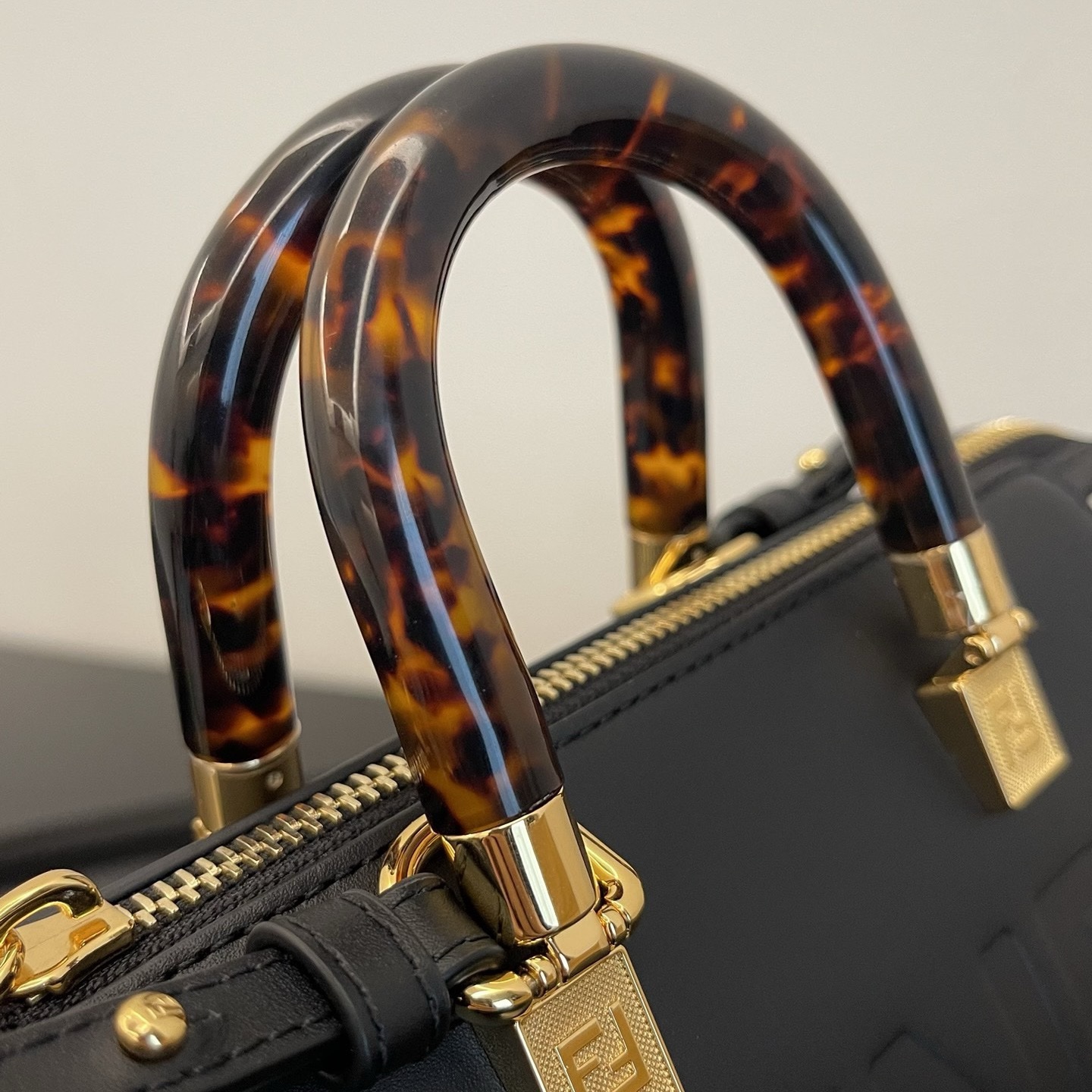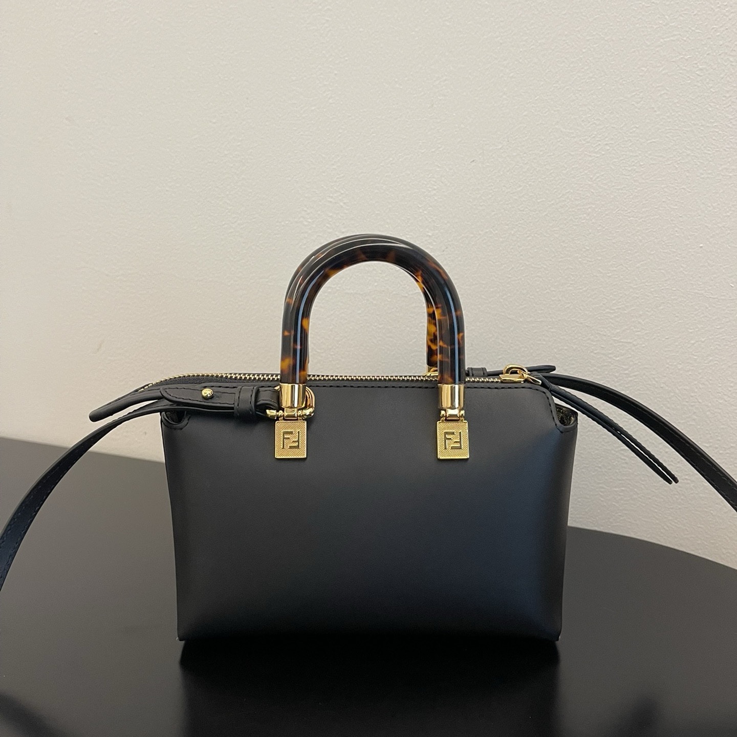 Изготовлена из кожи с тисненым логотипом FENDI ROMA и жесткими акриловыми ручками с эффектом черепаховой панцири. Застежка-молния. Внутри тканевая подкладка, карманы и фурнитура золотистого цвета. Сумочка имеет ручки и съемный плечевой ремень для ношения в руке, на плече или через плечо. Сделано в Италии.