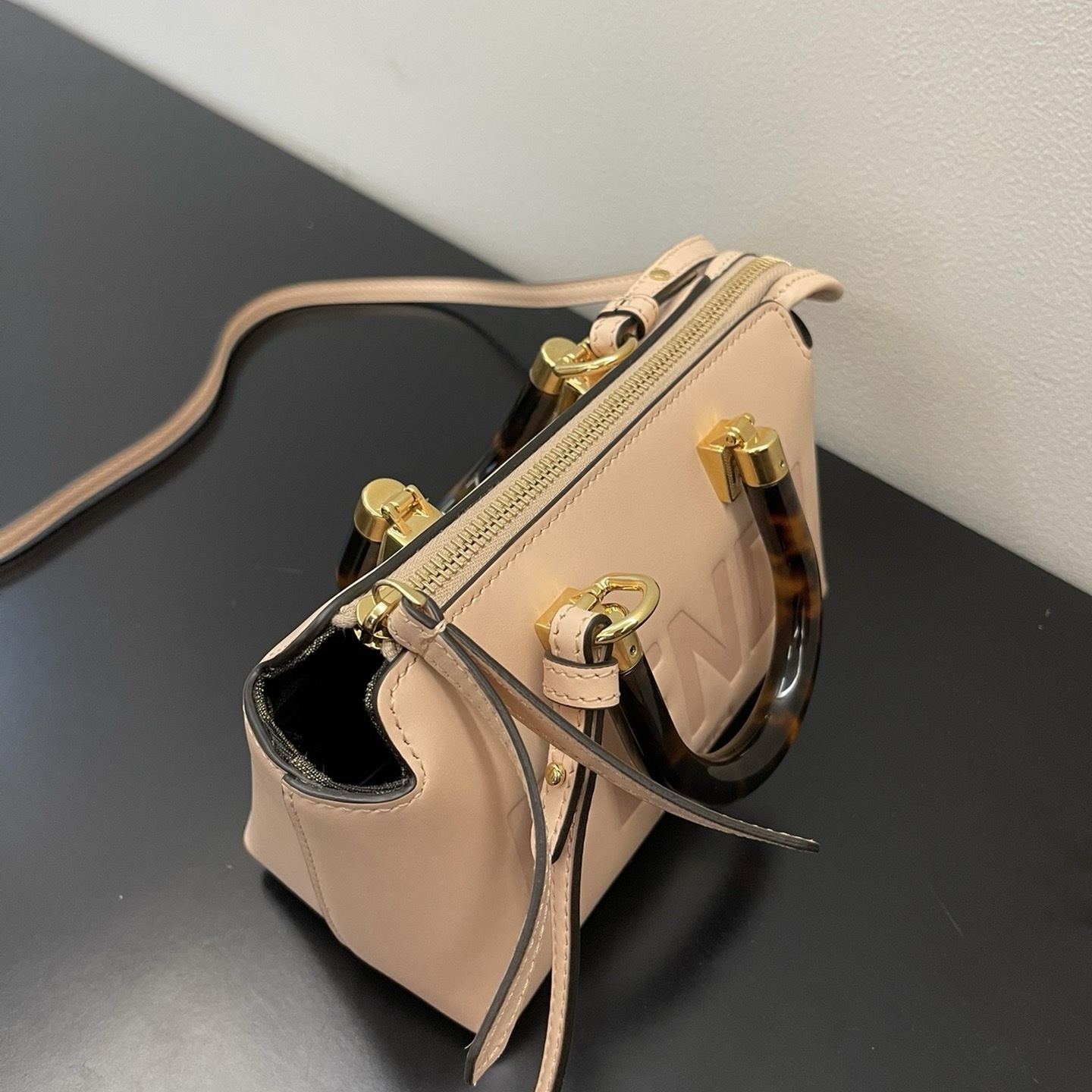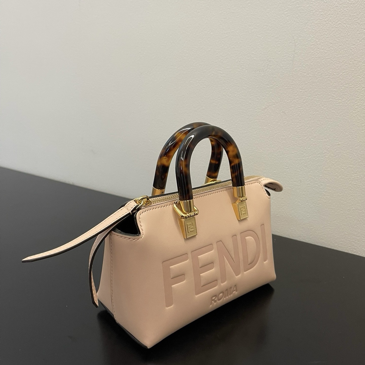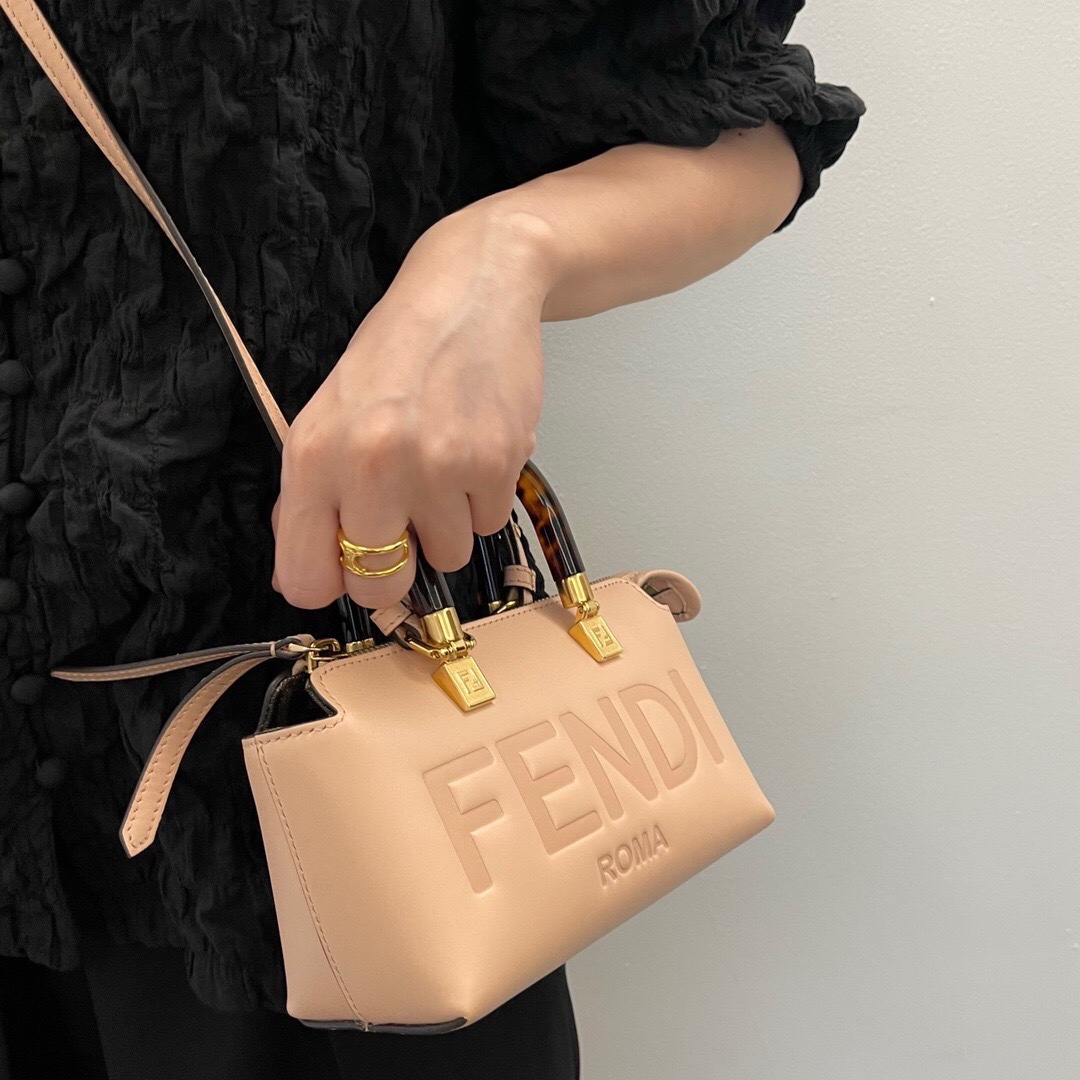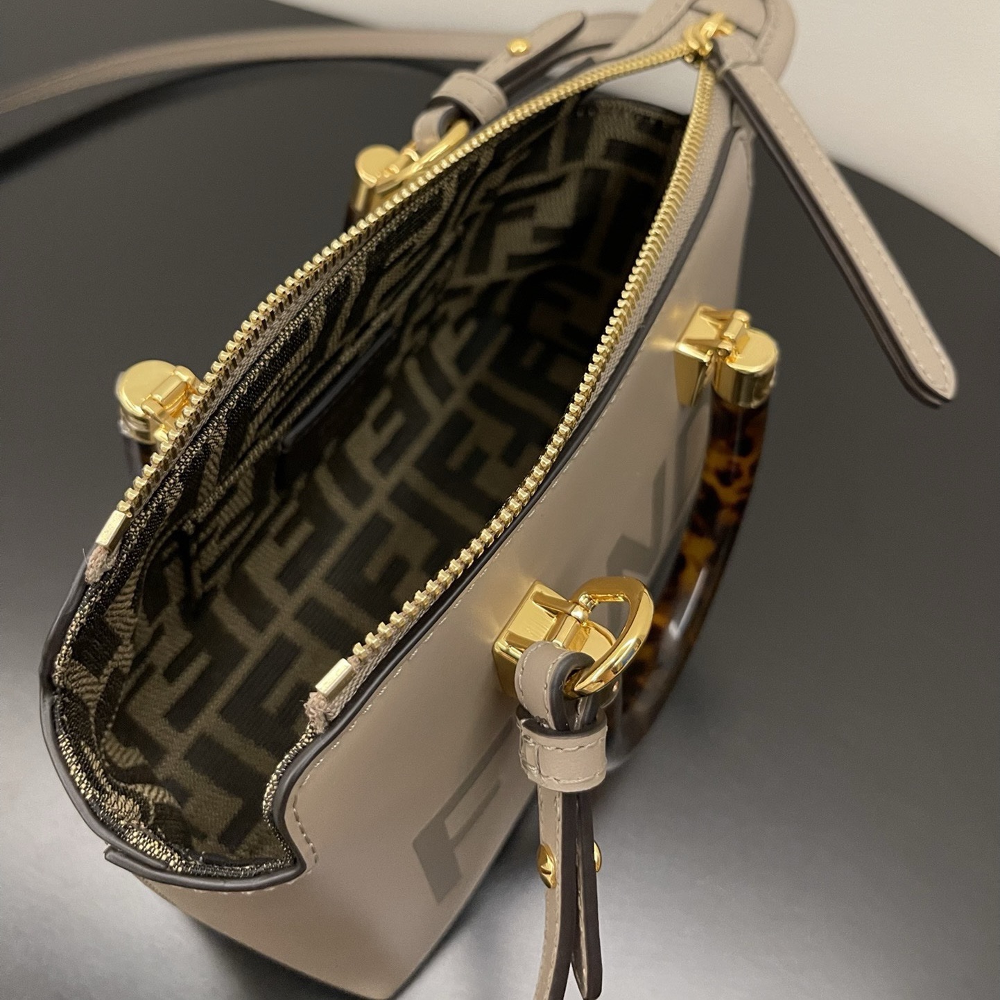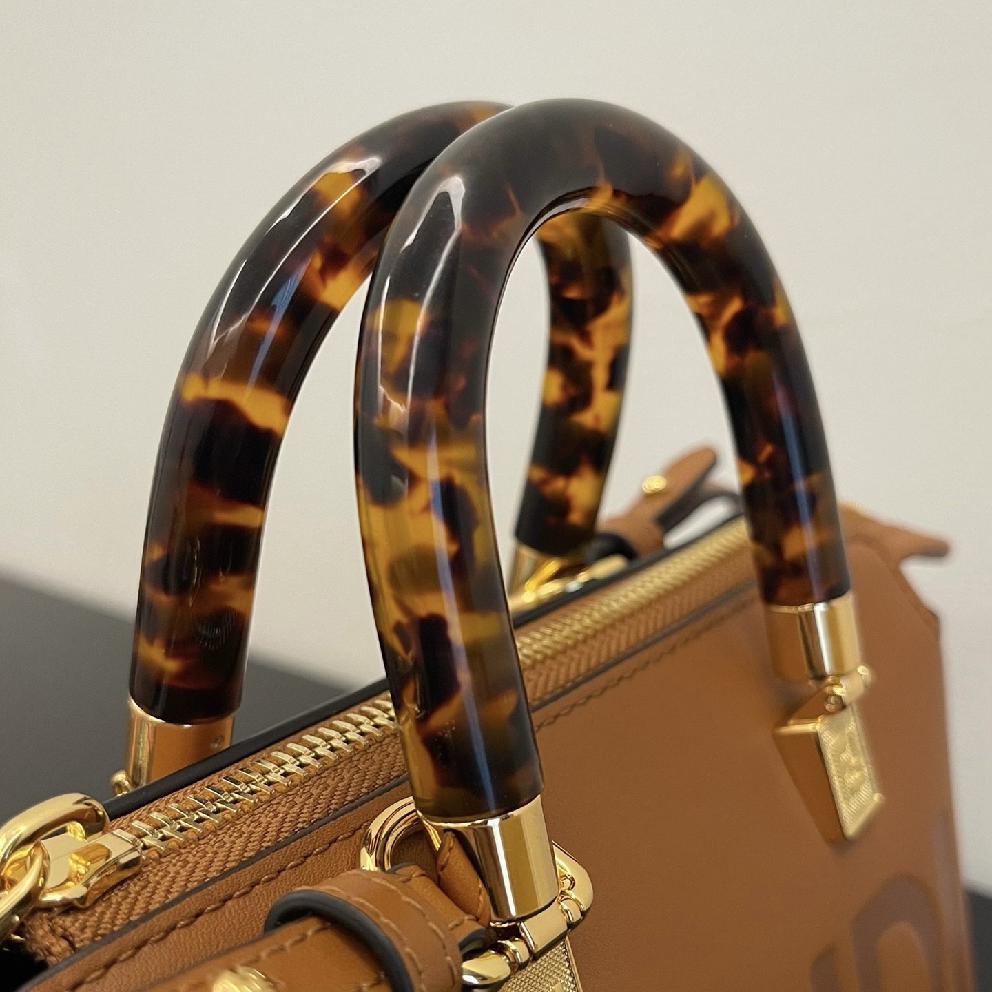 Изготовлена из кожи с тисненым логотипом FENDI ROMA и жесткими акриловыми ручками с эффектом черепаховой панцири. Застежка-молния. Внутри тканевая подкладка, карманы и фурнитура золотистого цвета. Сумочка имеет ручки и съемный плечевой ремень для ношения в руке, на плече или через плечо. Сделано в Италии.