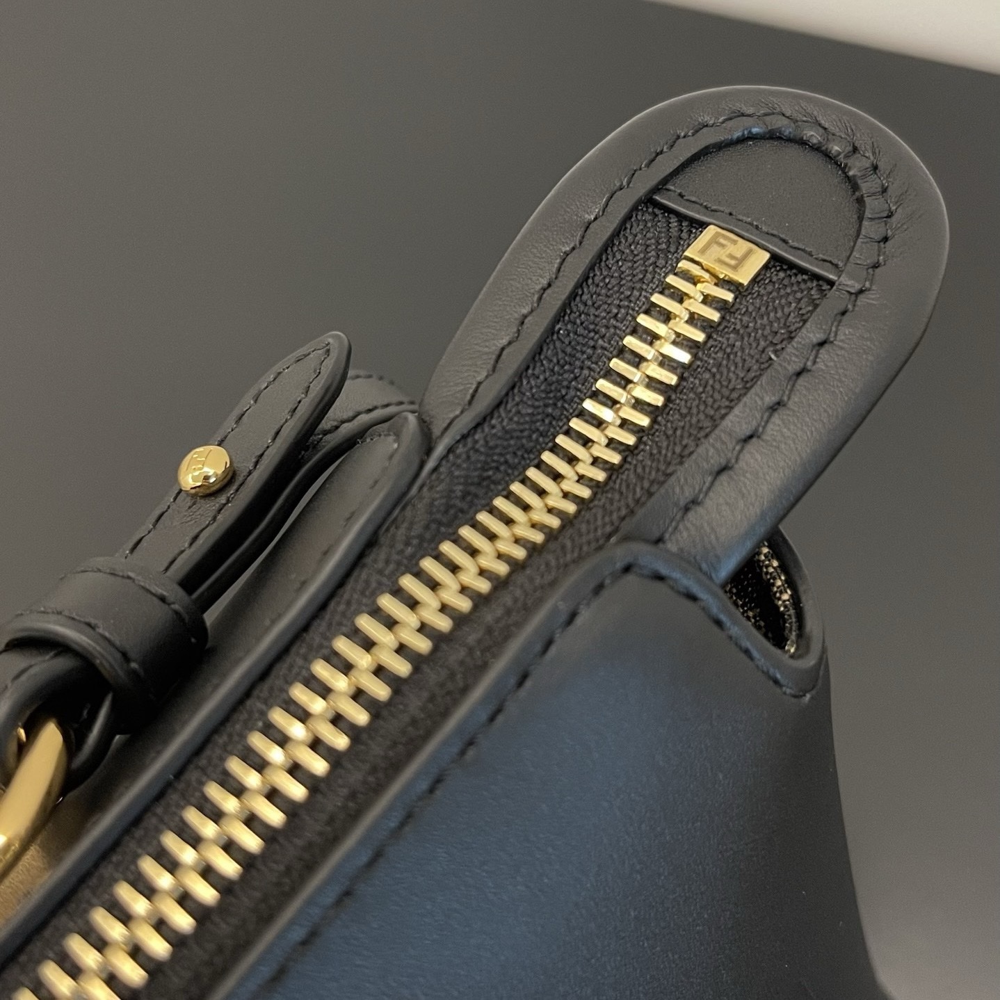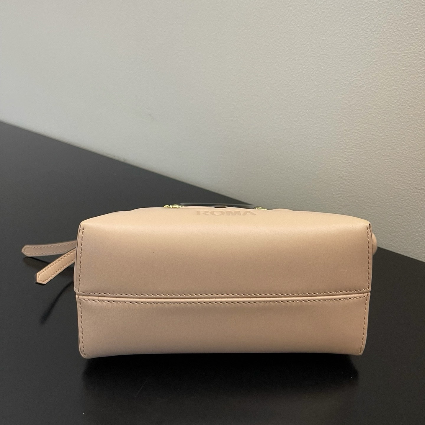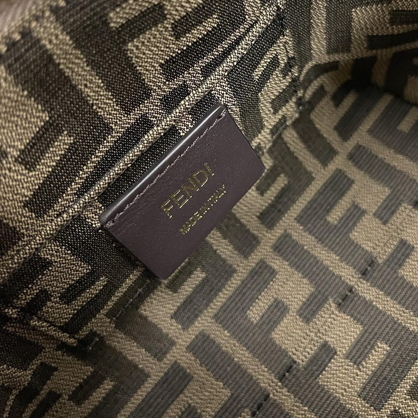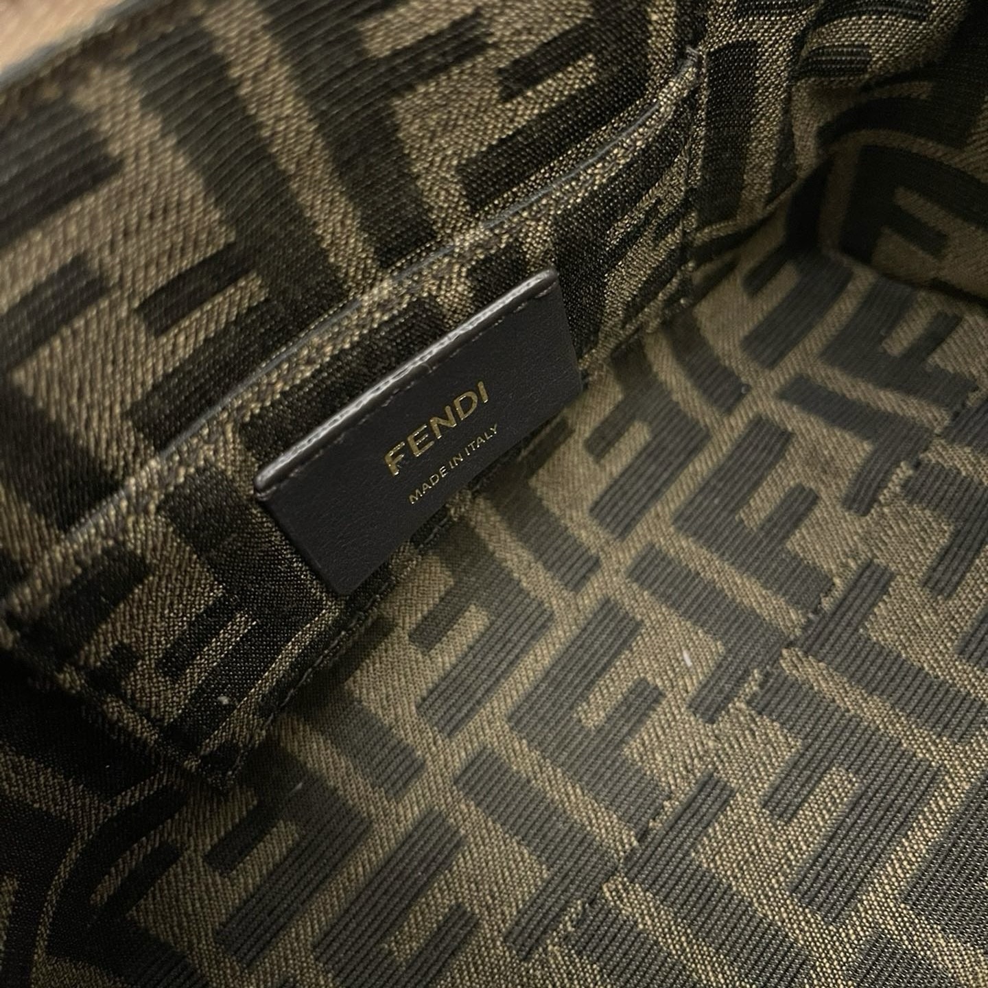 Изготовлена из кожи с тисненым логотипом FENDI ROMA и жесткими акриловыми ручками с эффектом черепаховой панцири. Застежка-молния. Внутри тканевая подкладка, карманы и фурнитура золотистого цвета. Сумочка имеет ручки и съемный плечевой ремень для ношения в руке, на плече или через плечо. Сделано в Италии.