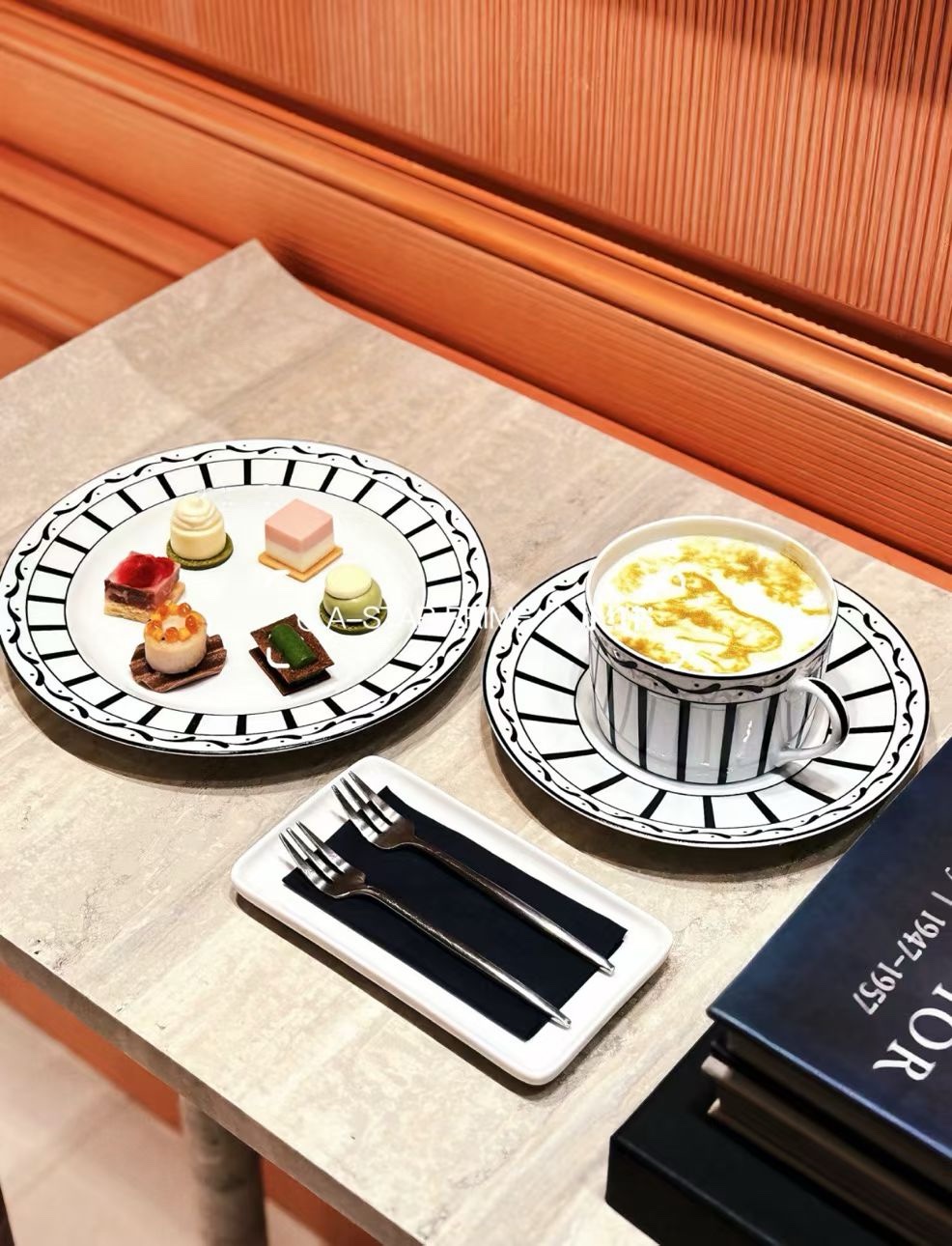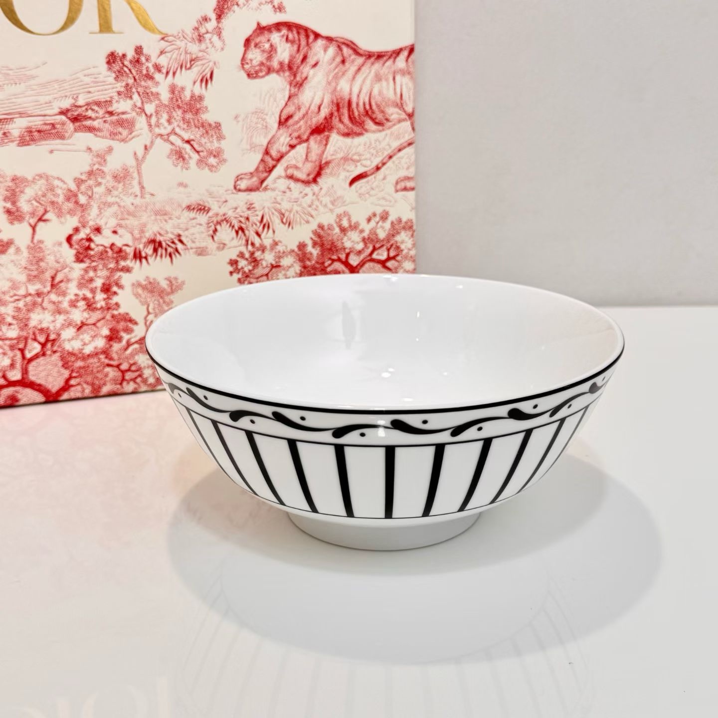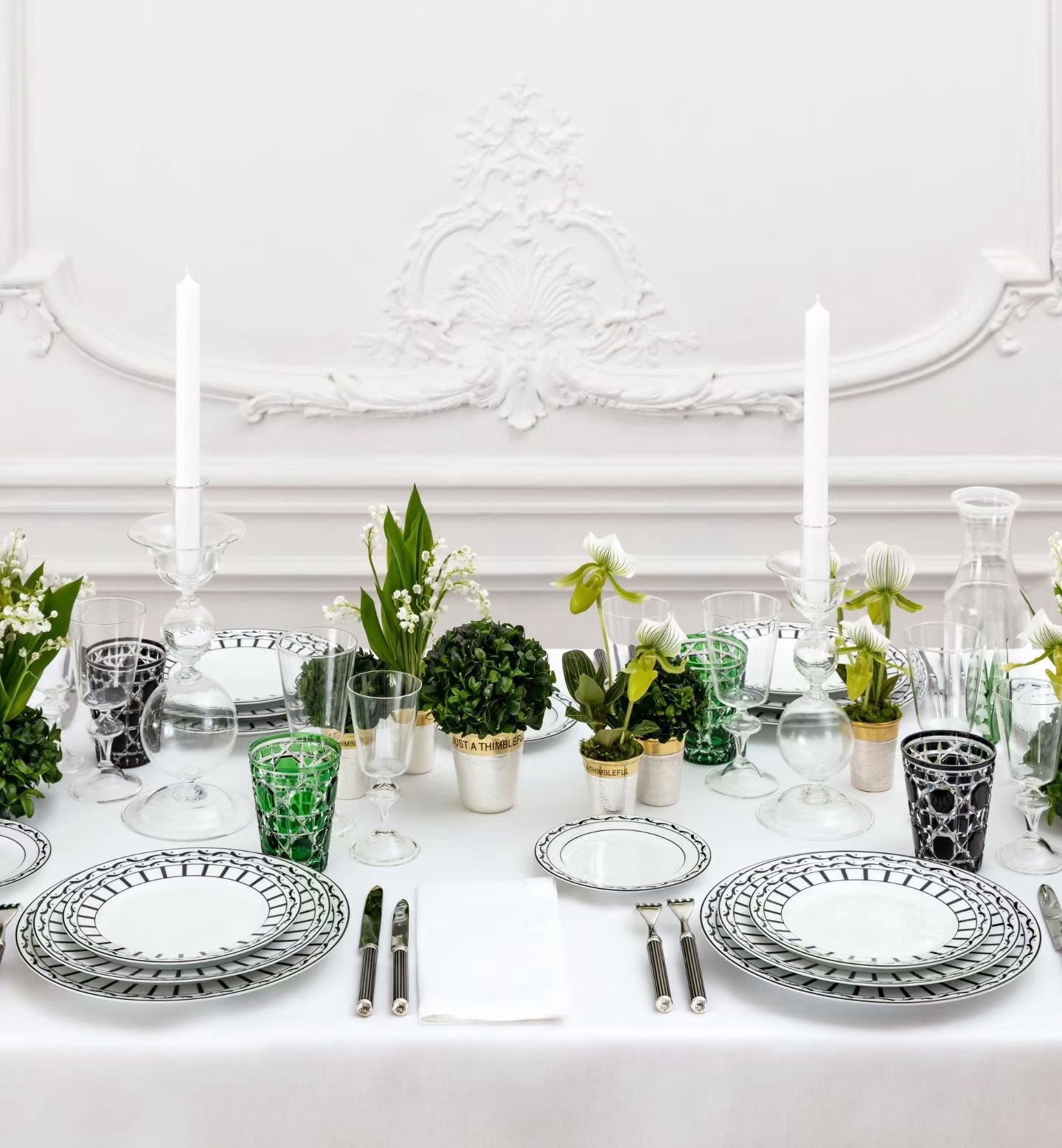 Этот двухцветный сервиз из костяного фарфора, названный Monsieur Dior, — это ода Кристиана Диора искусству жизни, переосмысление культовой черно-белой полосатой серии, разработанной в 1955 году основателем и его другом Жан-Пьером Фрером. Сдержанный, но изысканный дизайн идеально дополняет эти вневременные предметы, органично сочетаясь с современными дизайнерскими решениями Корделии де Кастеллан. В набор входят: 6 обеденных тарелок; 6 тарелок из костяного фарфора; 6 суповых тарелок; 6 маленьких мисок; 6 маленьких ложек; 6 блюдец для приправ; 2 десертные тарелки диаметром 20 см; 2 тарелки для фруктов диаметром 20 см; 1 большая суповая тарелка; 1 тарелка для рыбы; 1 большая тарелка для фруктов диаметром 30 см.