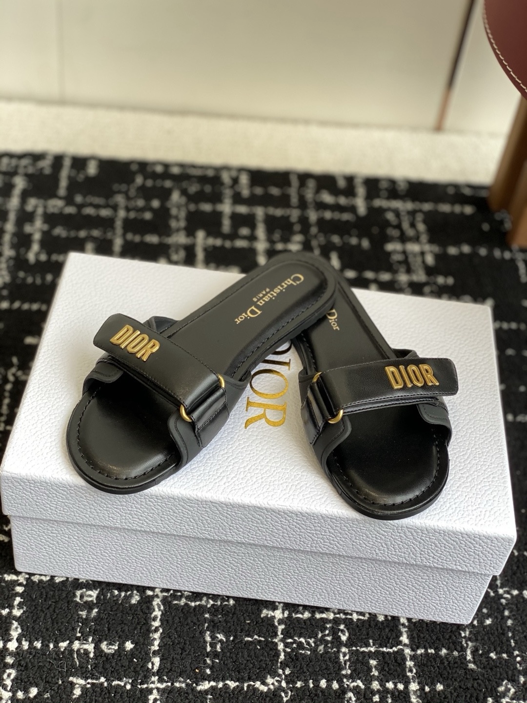Пляжные туфли Dior, сандалии на липучках Верх: Оригинальная формованная коровья кожа, оригинальная формованная подошва, новейший рисунок подошвы Размер: 35-41 (Размеры 40 и 41 изготавливаются на заказ и возврату не подлежат)