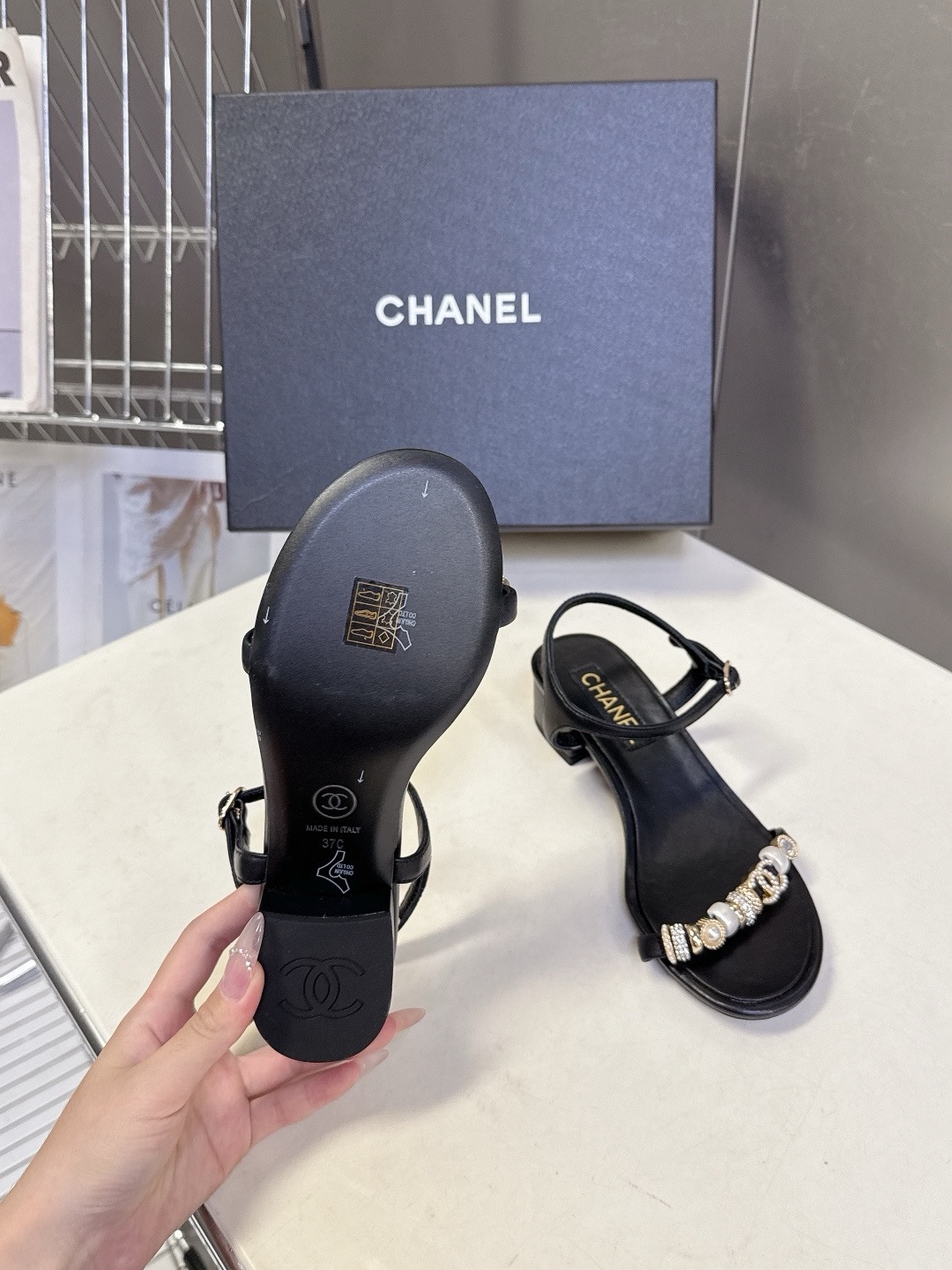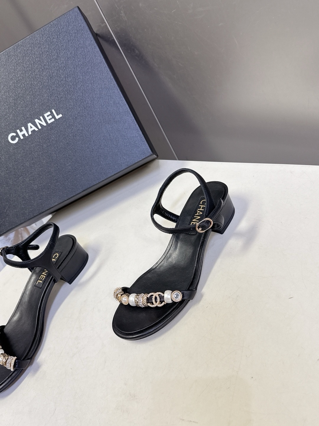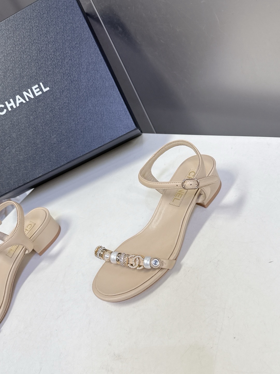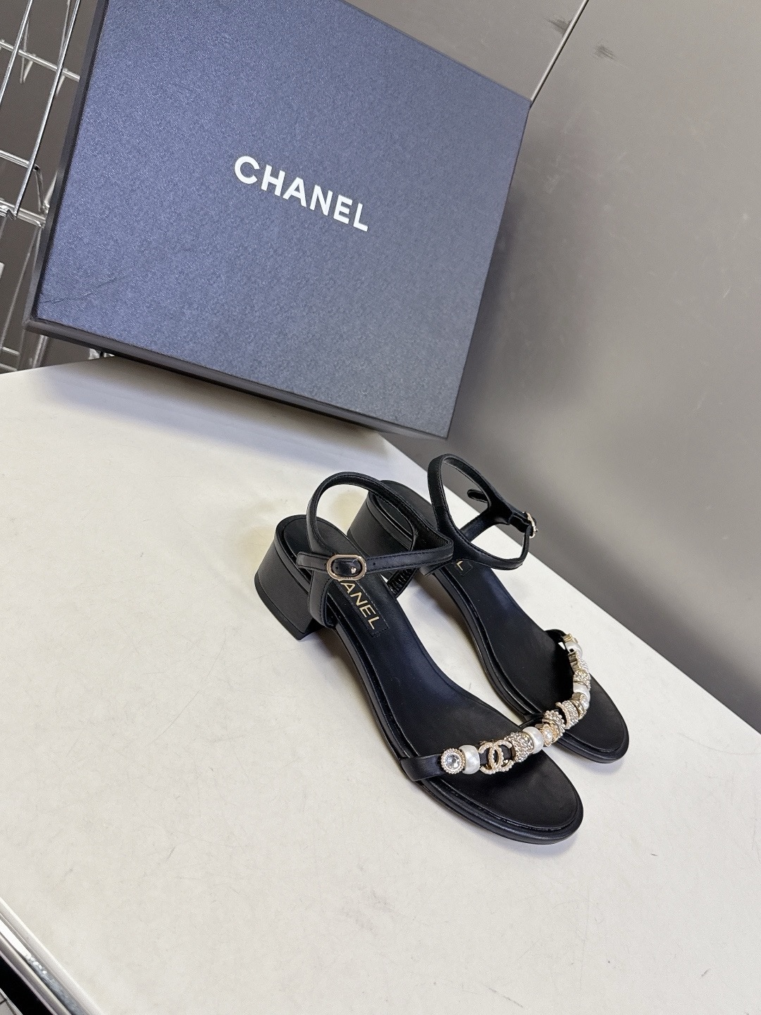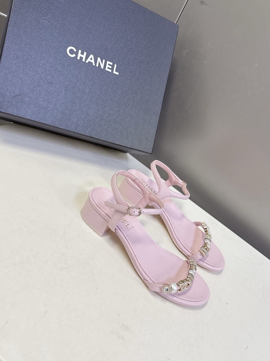 CHANEL Весна/Лето Новинка: босоножки на массивном каблуке с жемчужной цепочкой и ремешками