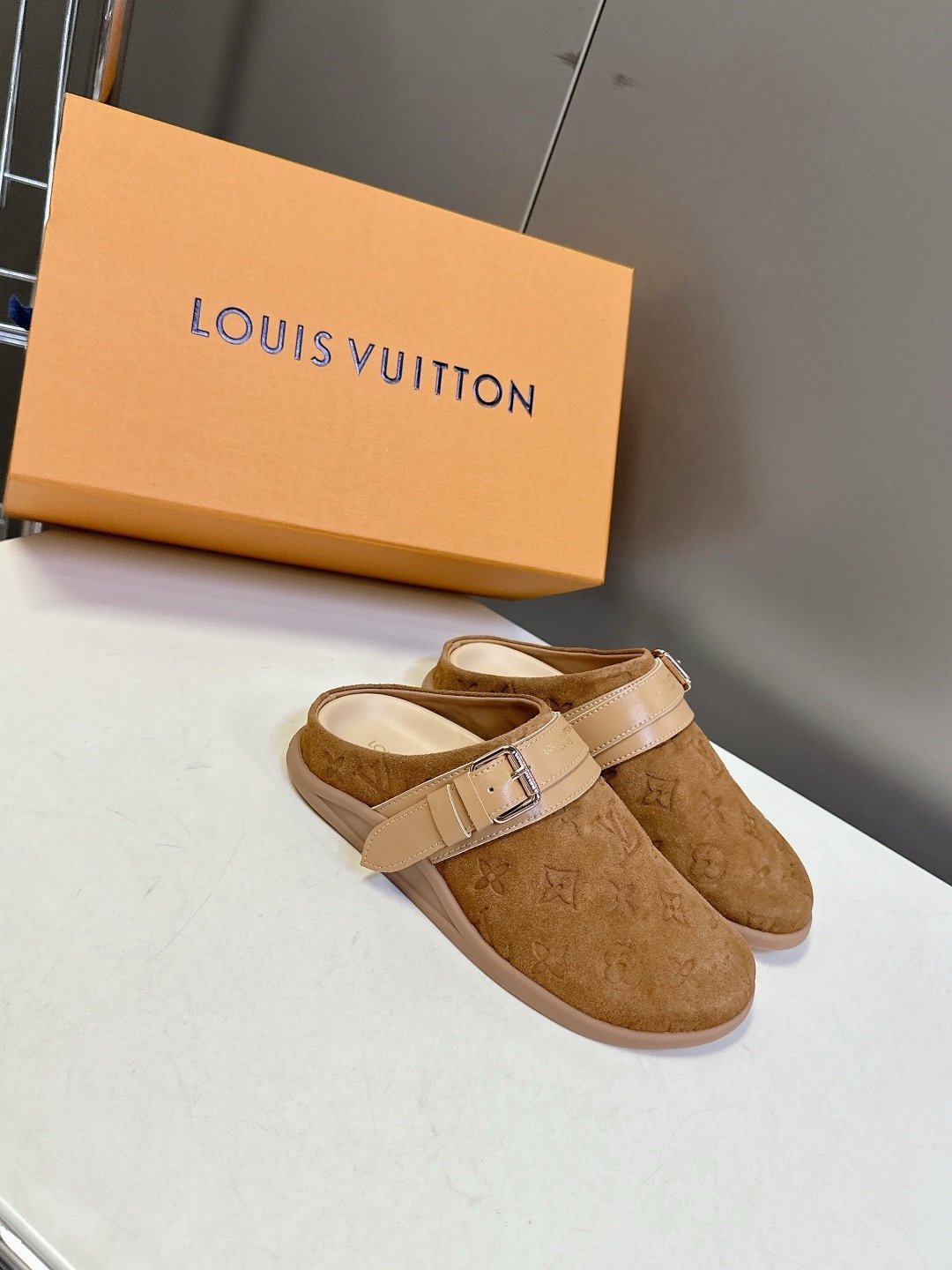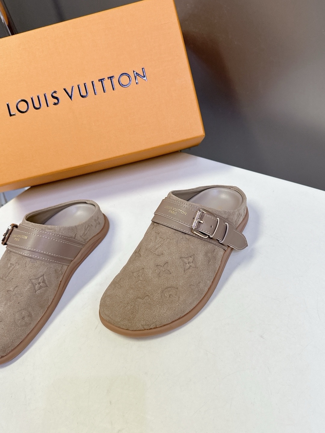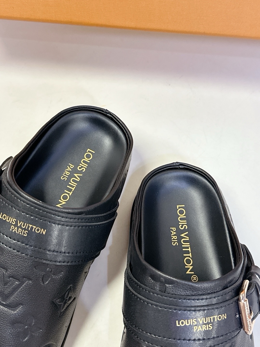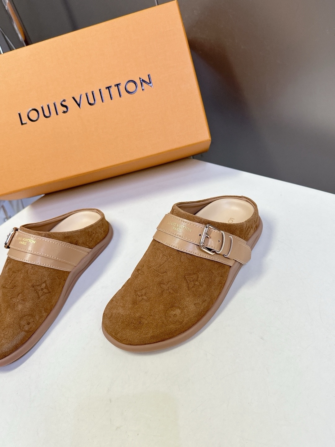 LV TO-GO COMFORT Закрытые тапочки Новые тапочки Louis Vuitton 2025 года Верх: кожа Louis Vuitton с тисненым монограммным узором Оригинальная формованная противоскользящая и прочная резиновая подошва Размер: 35-40