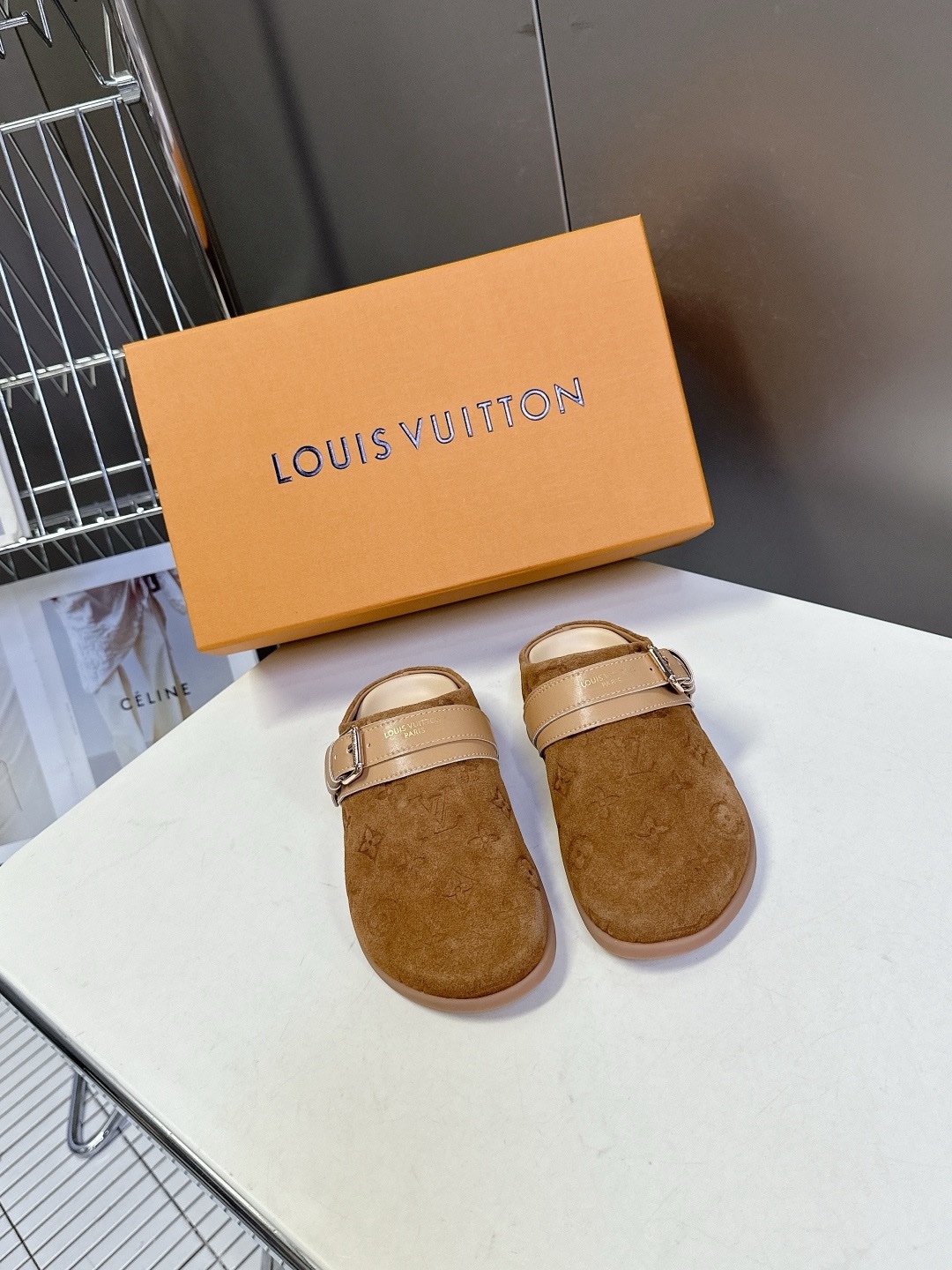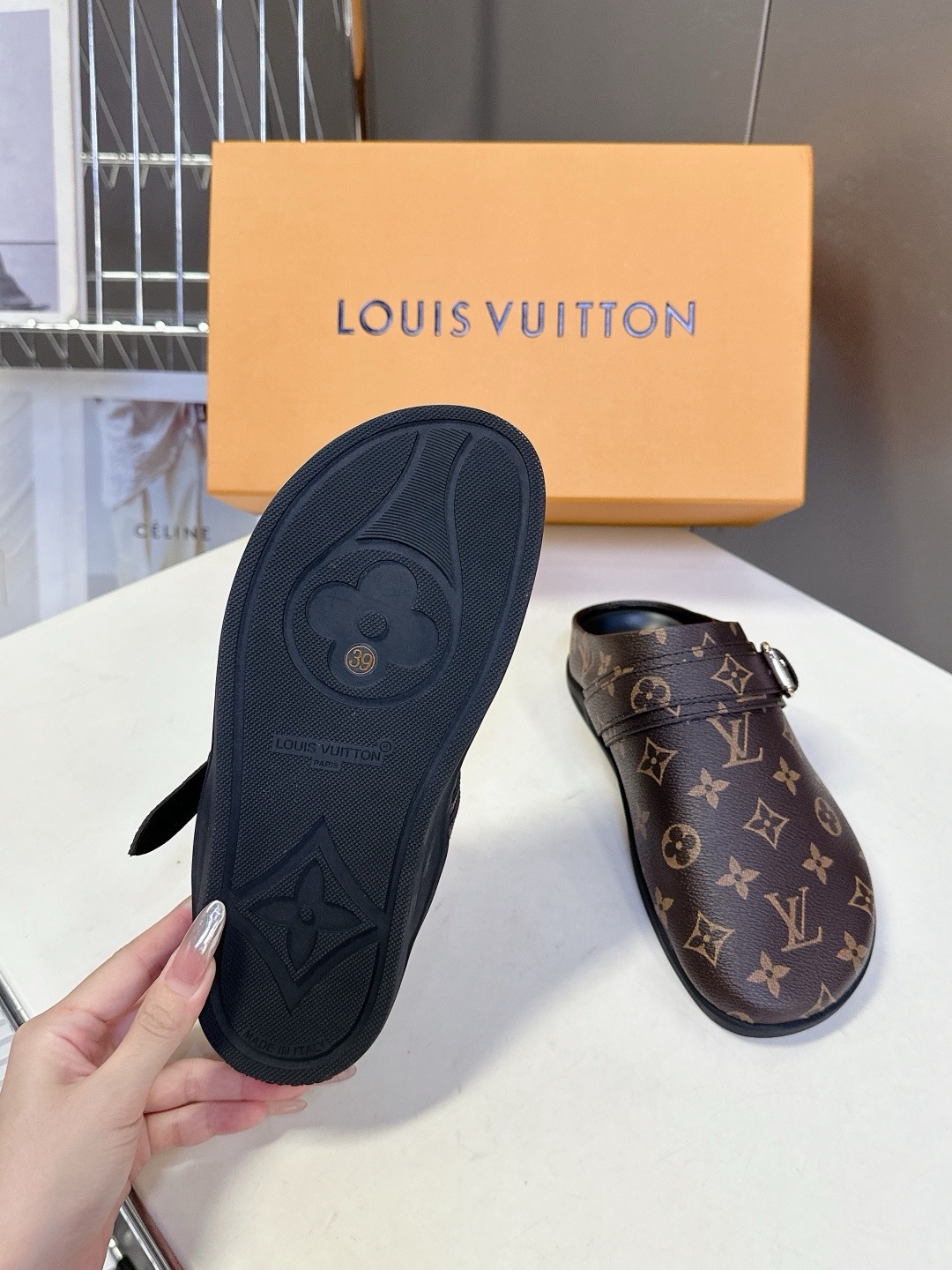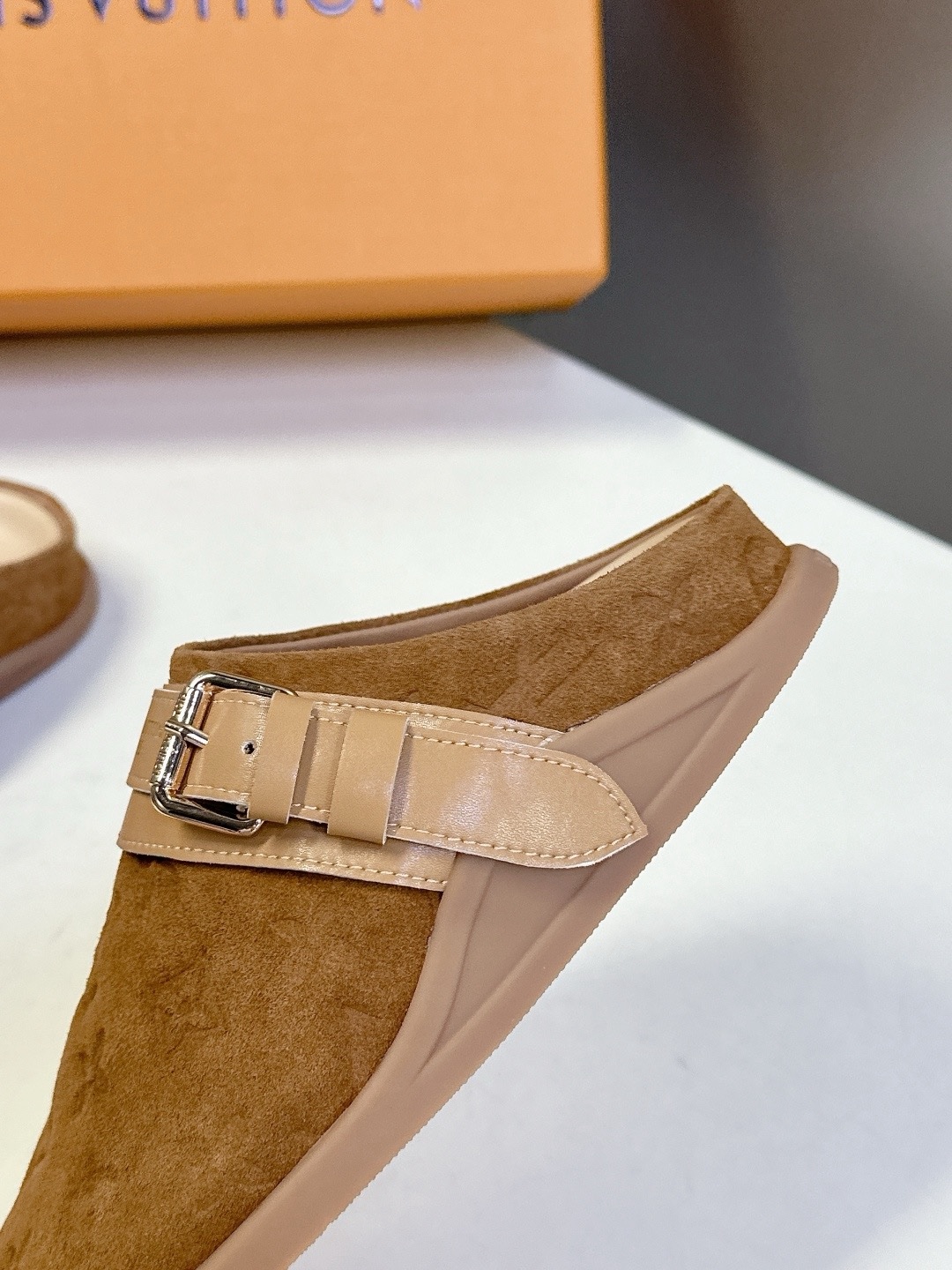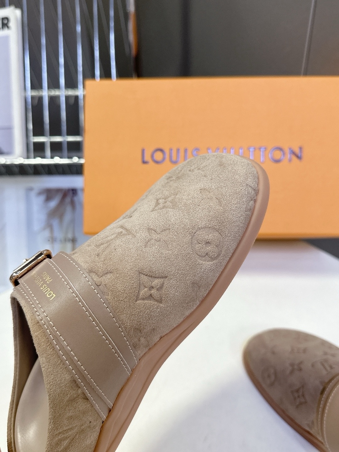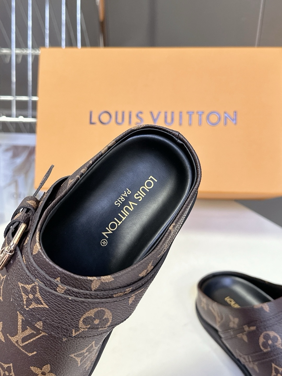 LV TO-GO COMFORT Закрытые тапочки Новые тапочки Louis Vuitton 2025 года Верх: кожа Louis Vuitton с тисненым монограммным узором Оригинальная формованная противоскользящая и прочная резиновая подошва Размер: 35-40