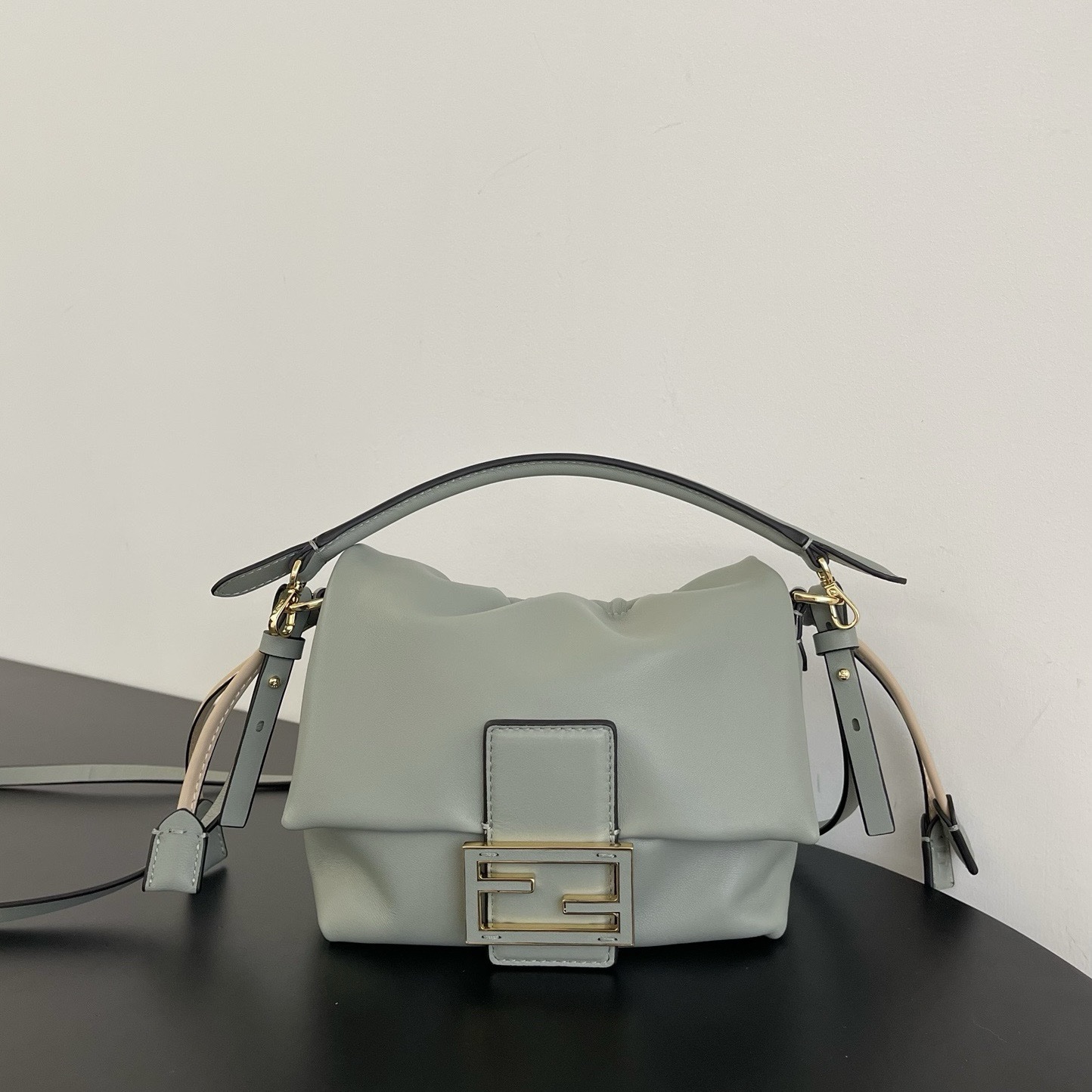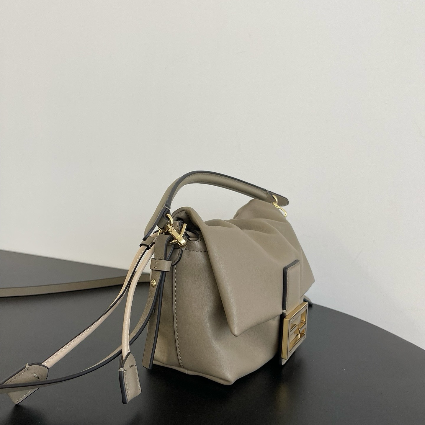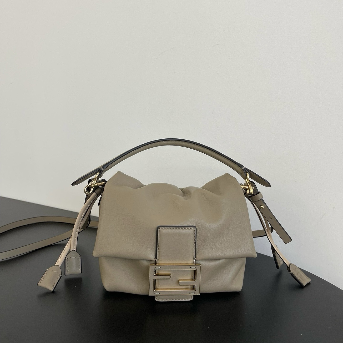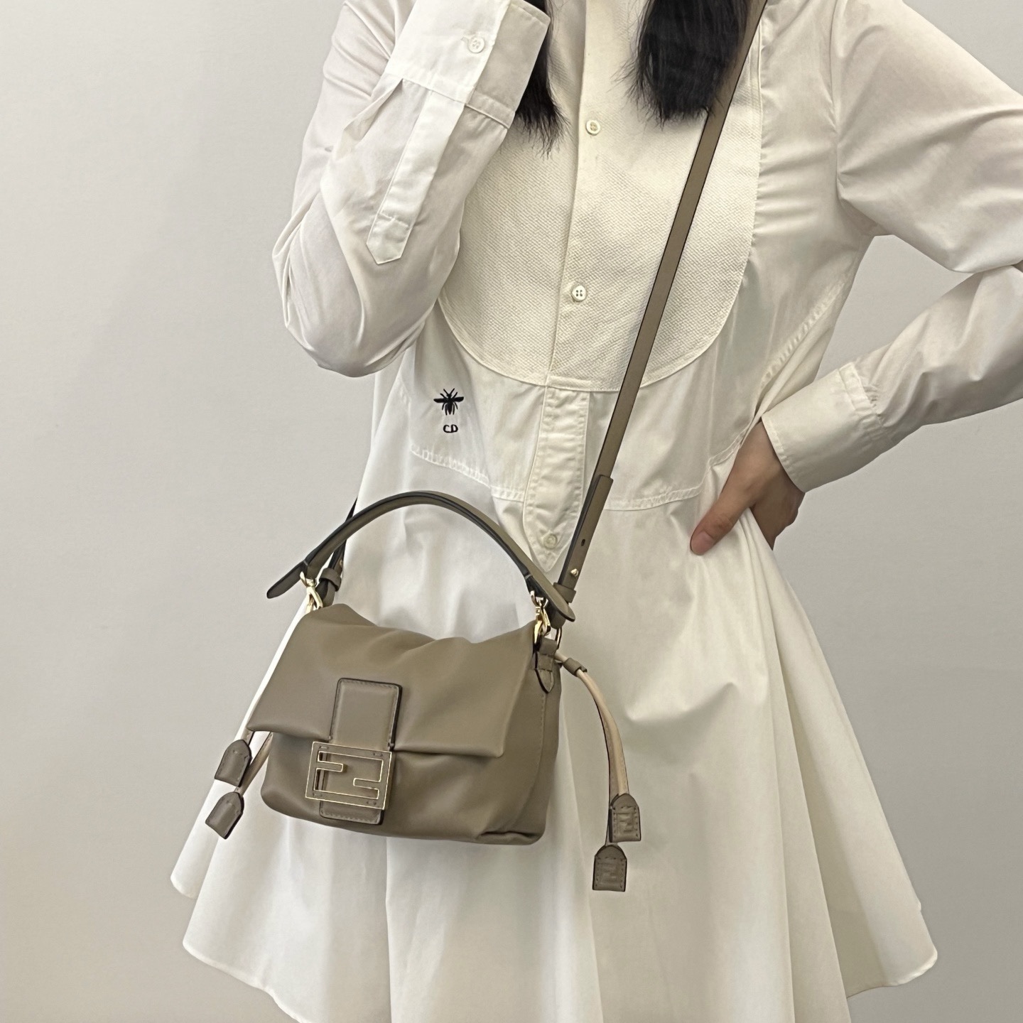 Обновленная и усовершенствованная для подиума, эта сумка отличается мягким, деконструированным дизайном, сохраняя при этом свои оригинальные элементы. Изготовлена из мягкой кожи наппа, украшена крупной металлической застежкой FF и кожаными вставками в тон.