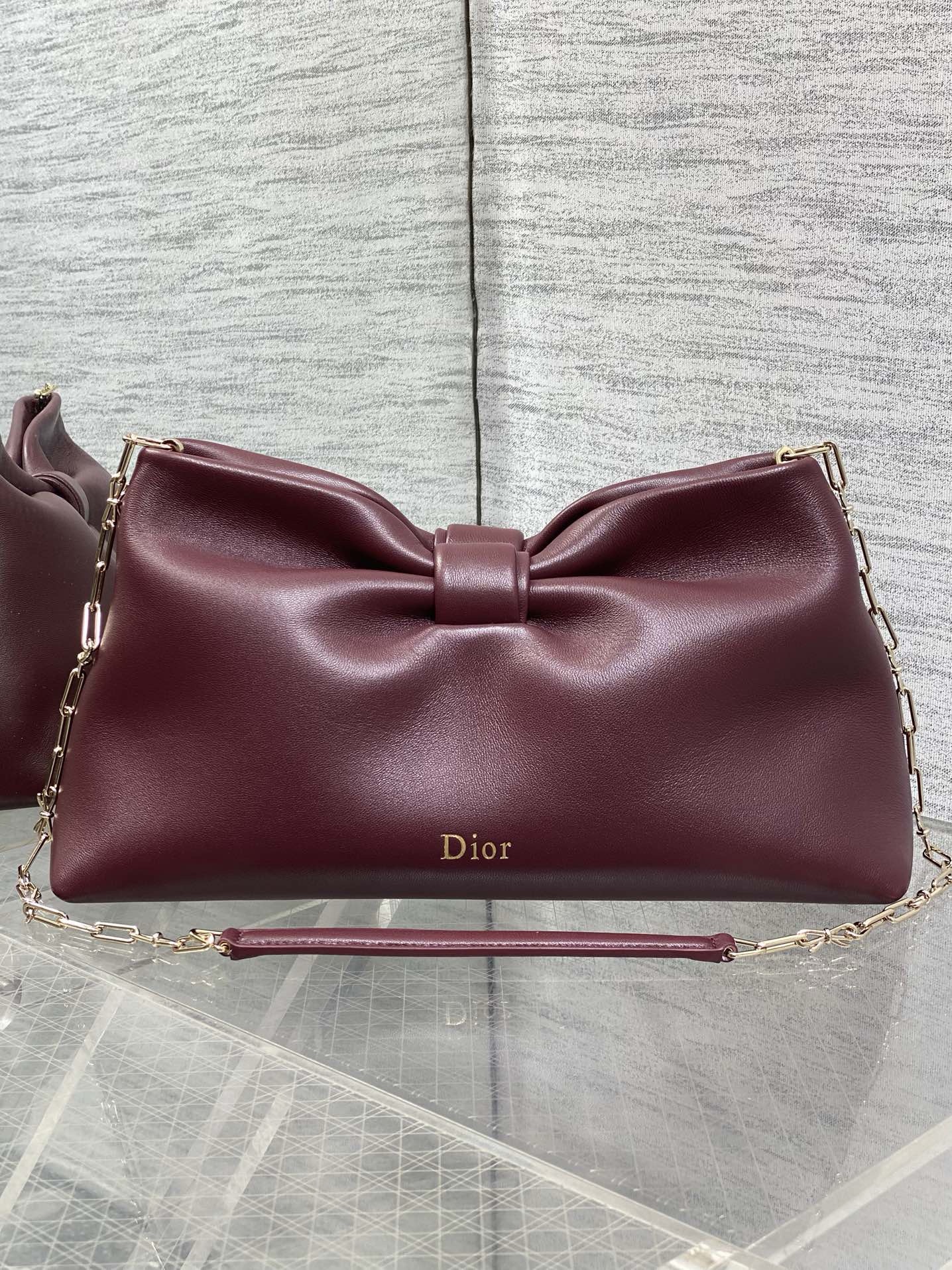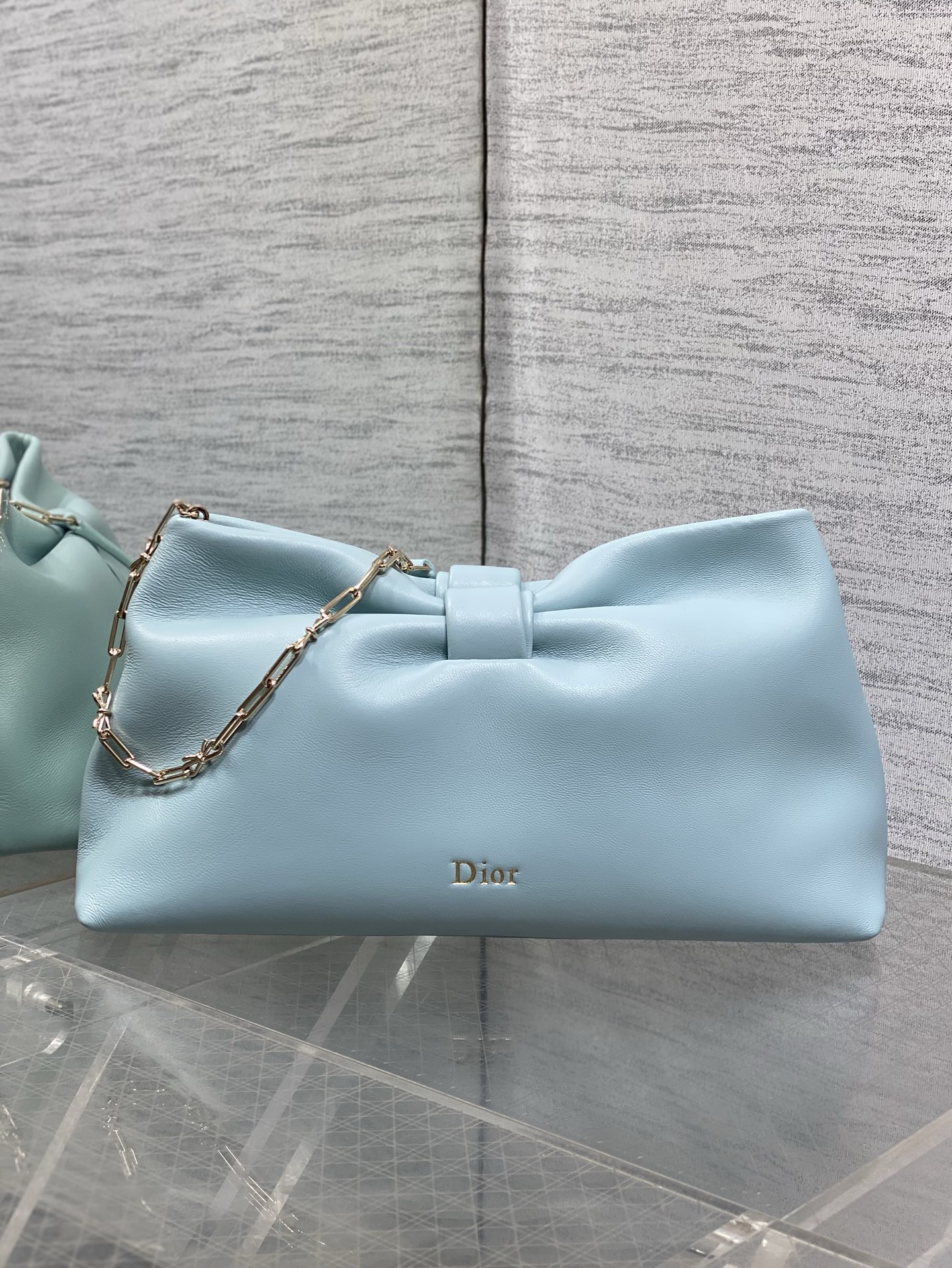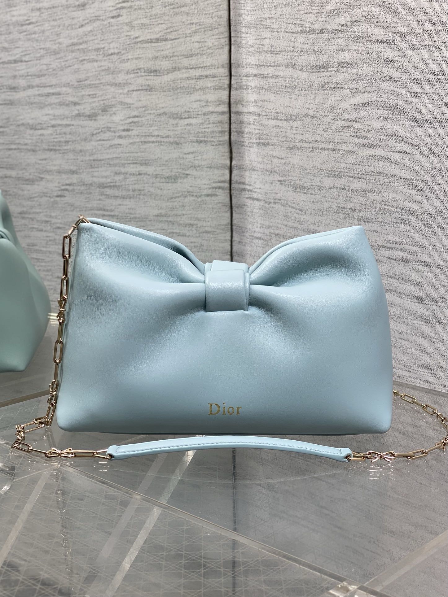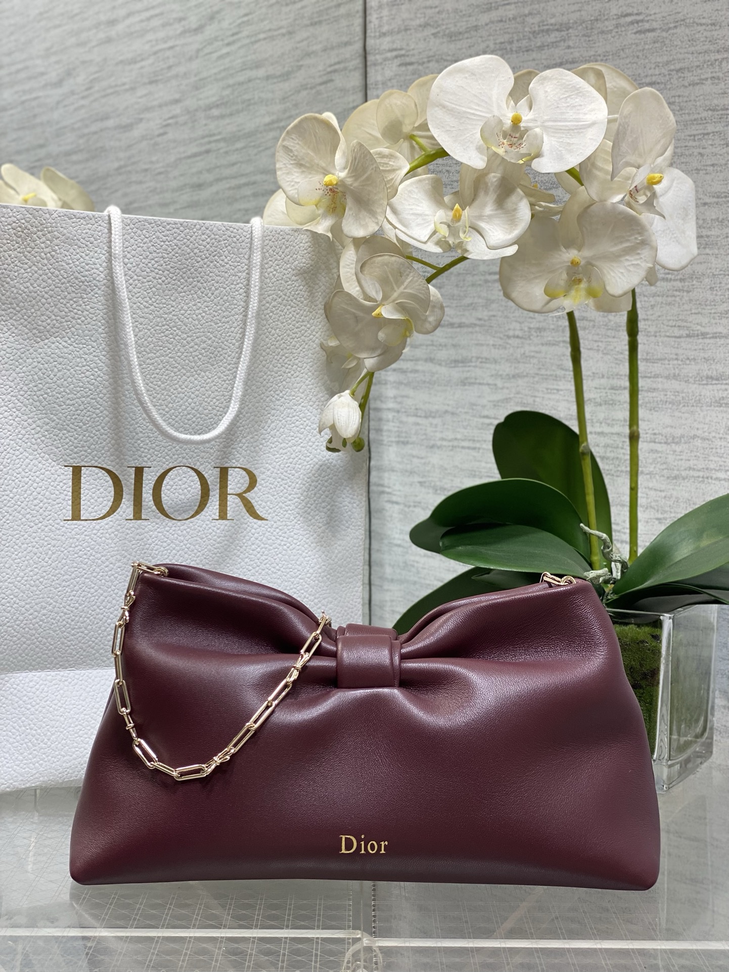 Дизайн: Сумка выполнена в форме объемного банта из кожи. Она сочетает классические коды бренда с современным игривым стилем. Материал и детали: Изделие, изготовлено из кожи ягненка . Она оснащена невидимой застежкой и съемным ремешком-цепочкой с металлическими звеньями.Цвет и размер: Эта модель доступна в различных цветах, включая черный, розовый, турмалин, желтый и белый латте.Коллекция: Сумка Dior является ключевым аксессуаром коллекции весна-лето 2026 года и дебютной моделью под руководством креативного директора Джонатана Андерсона.