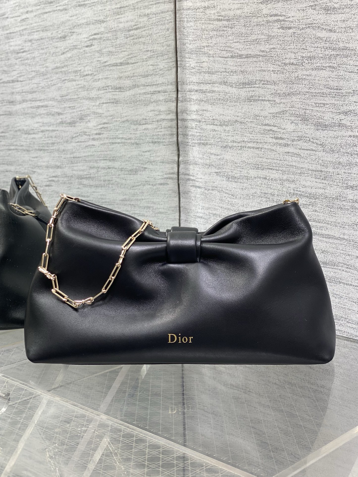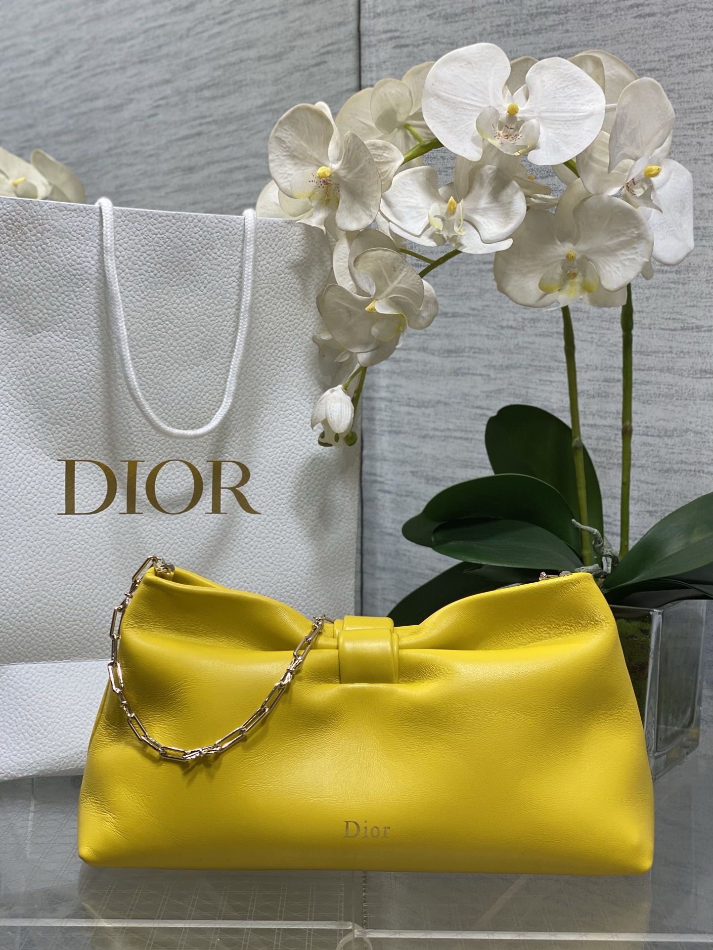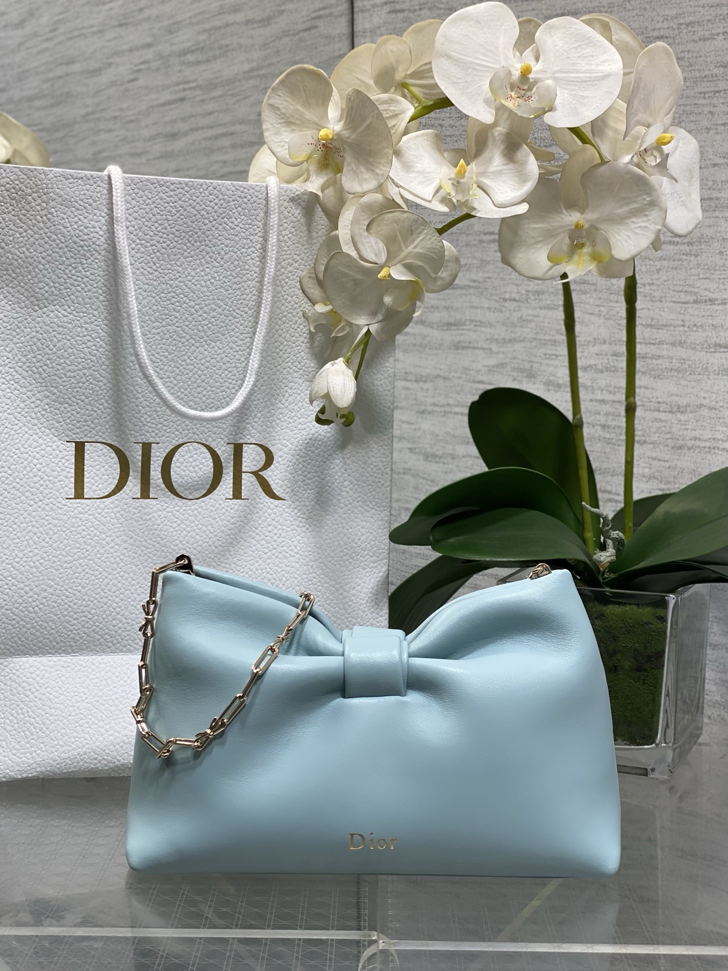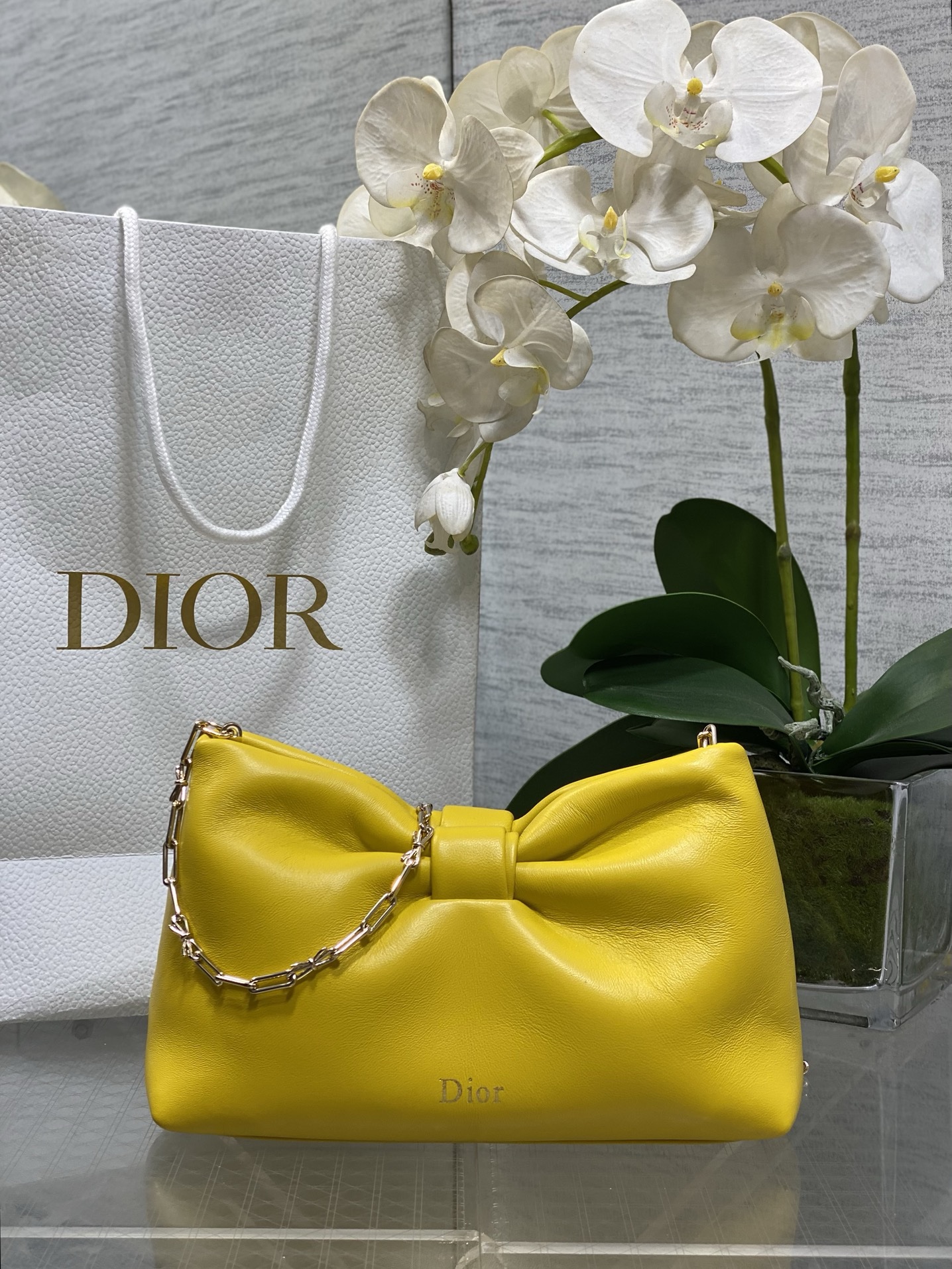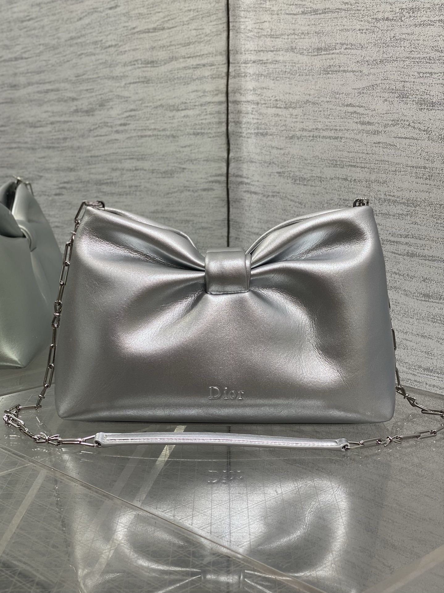 Дизайн: Сумка выполнена в форме объемного банта из кожи. Она сочетает классические коды бренда с современным игривым стилем. Материал и детали: Изделие, изготовлено из кожи ягненка . Она оснащена невидимой застежкой и съемным ремешком-цепочкой с металлическими звеньями.Цвет и размер: Эта модель доступна в различных цветах, включая черный, розовый, турмалин, желтый и белый латте.Коллекция: Сумка Dior является ключевым аксессуаром коллекции весна-лето 2026 года и дебютной моделью под руководством креативного директора Джонатана Андерсона.