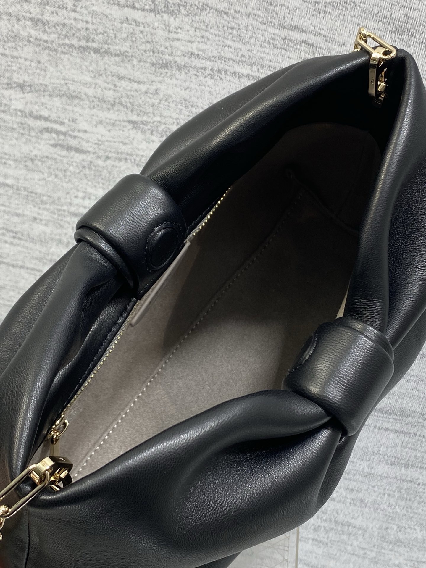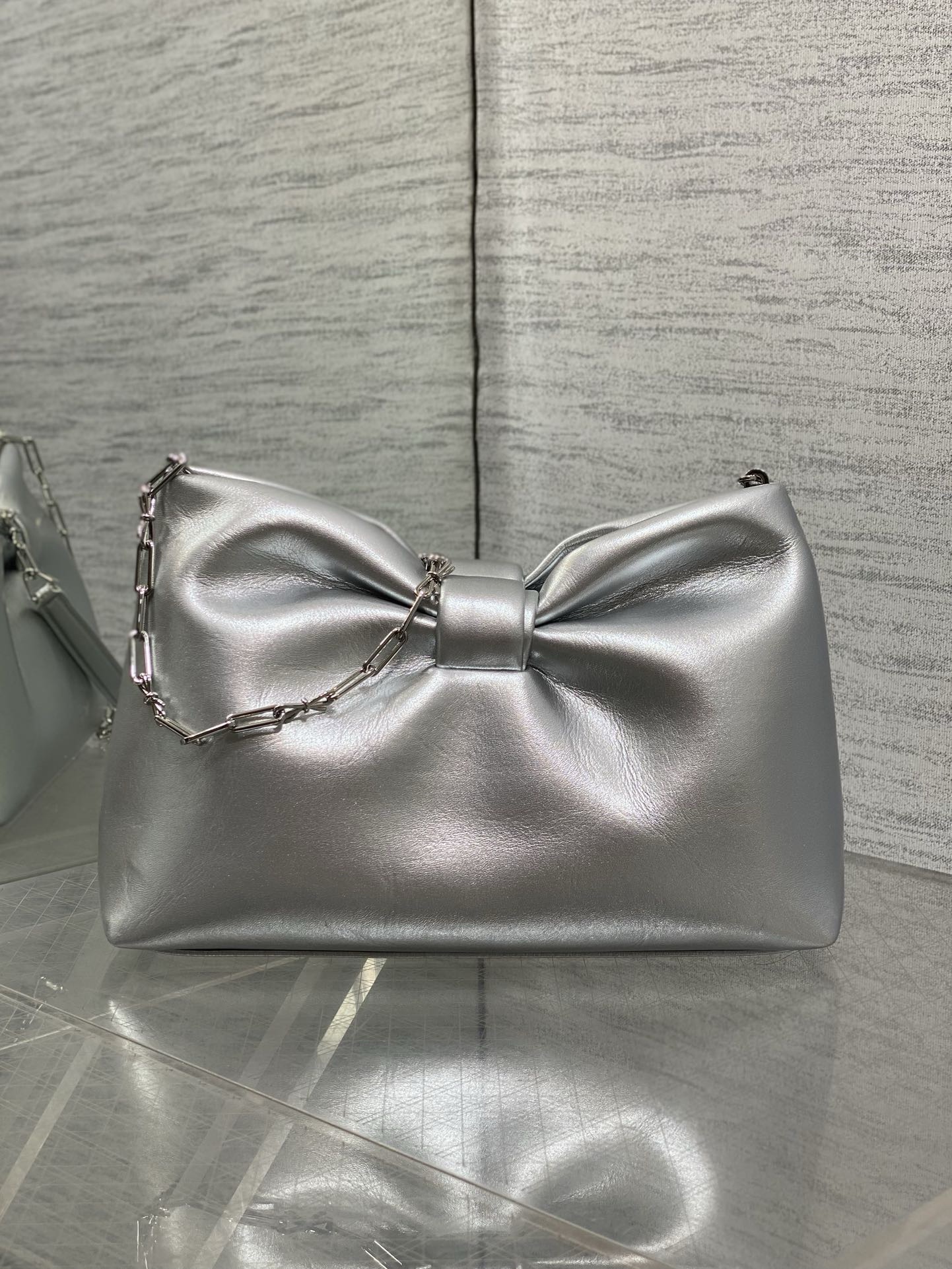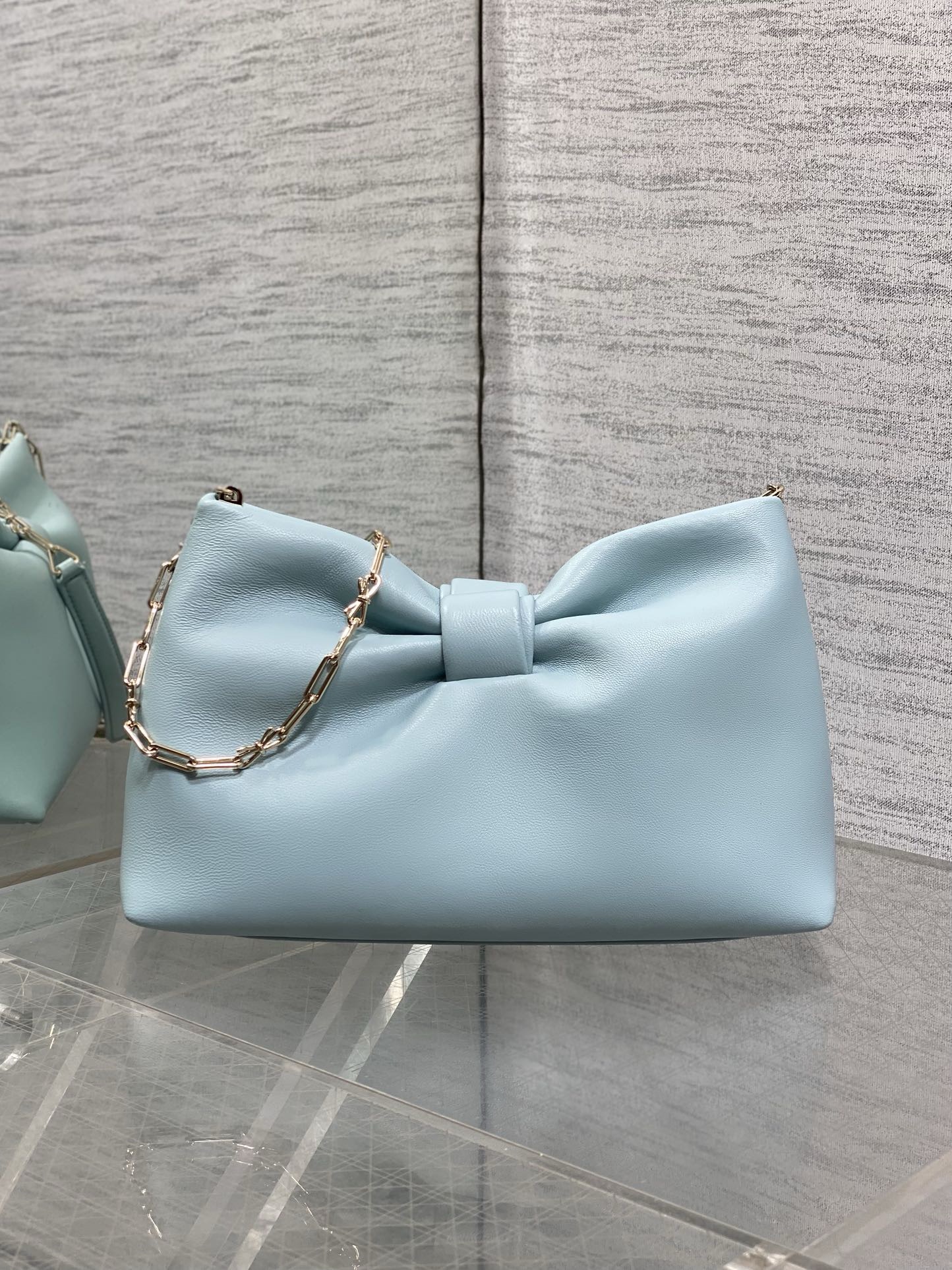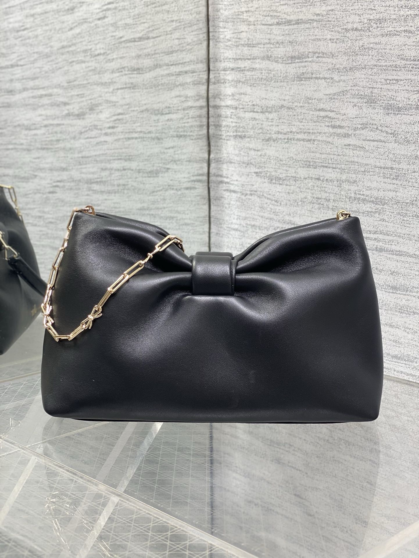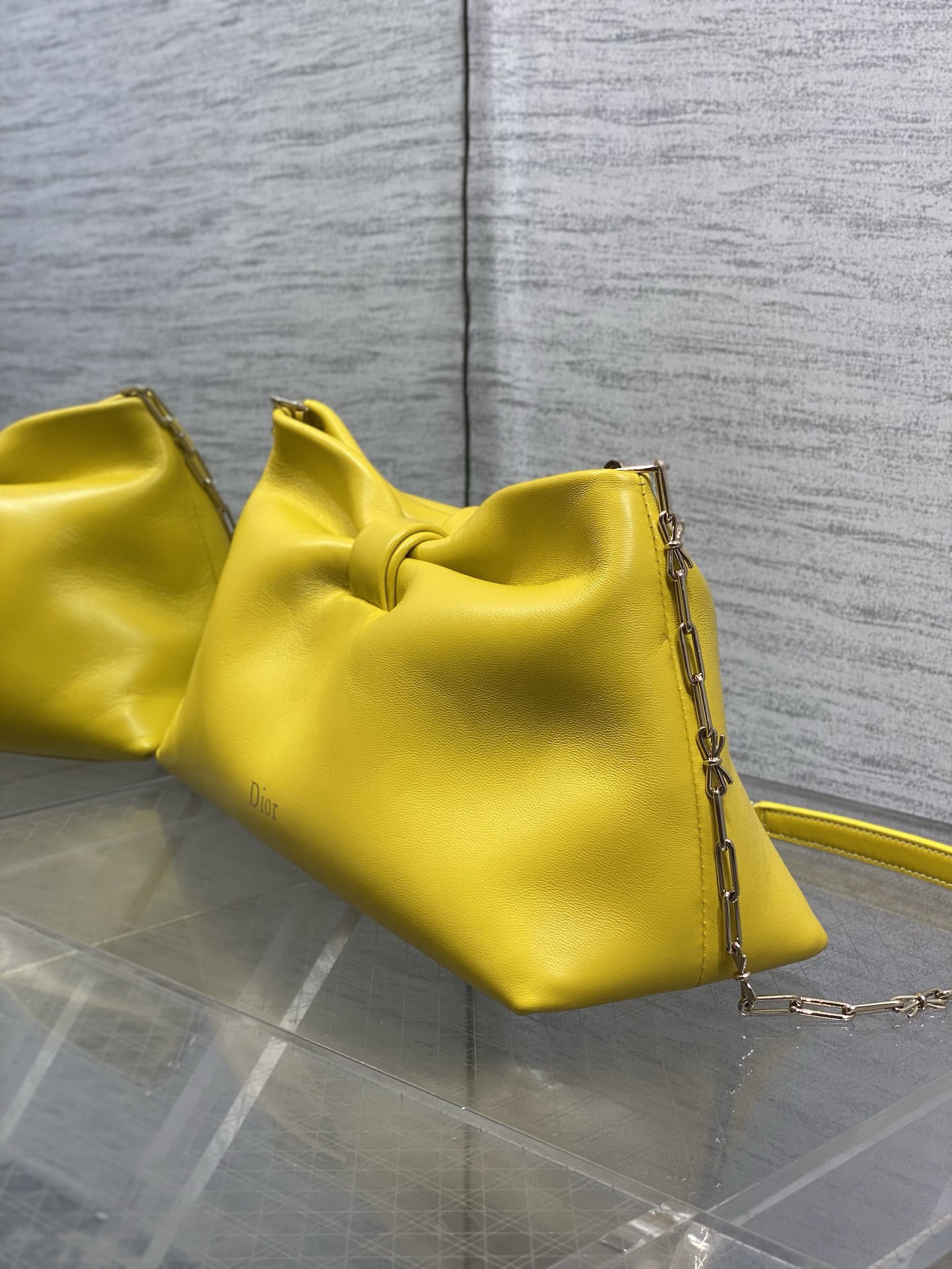 Дизайн: Сумка выполнена в форме объемного банта из кожи. Она сочетает классические коды бренда с современным игривым стилем. Материал и детали: Изделие, изготовлено из кожи ягненка . Она оснащена невидимой застежкой и съемным ремешком-цепочкой с металлическими звеньями.Цвет и размер: Эта модель доступна в различных цветах, включая черный, розовый, турмалин, желтый и белый латте.Коллекция: Сумка Dior является ключевым аксессуаром коллекции весна-лето 2026 года и дебютной моделью под руководством креативного директора Джонатана Андерсона.
