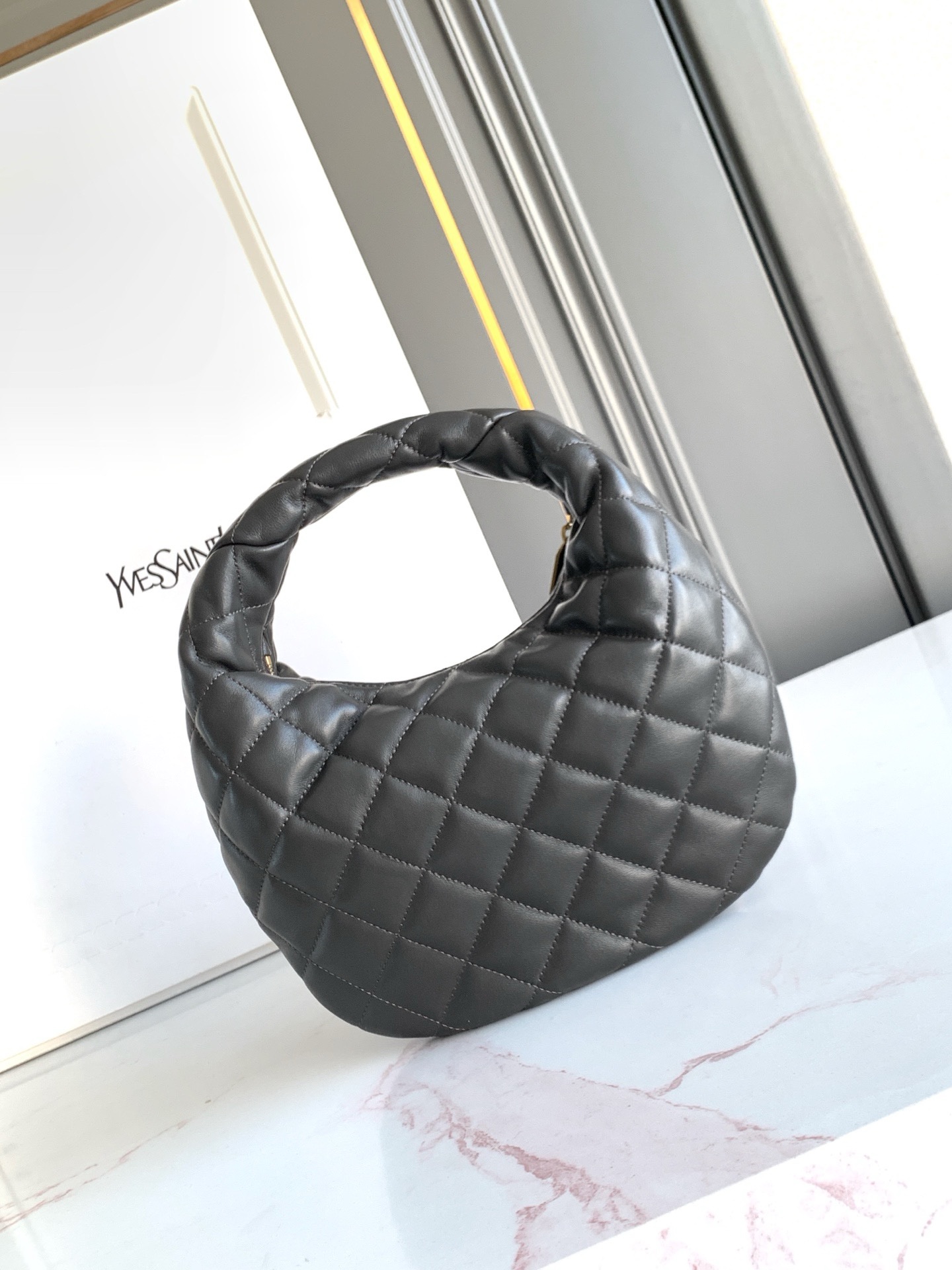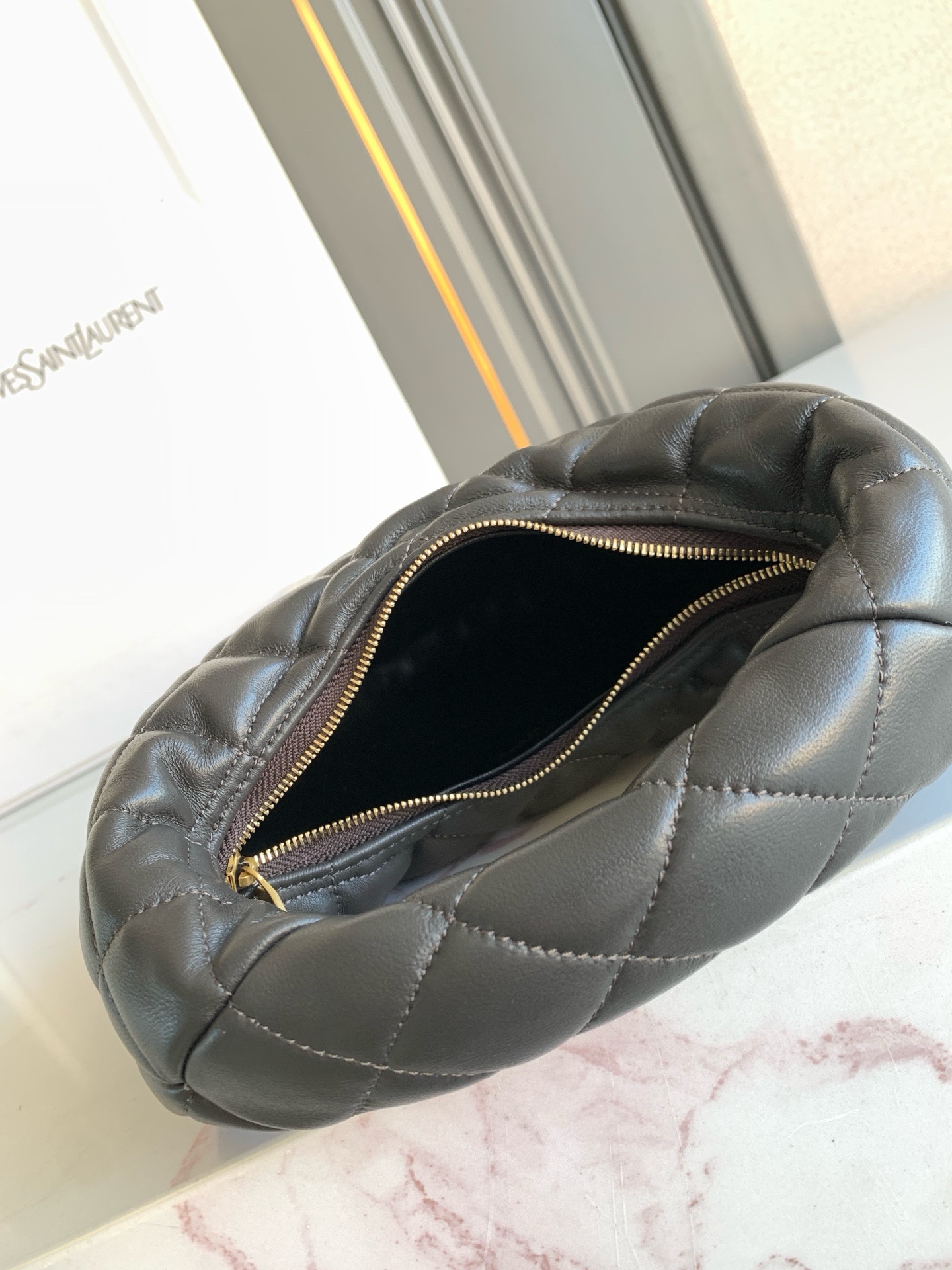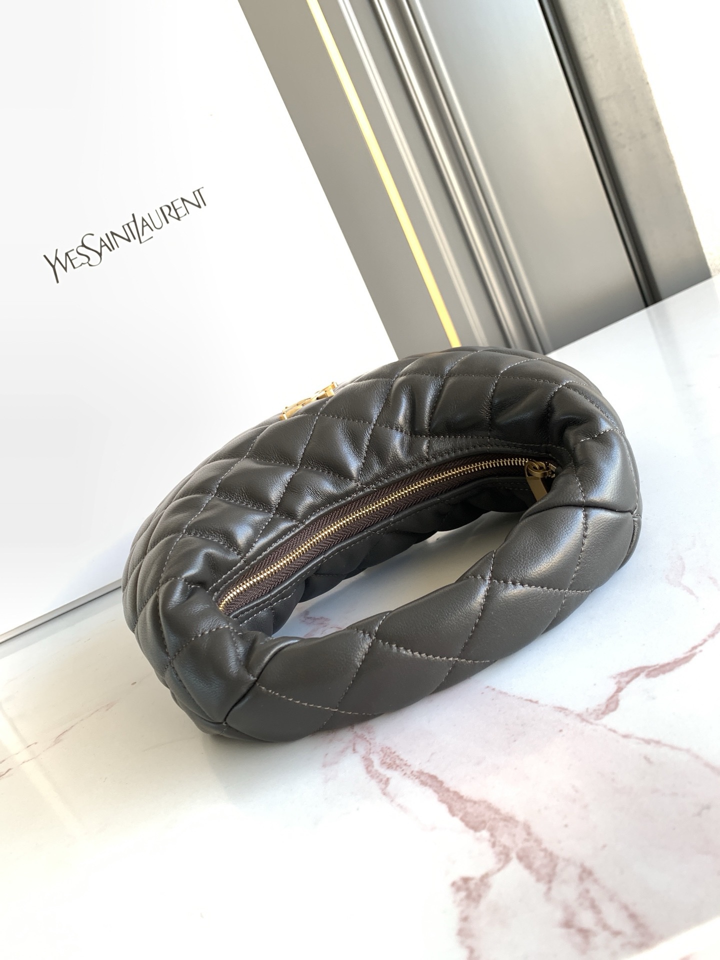 Культовая сумка ICARE из кожи ягненка наппа, версия BABY, украшена стегаными элементами LE CASSANDRE и ромбовидной прострочкой.