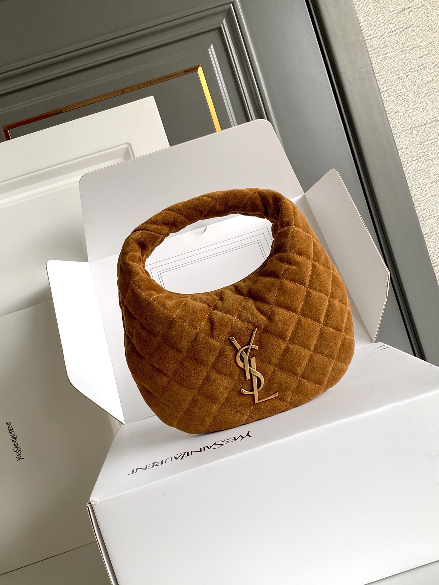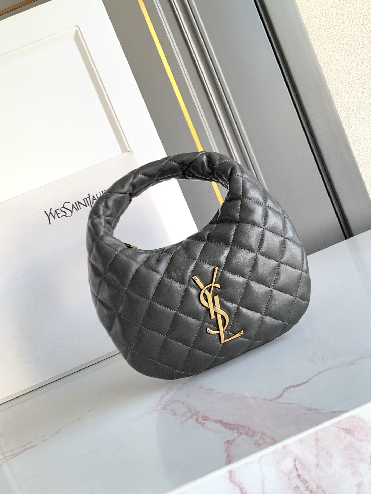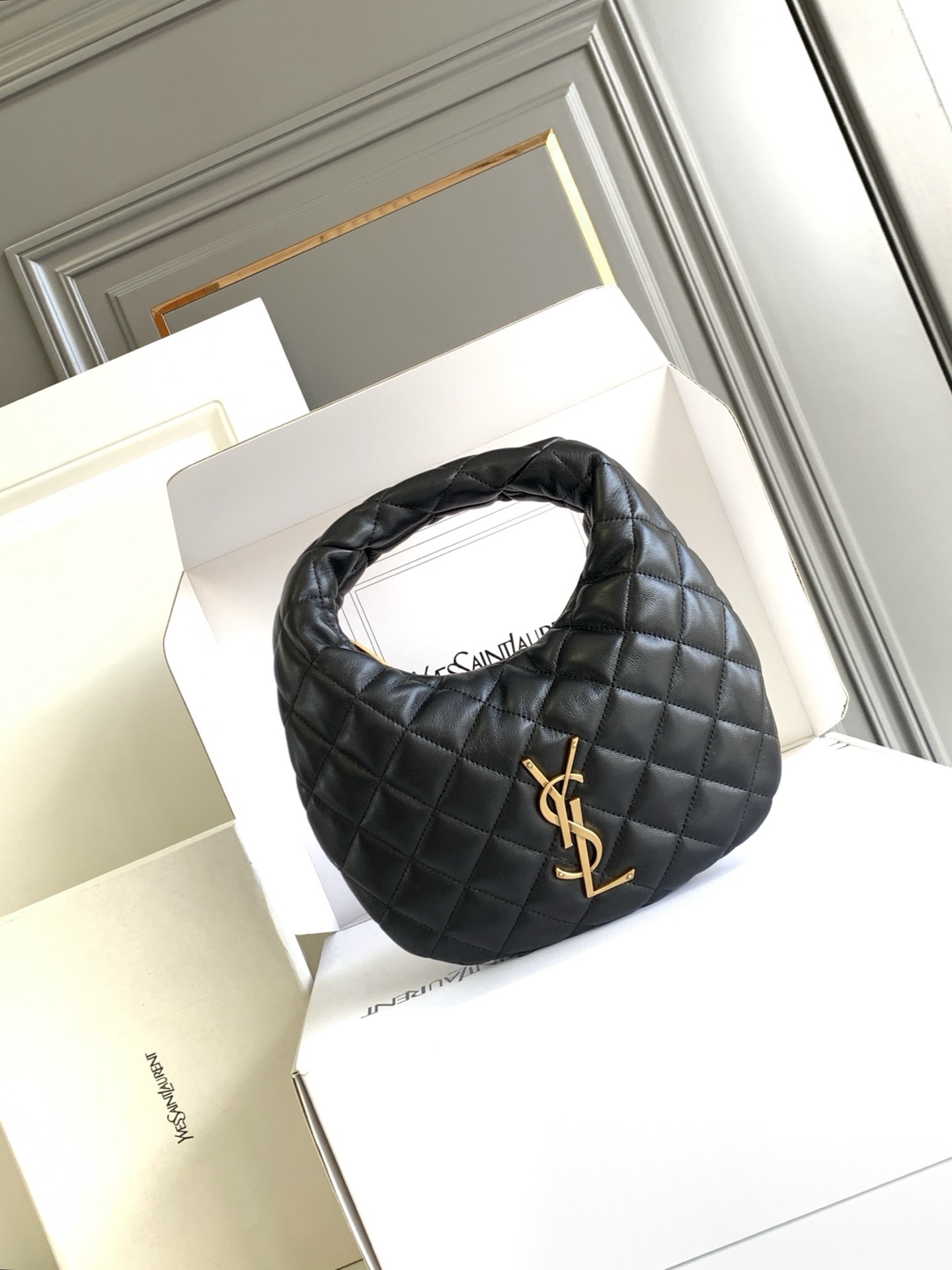Культовая сумка ICARE из кожи ягненка наппа, версия BABY, украшена стегаными элементами LE CASSANDRE и ромбовидной прострочкой.