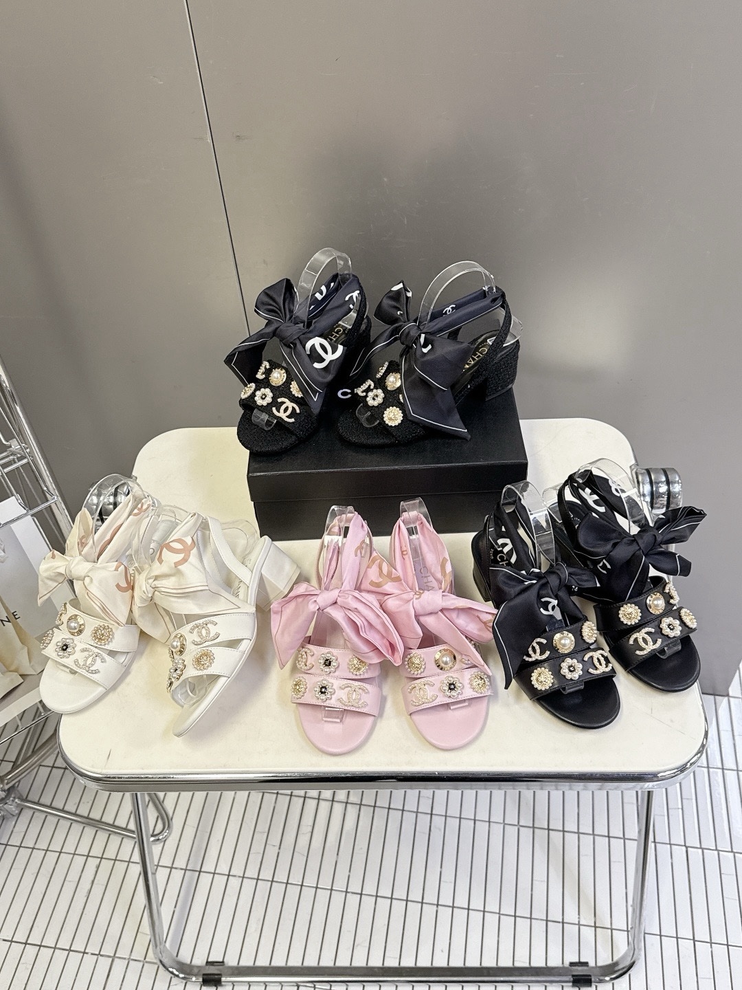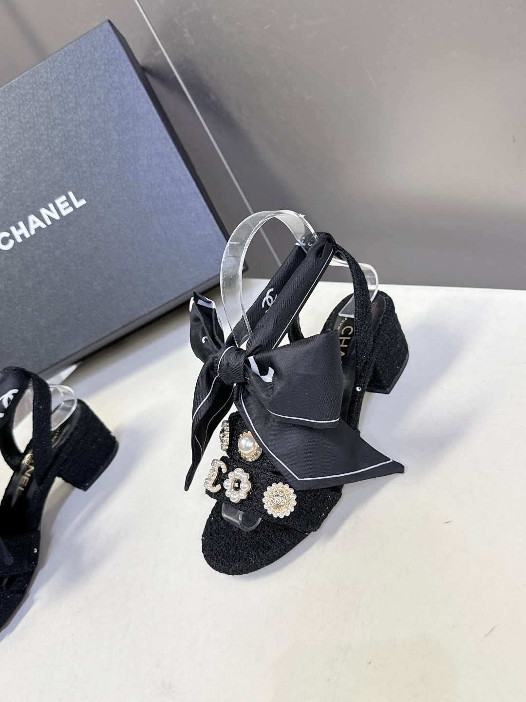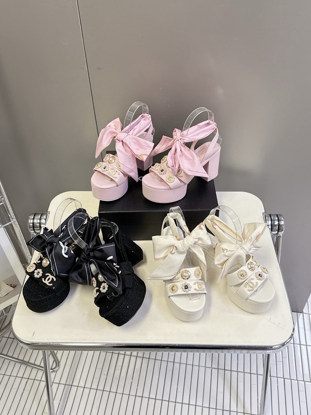 Новинка CHANEL Весна/Лето: Стеганые сандалии на массивном каблуке с бантом