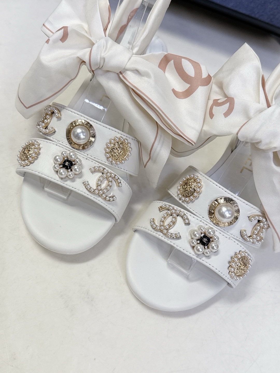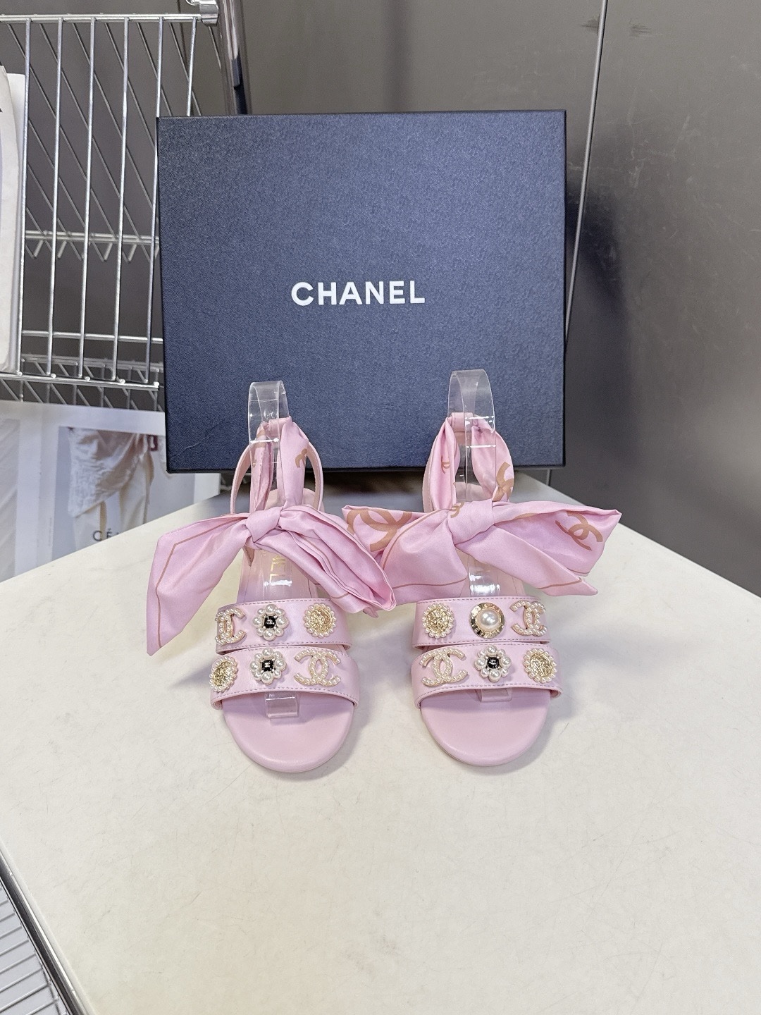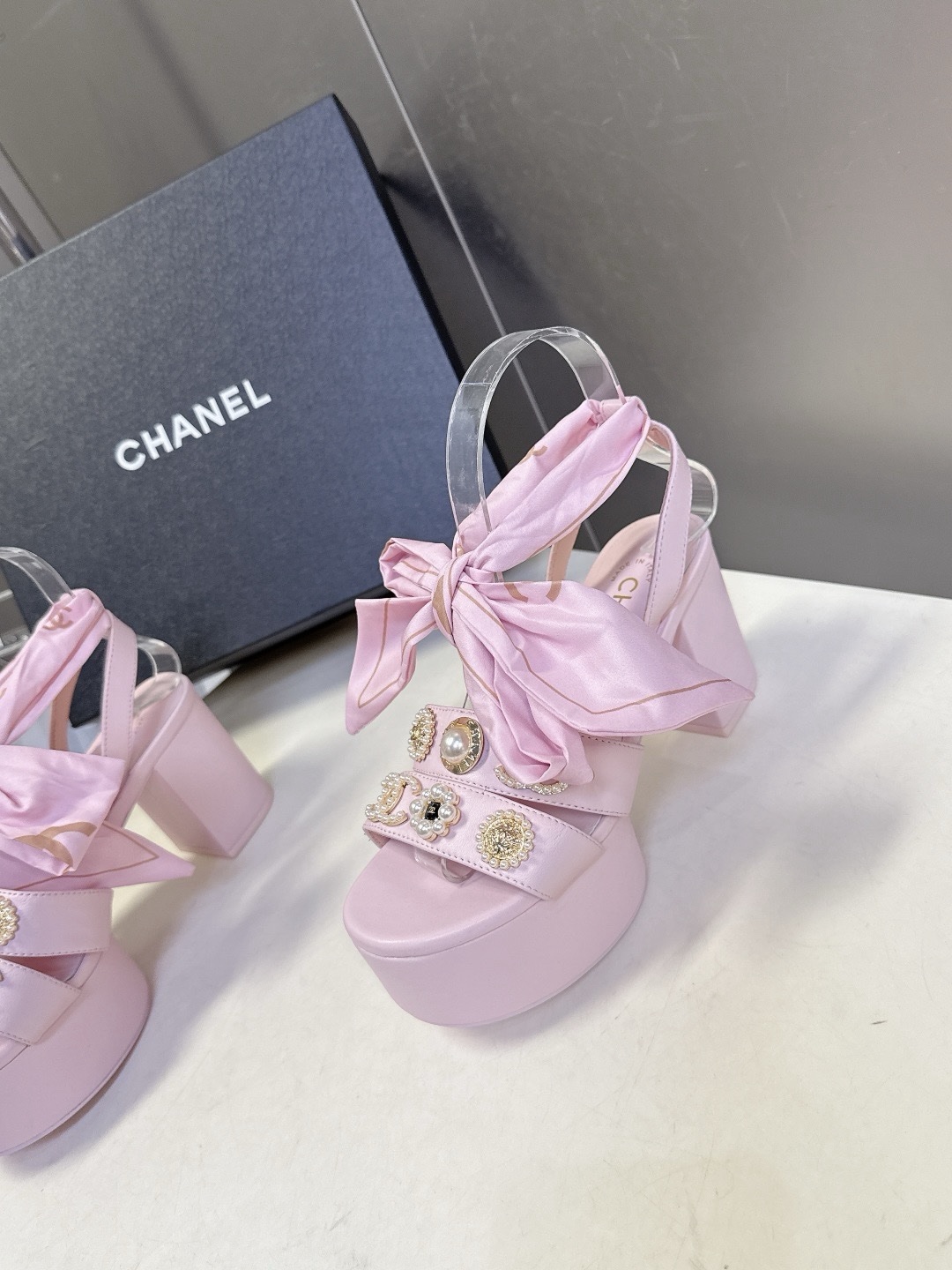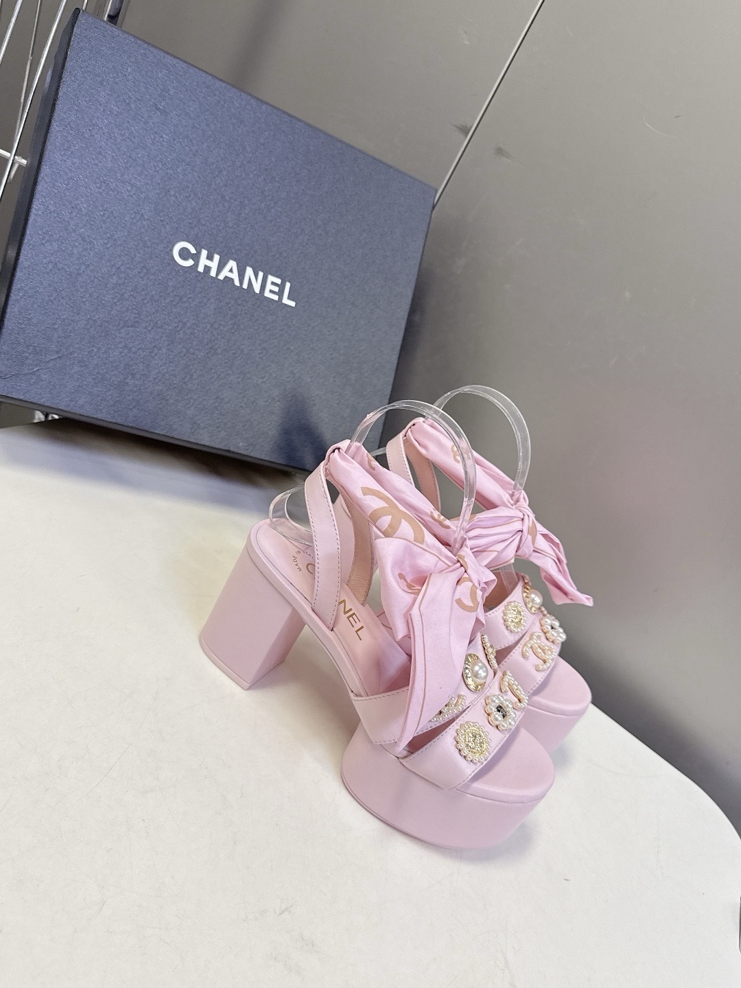 Новинка CHANEL Весна/Лето: Стеганые сандалии на массивном каблуке с бантом