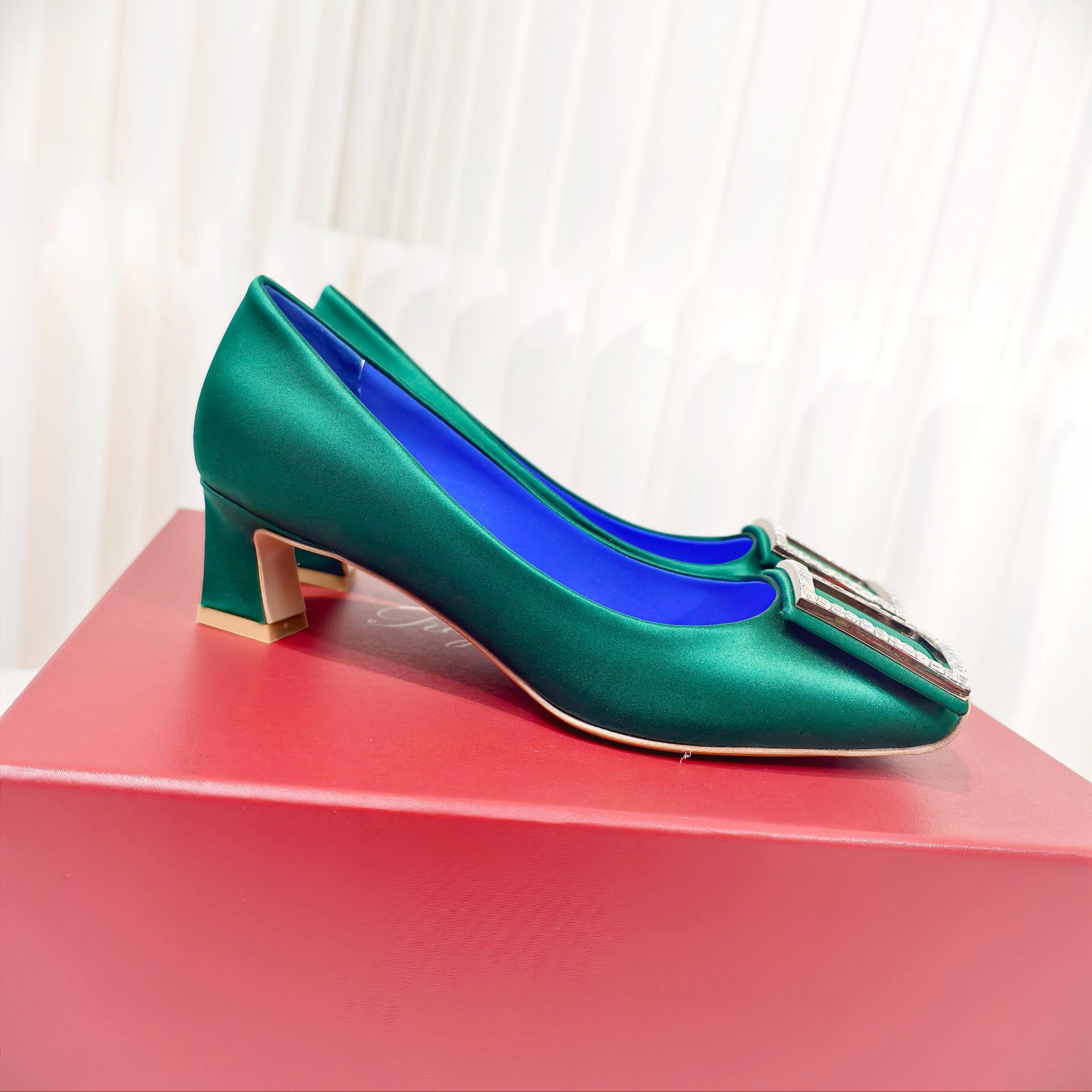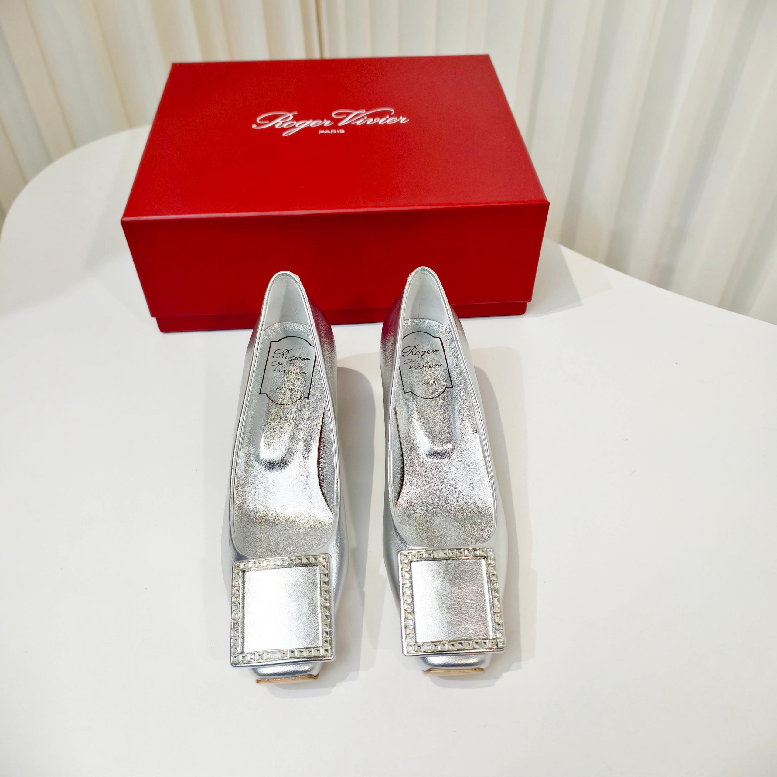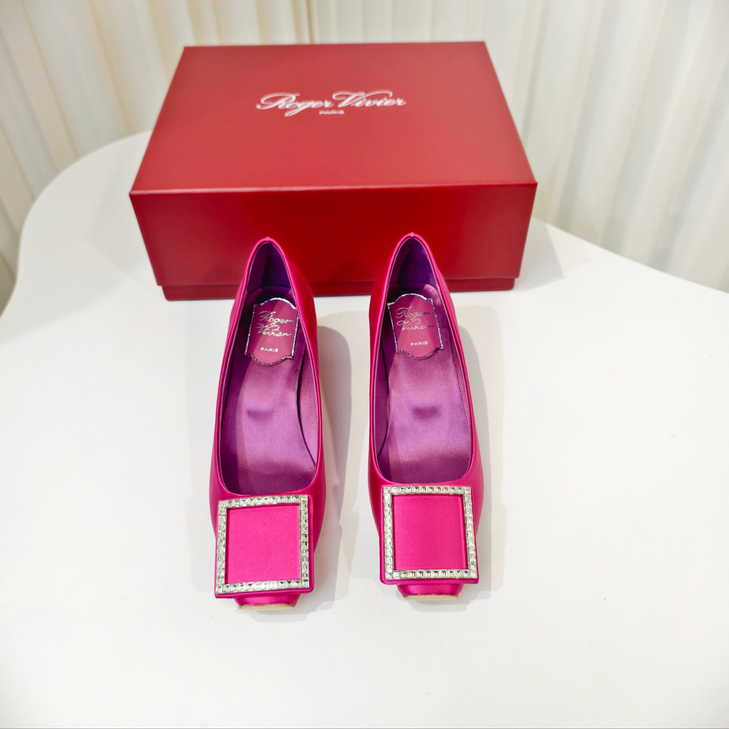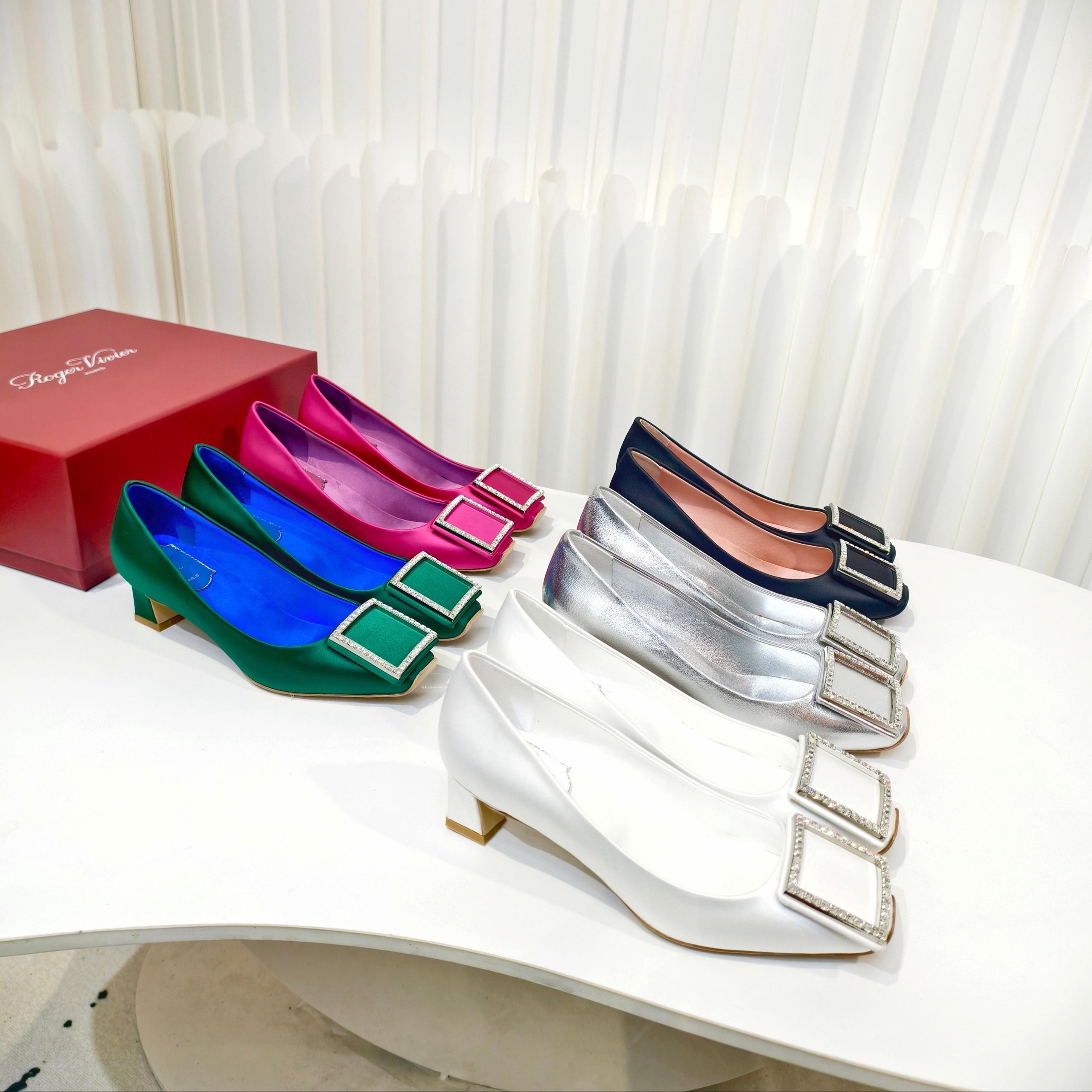 Новинка весны 2026 года от Roger Vivier , Шелковые туфли на низком каблуке с простой пряжкой