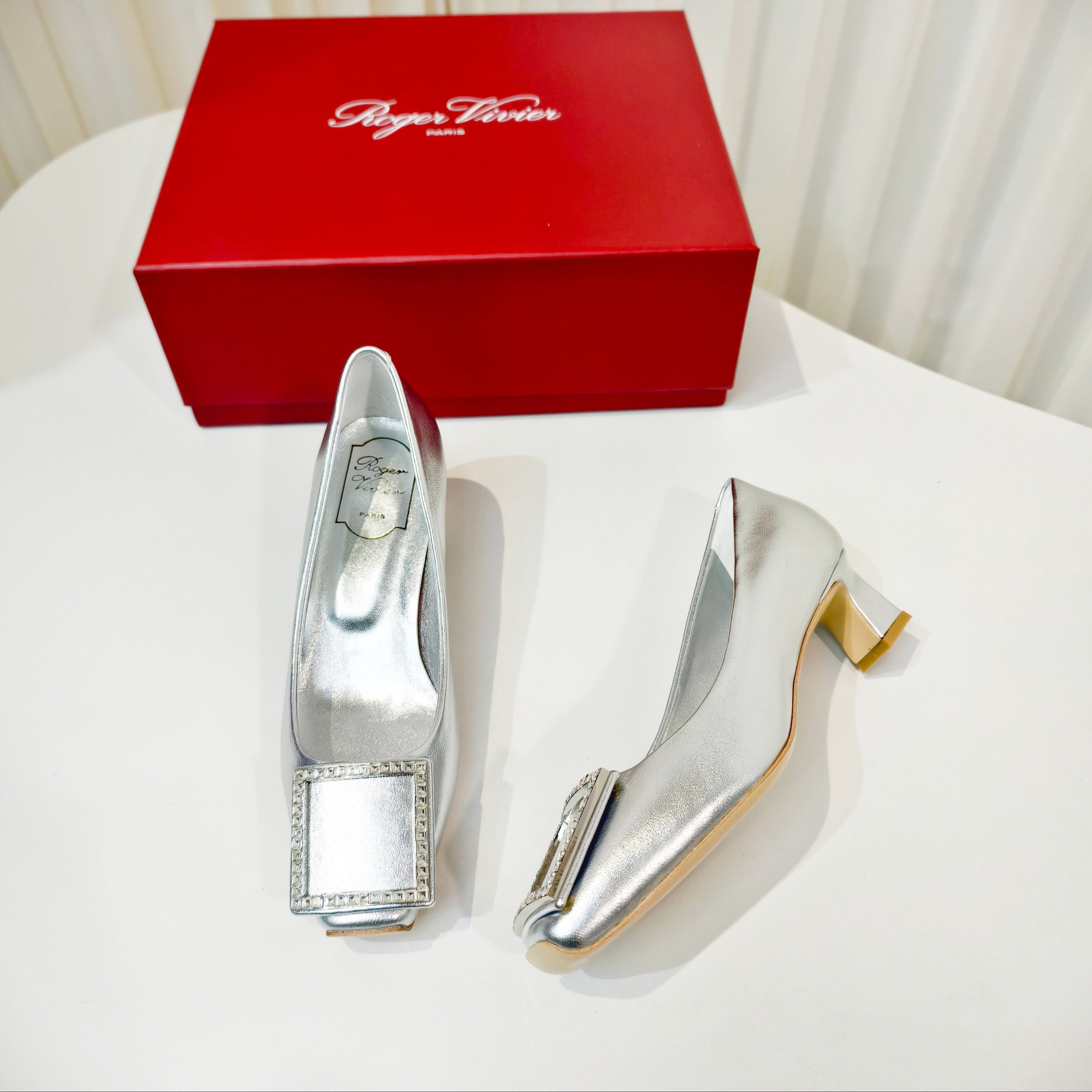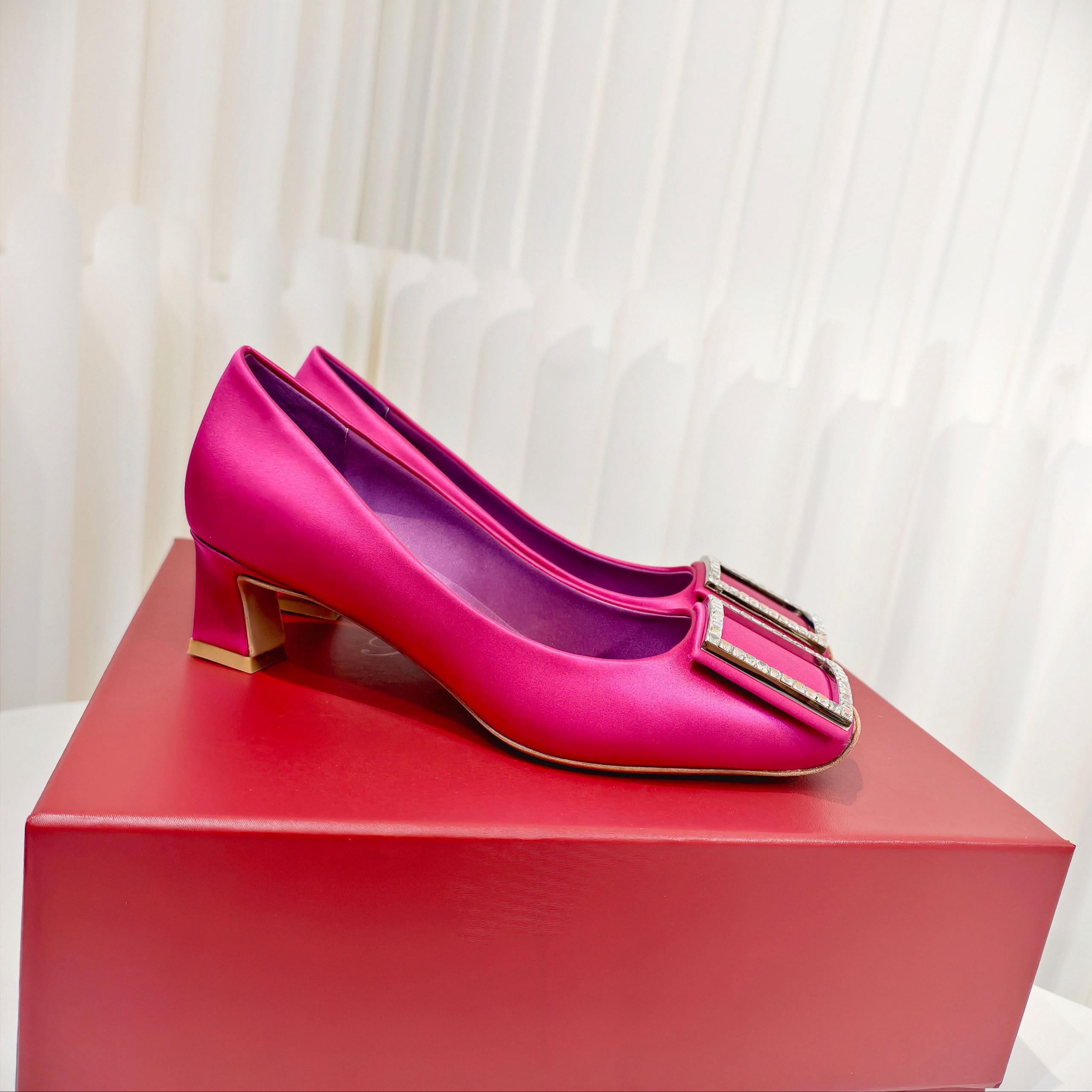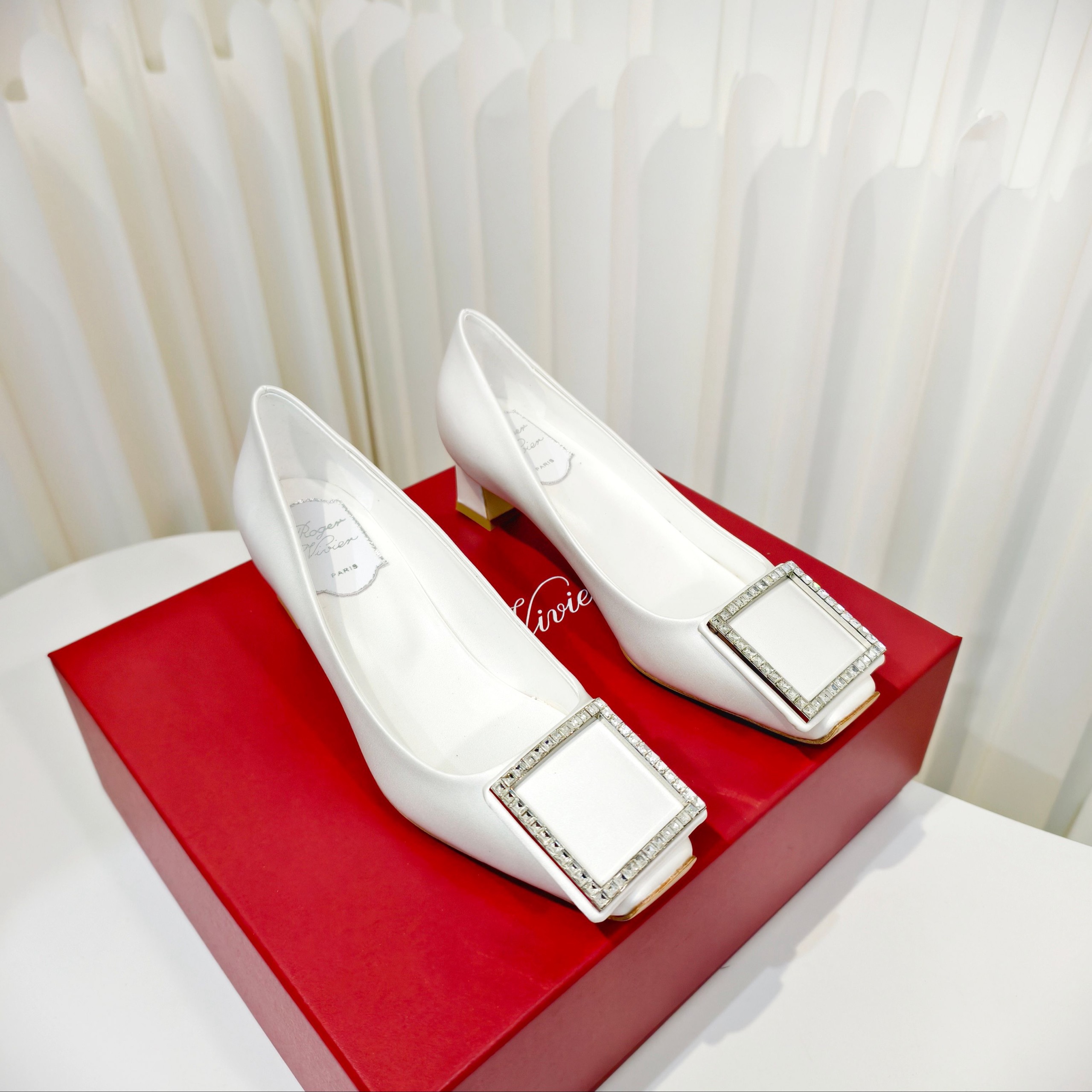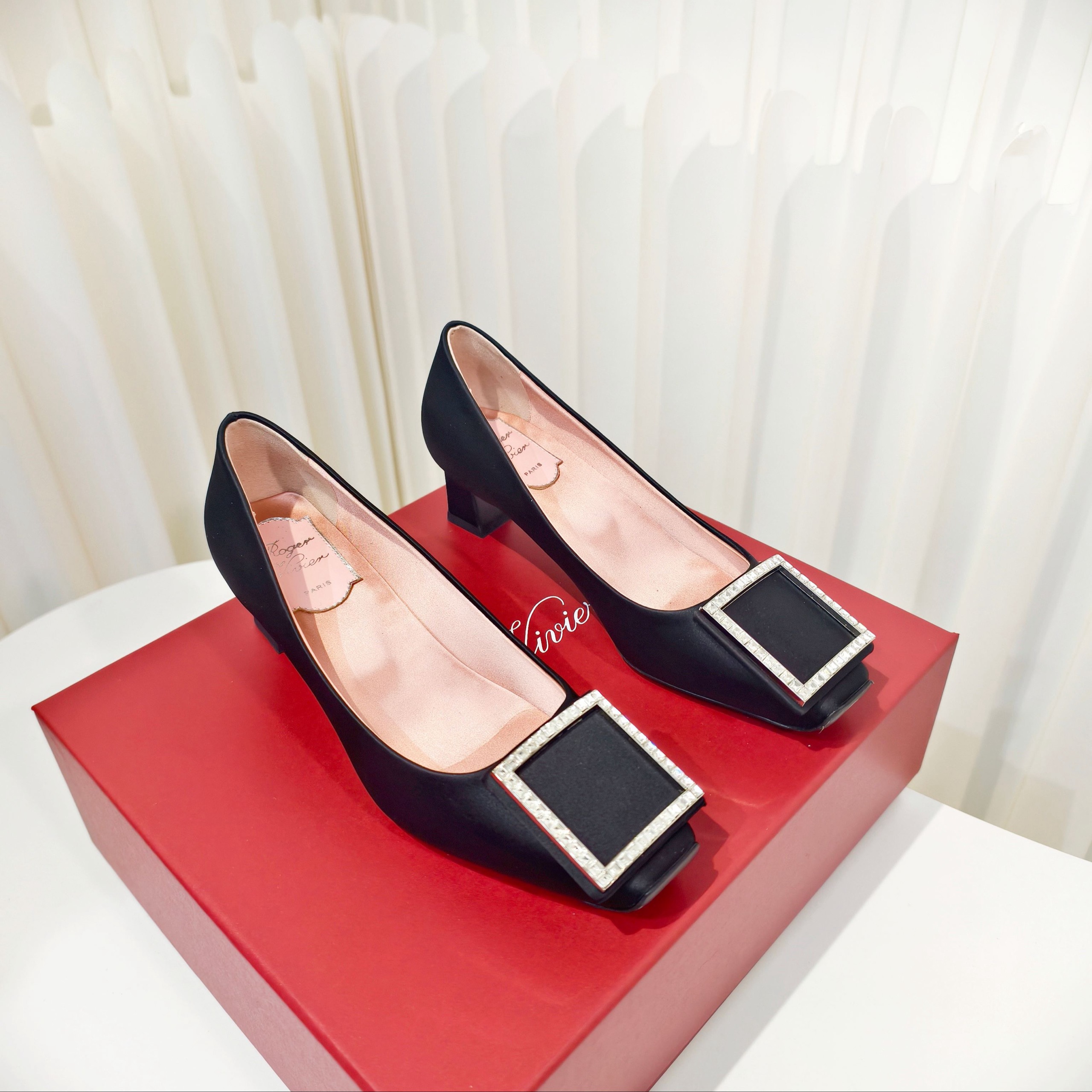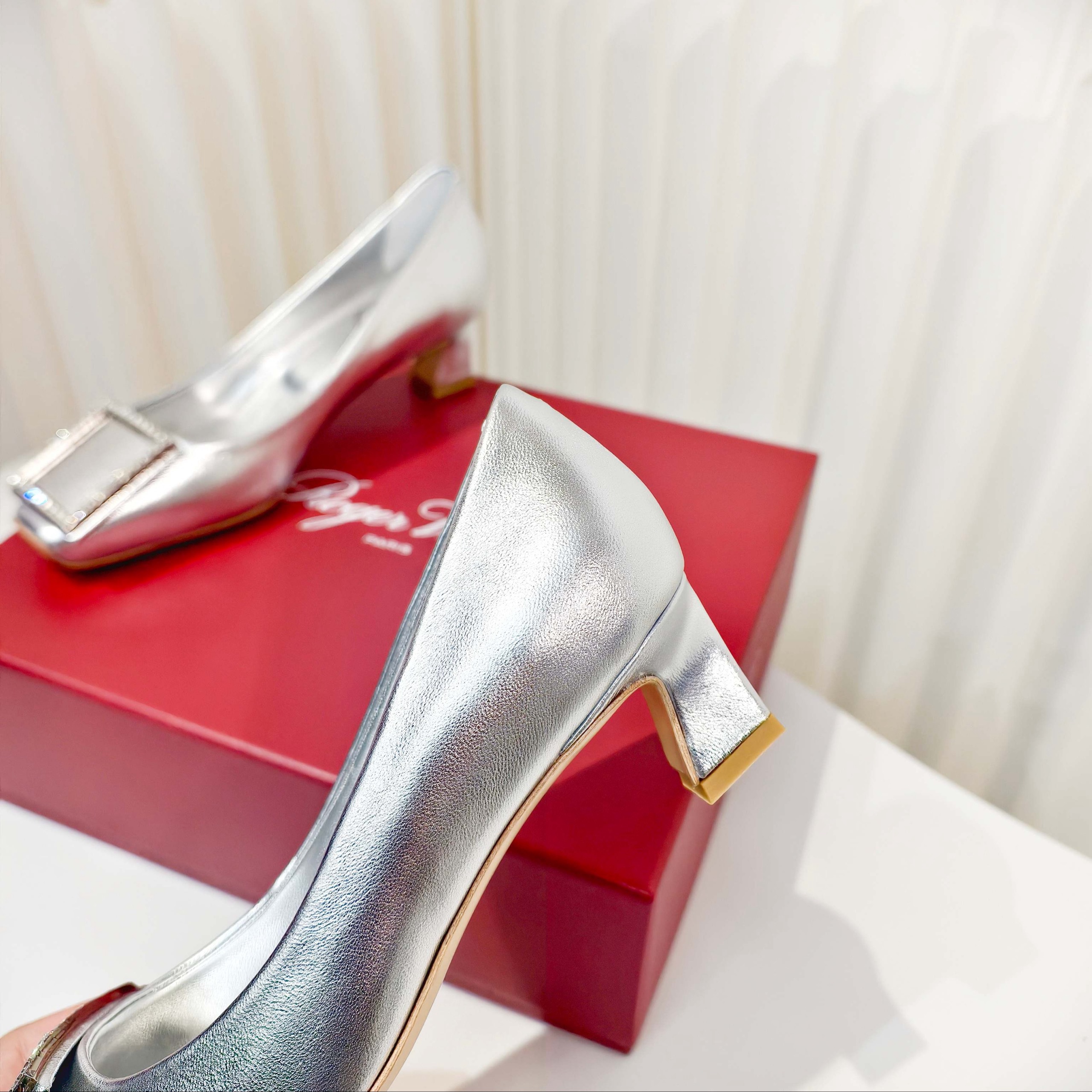 Новинка весны 2026 года от Roger Vivier , Шелковые туфли на низком каблуке с простой пряжкой