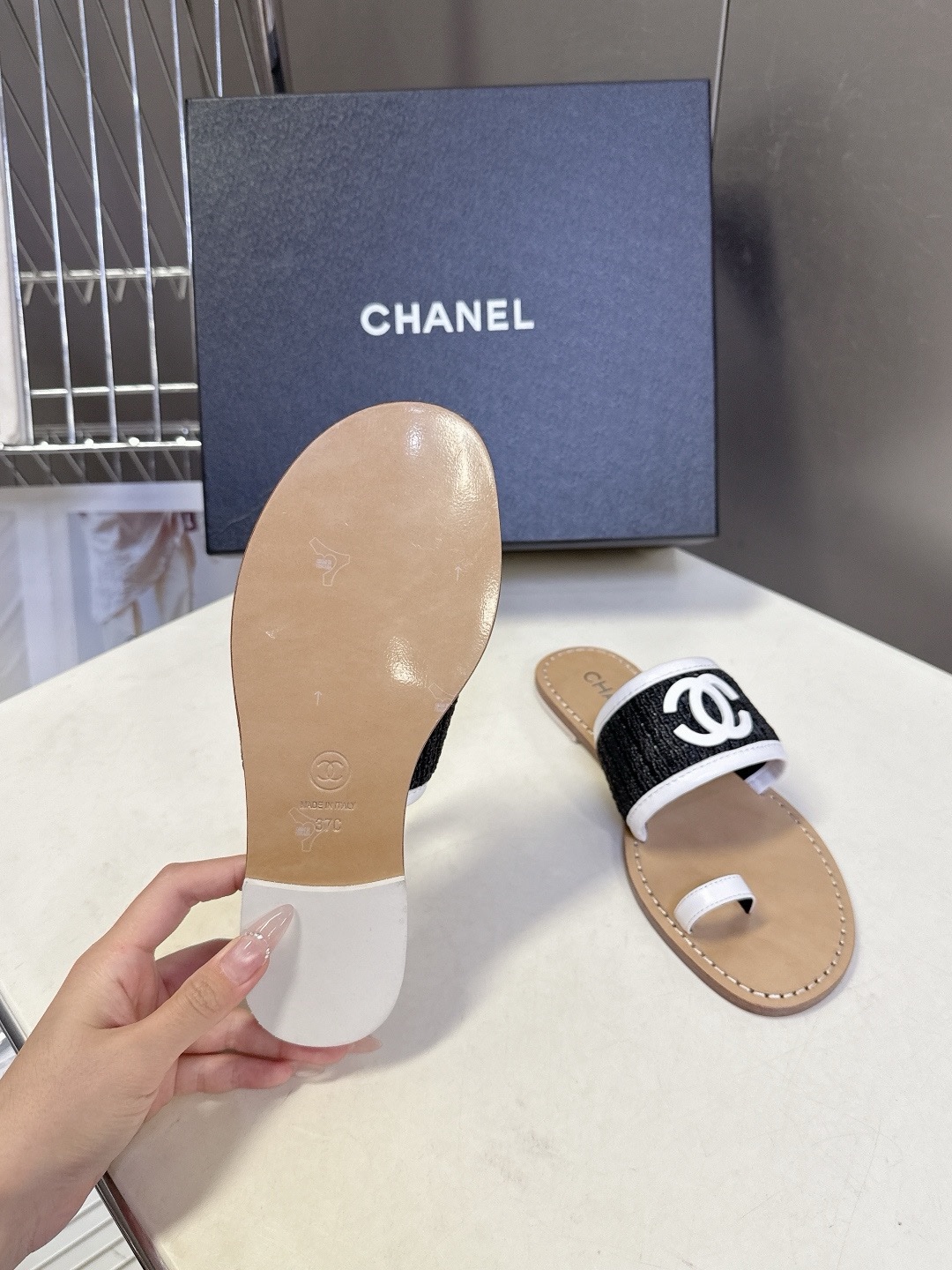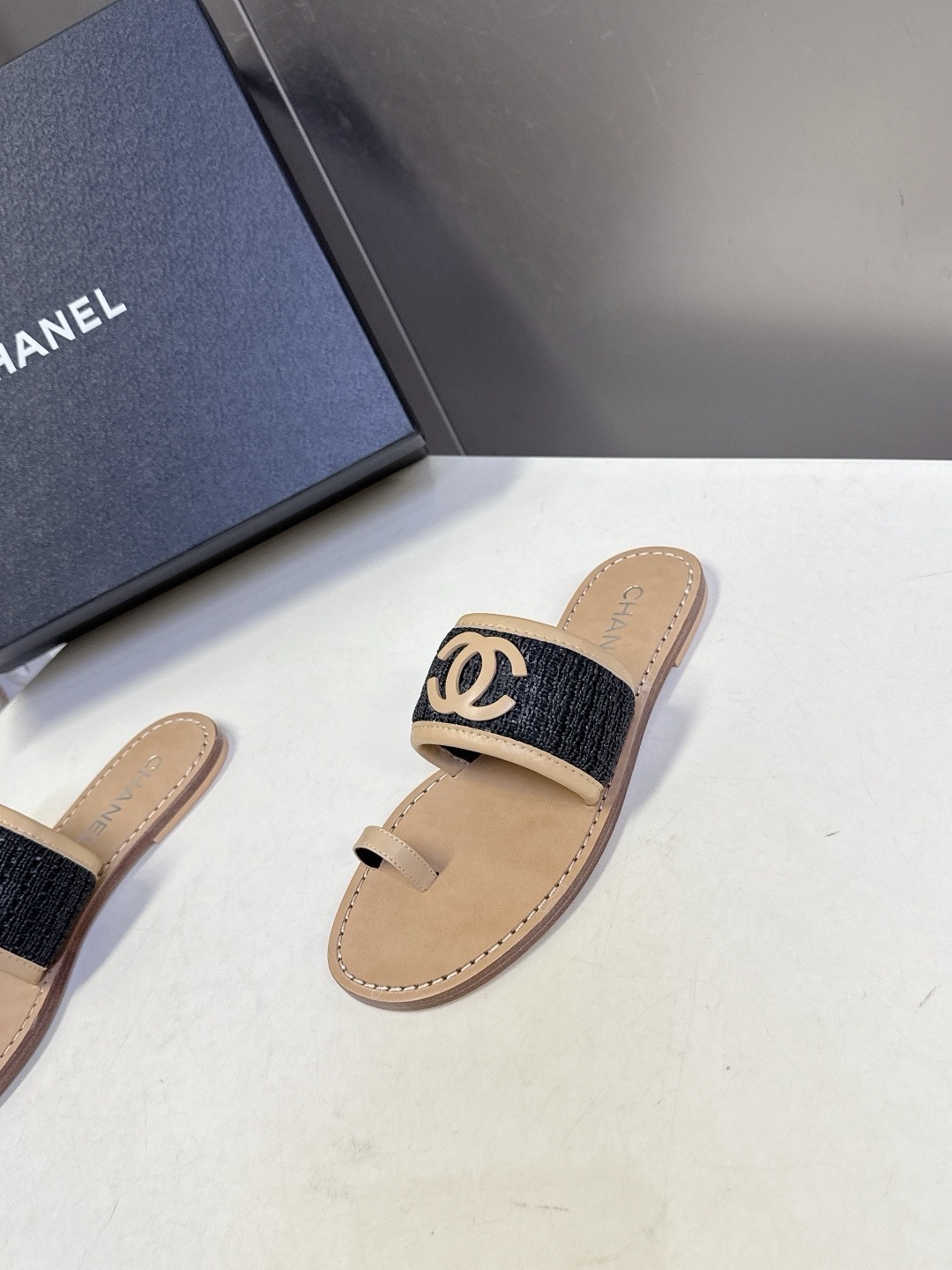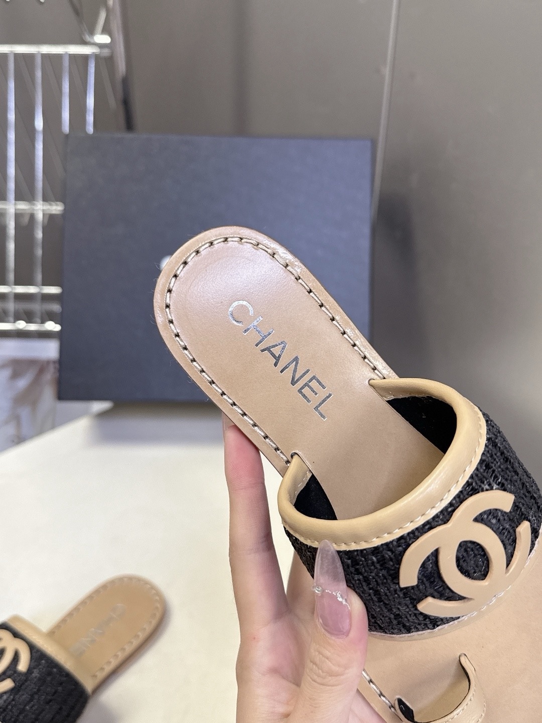 Новые тапочки CHANEL Double C весна/лето 2026 Верх: Импортный тканый дышащий материал Внутренняя подкладка: Смешанная овчина Подошва: Натуральная итальянская кожа Размер: 35-40