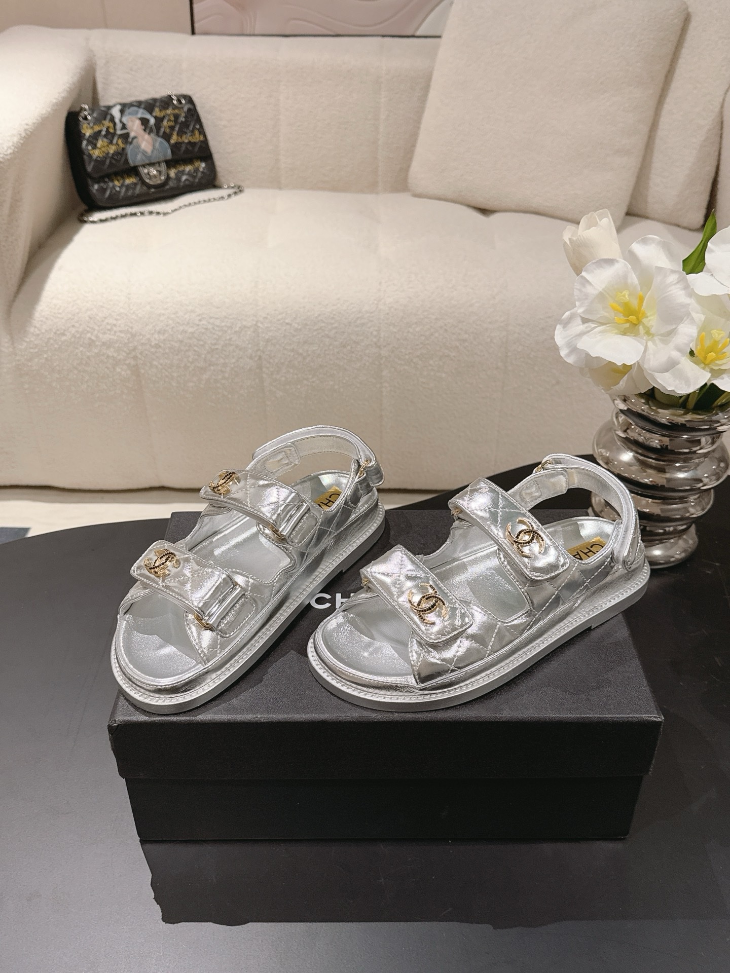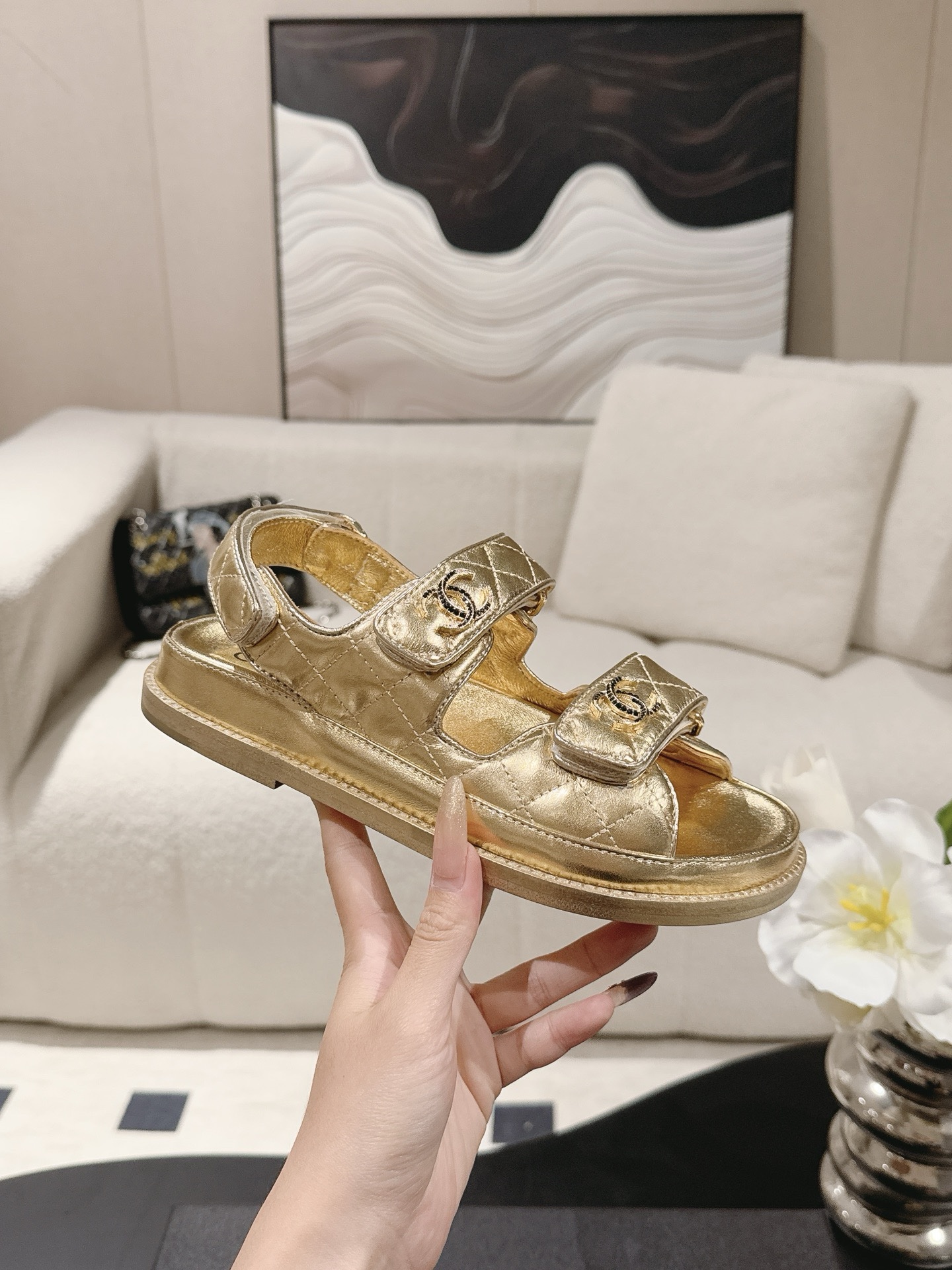 Chanel Новые пляжные туфли, сандалии на липучках.