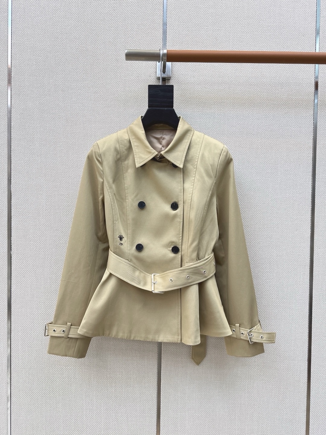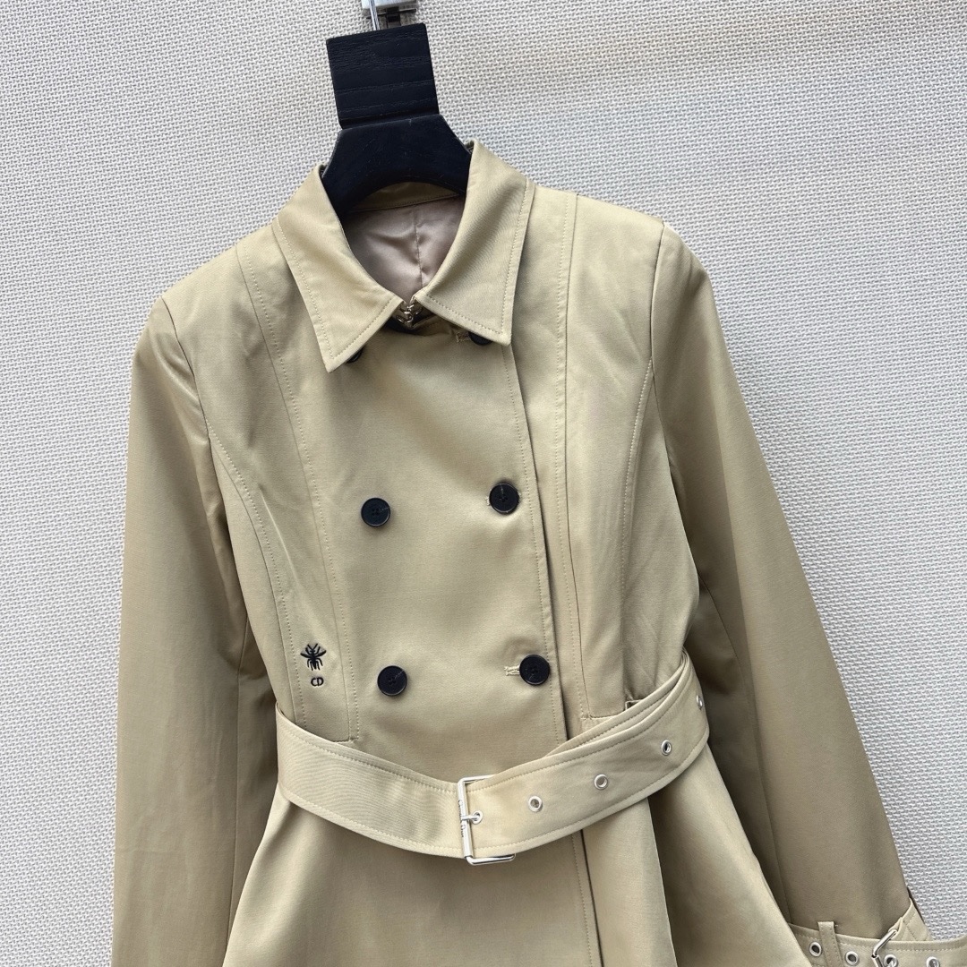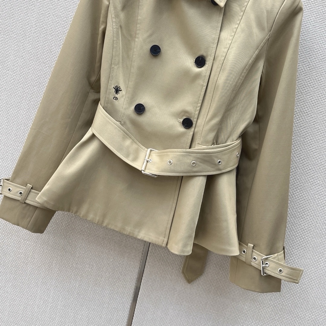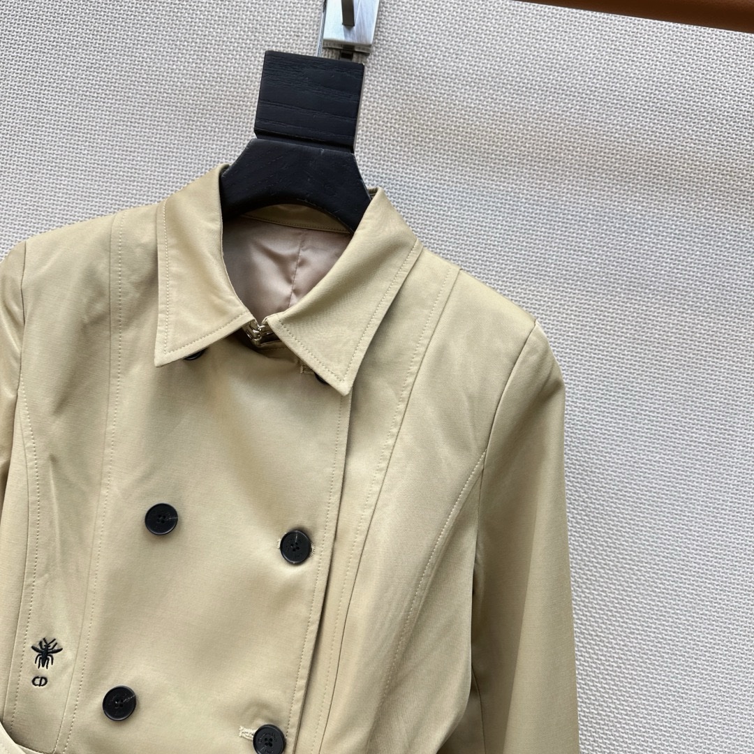 CD — Новейший короткий тренч ранней весны с вышивкой в виде пчел . Парижский европейский шик. Короткий крой невероятно стильный и элегантный. Идеально подходит для поездок на работу или создания модного образа. Отлично подходит для фотосессий. Хорошо сочетается с юбками или брюками. Украшен вышитыми пчелами по бокам. Доступен в двух цветах, размерах S, M и L.