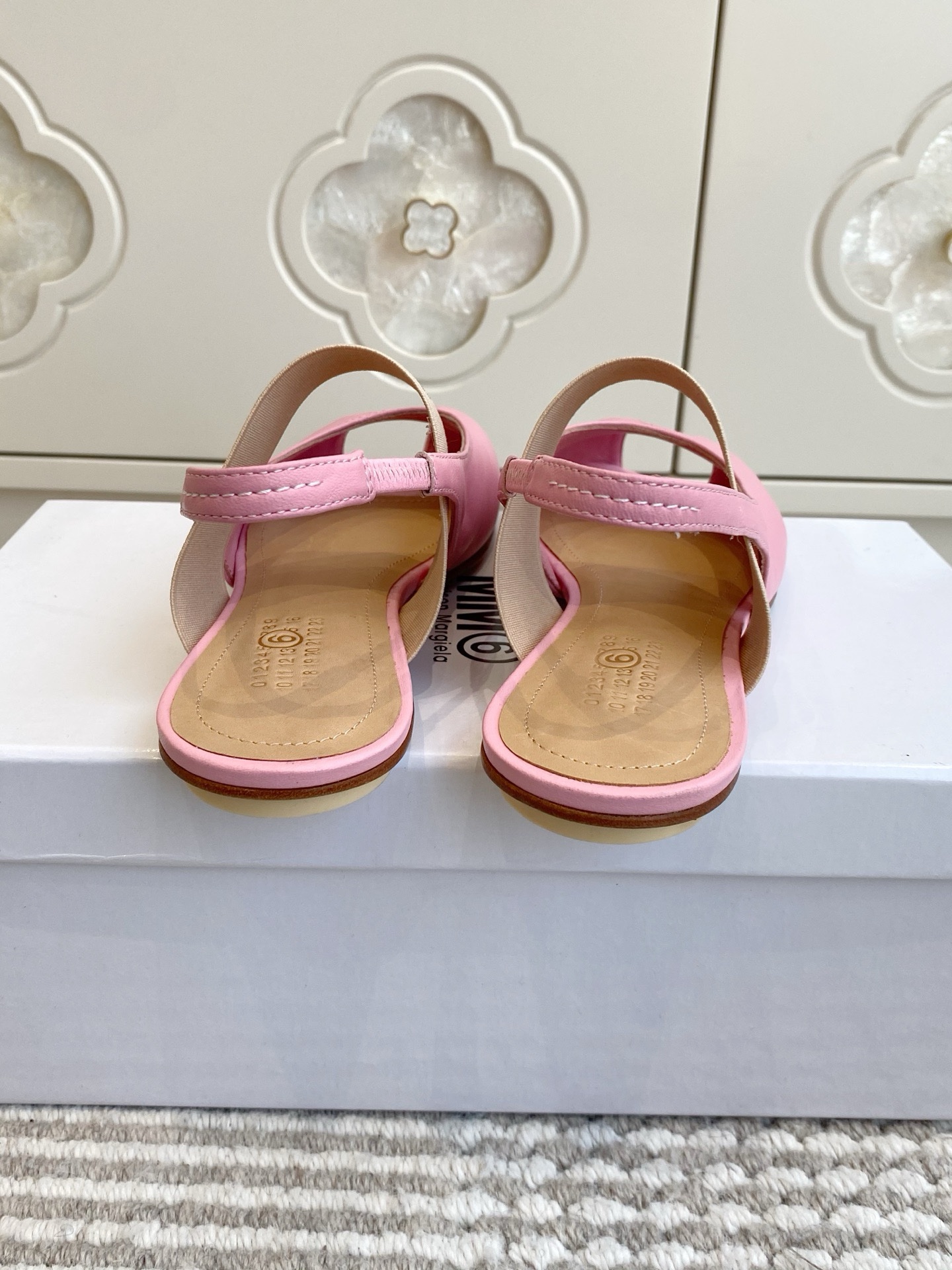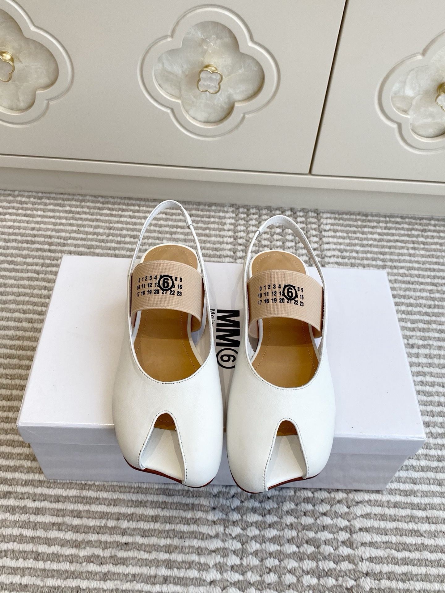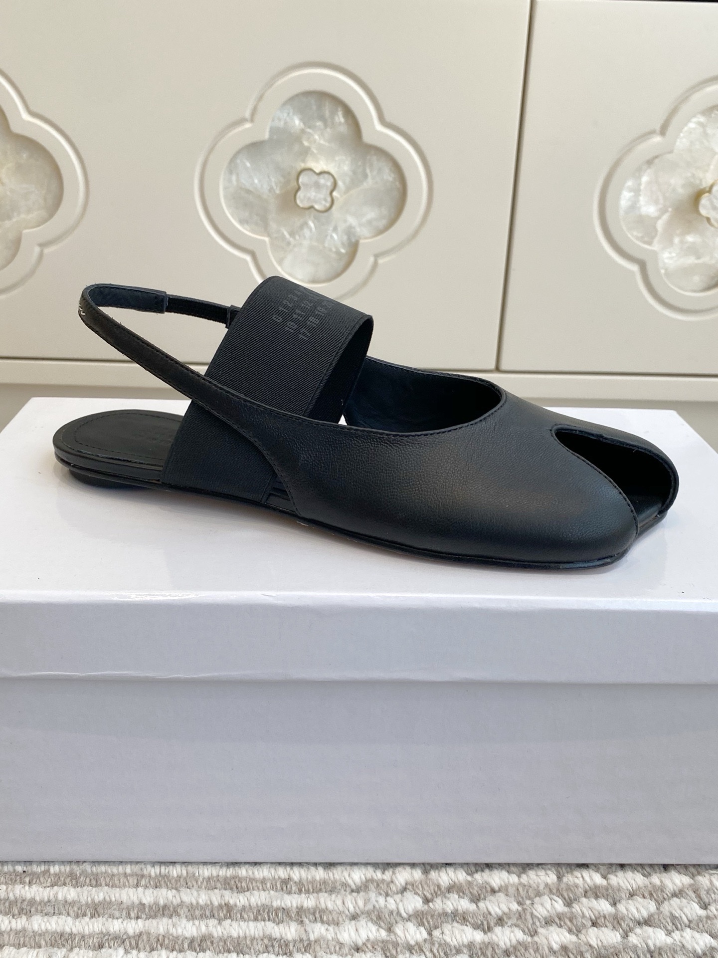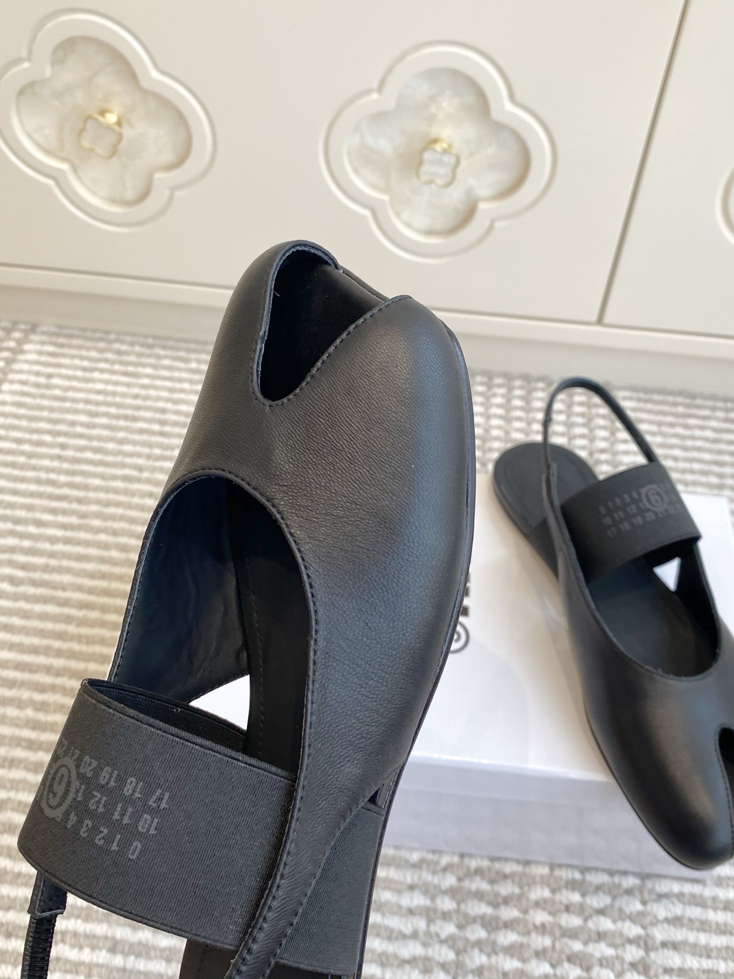 Эти балетки имеют верх из высококачественной овчины и подкладку из коровьей кожи, уникальный дизайн с открытым носком, фирменную эластичную ленту с логотипом MM6 и подошву из натуральной итальянской кожи. Абсолютно потрясающие!