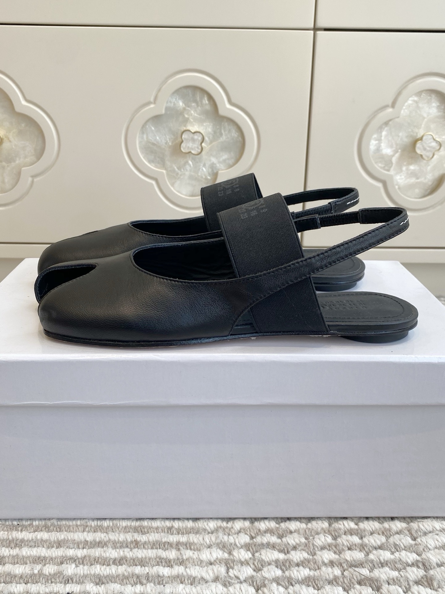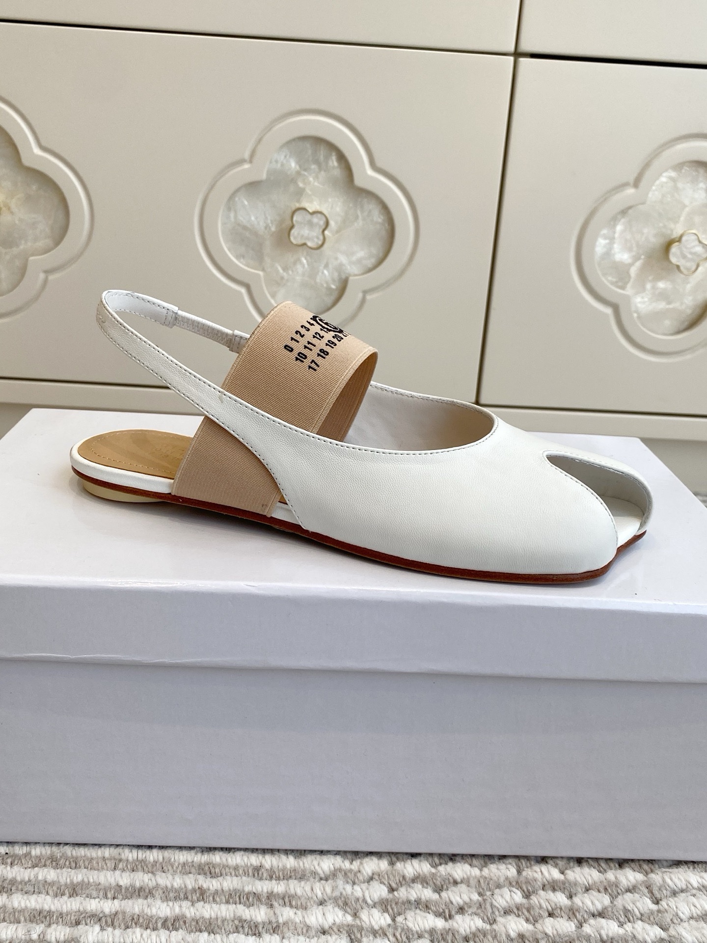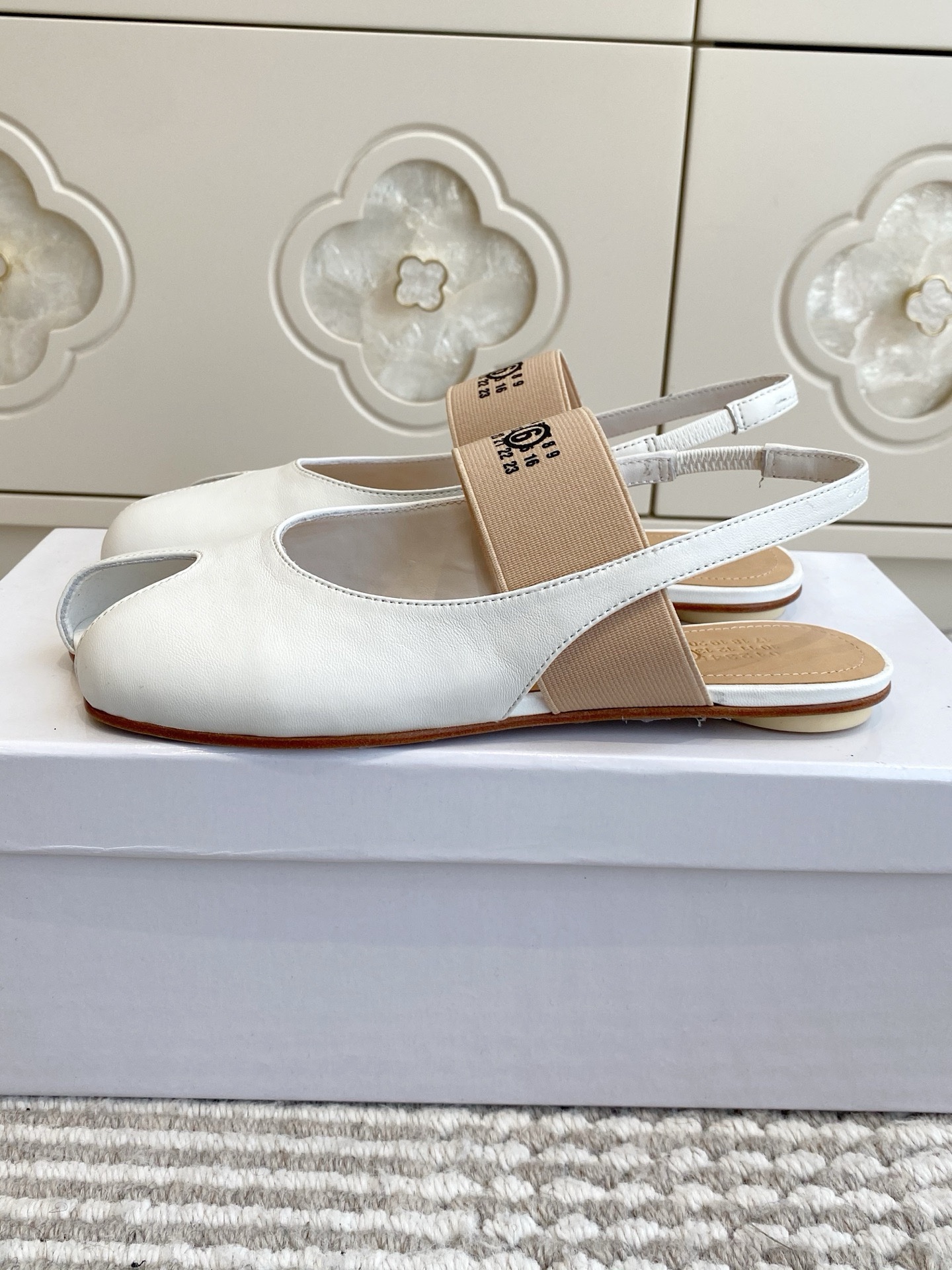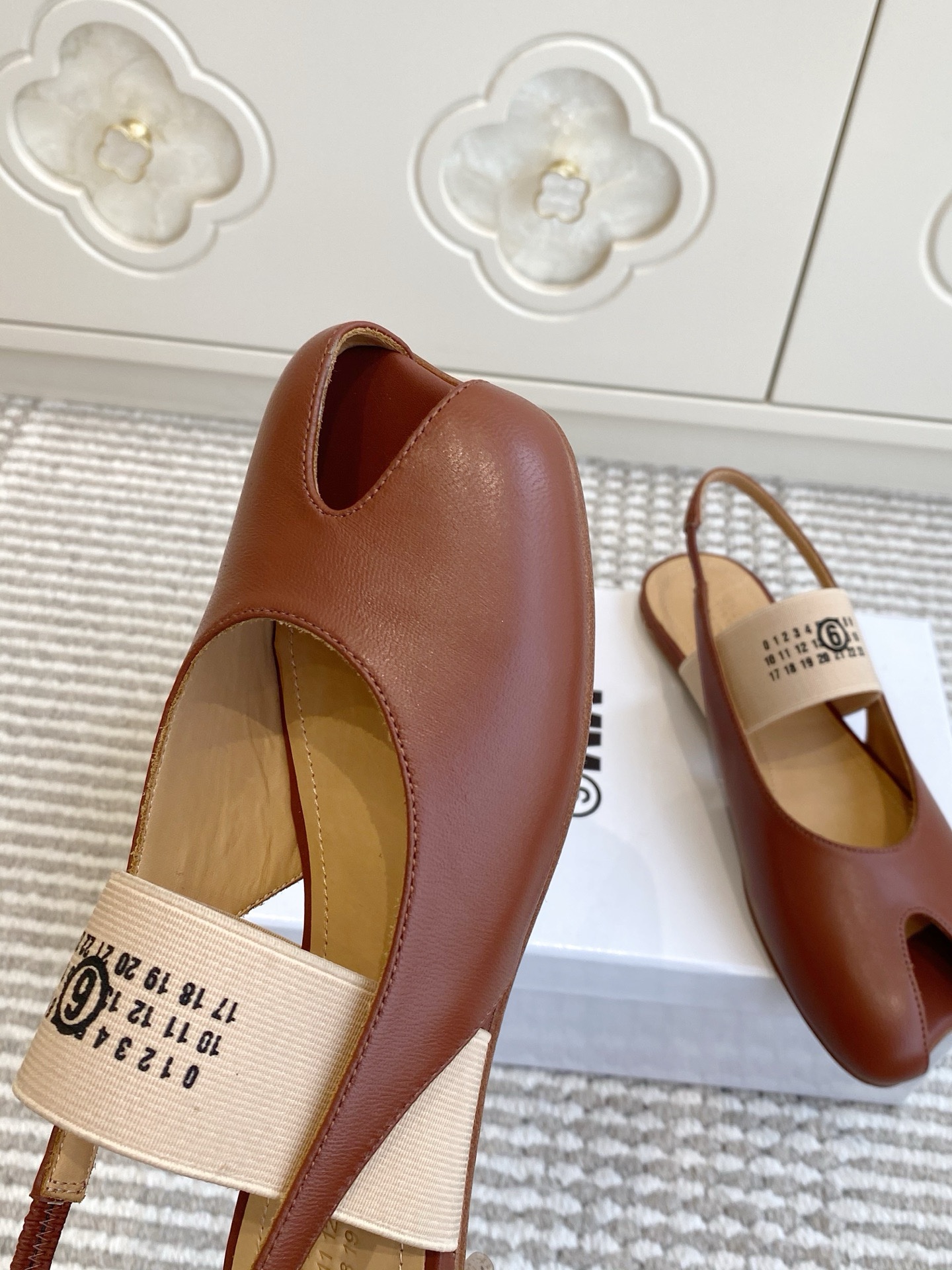 Эти балетки имеют верх из высококачественной овчины и подкладку из коровьей кожи, уникальный дизайн с открытым носком, фирменную эластичную ленту с логотипом MM6 и подошву из натуральной итальянской кожи. Абсолютно потрясающие!