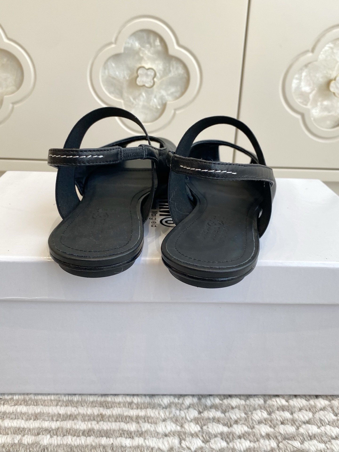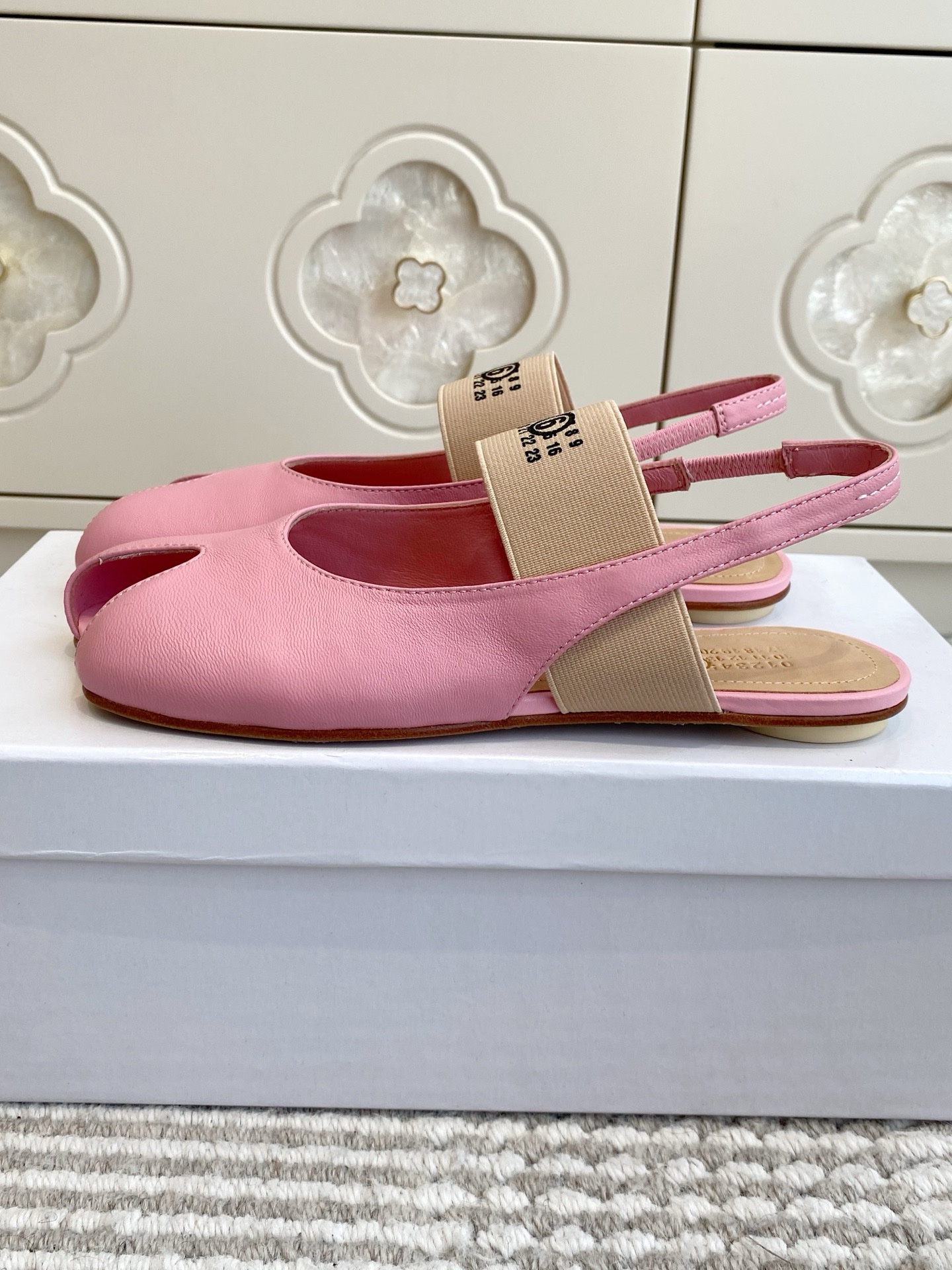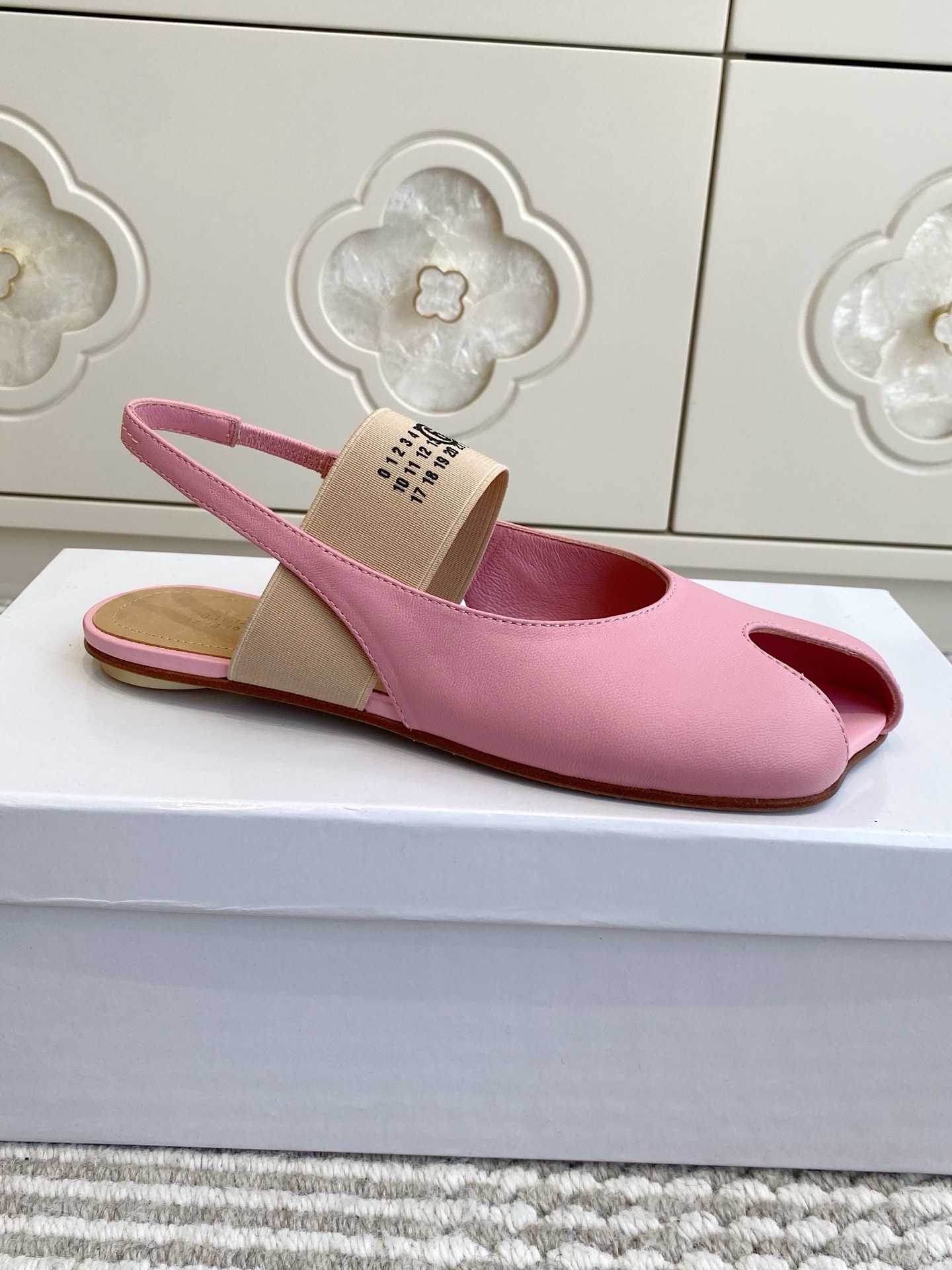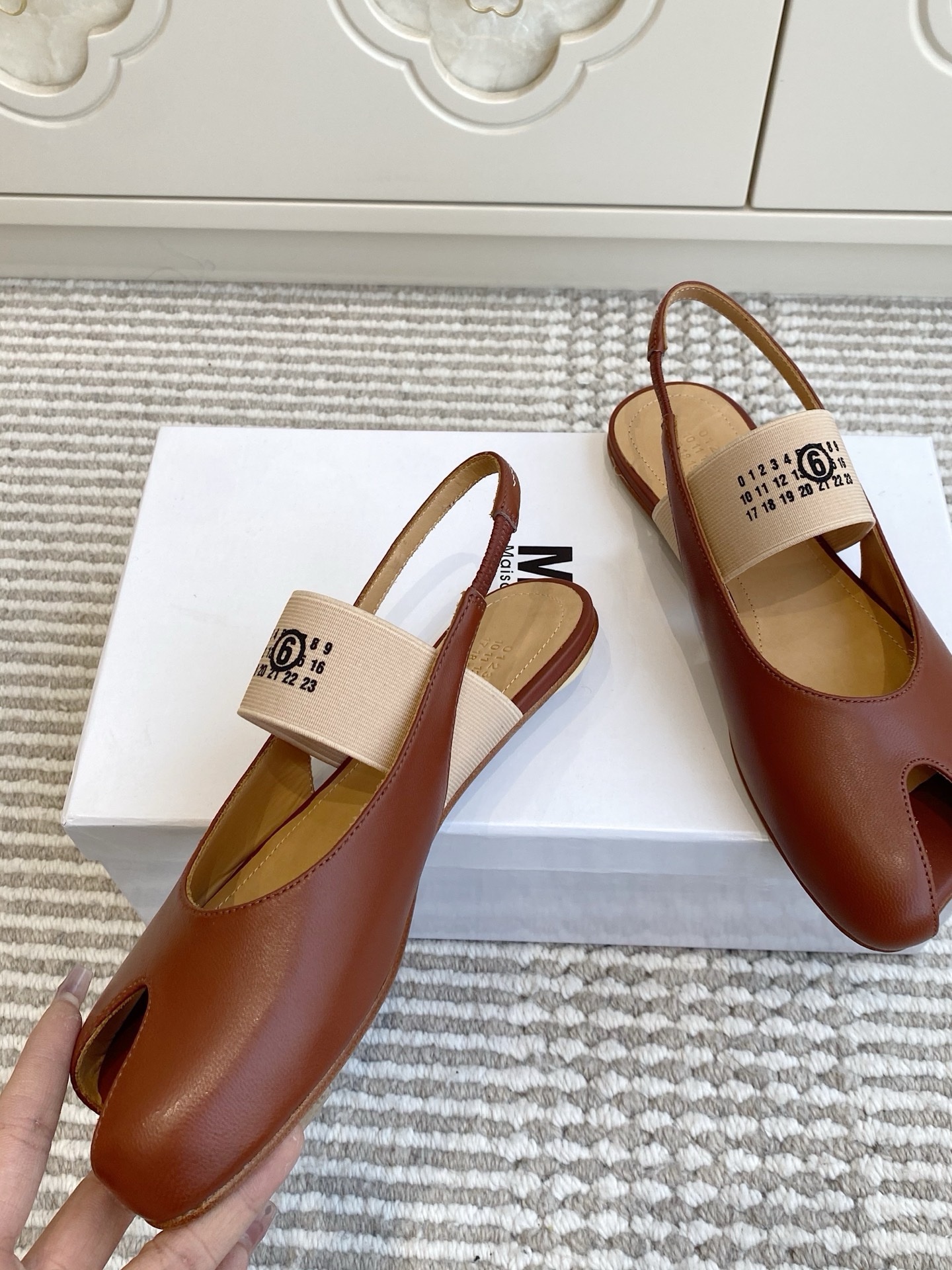 Эти балетки имеют верх из высококачественной овчины и подкладку из коровьей кожи, уникальный дизайн с открытым носком, фирменную эластичную ленту с логотипом MM6 и подошву из натуральной итальянской кожи. Абсолютно потрясающие!