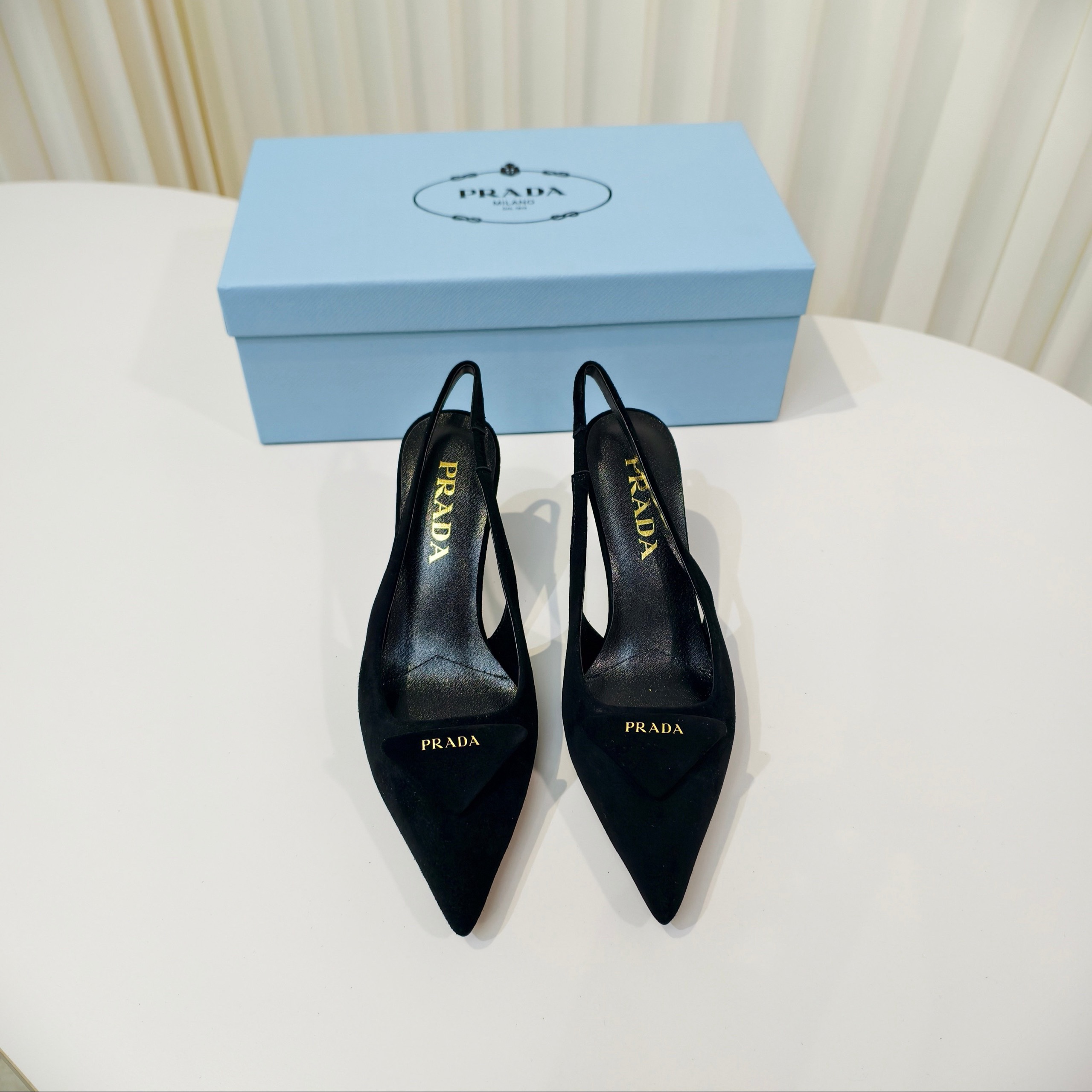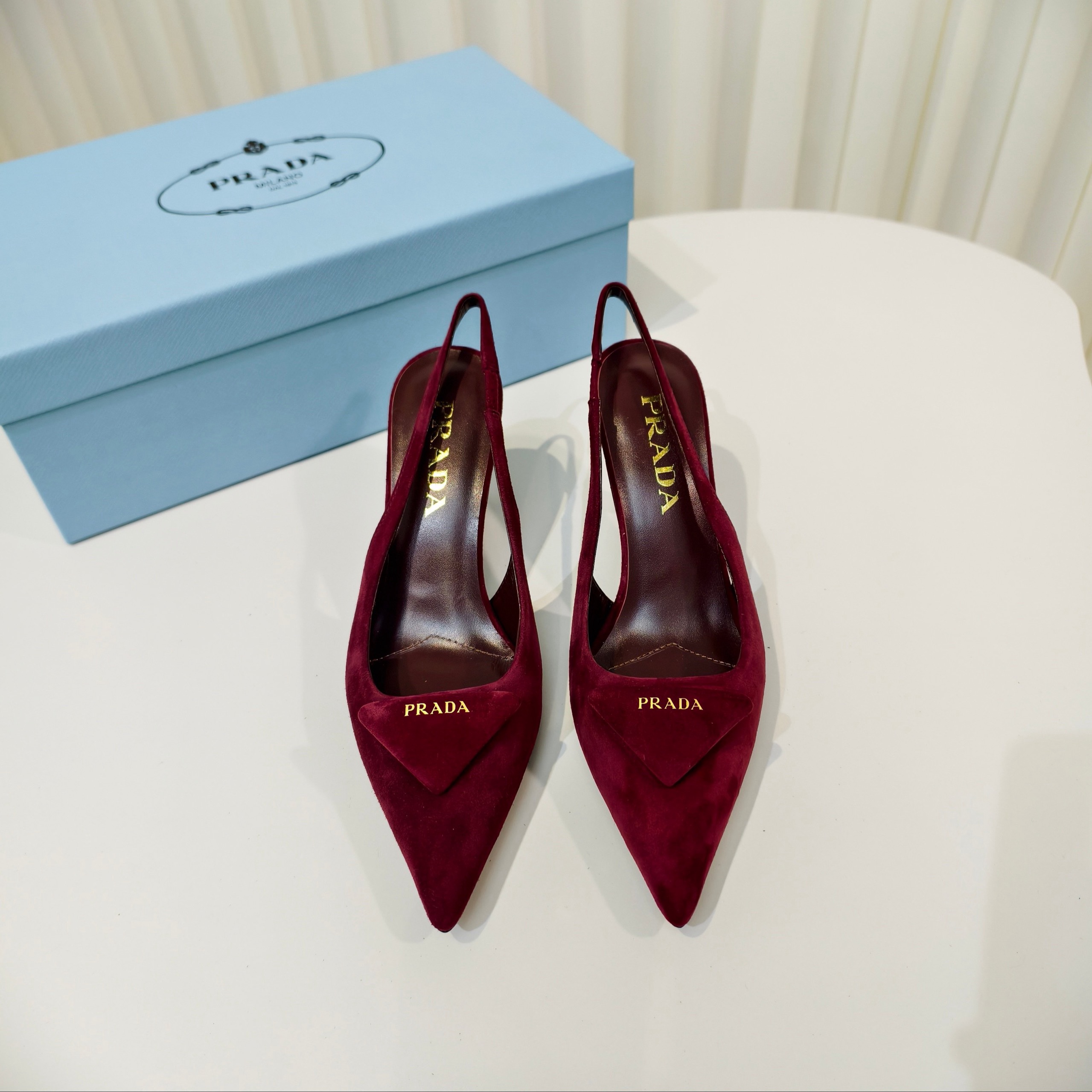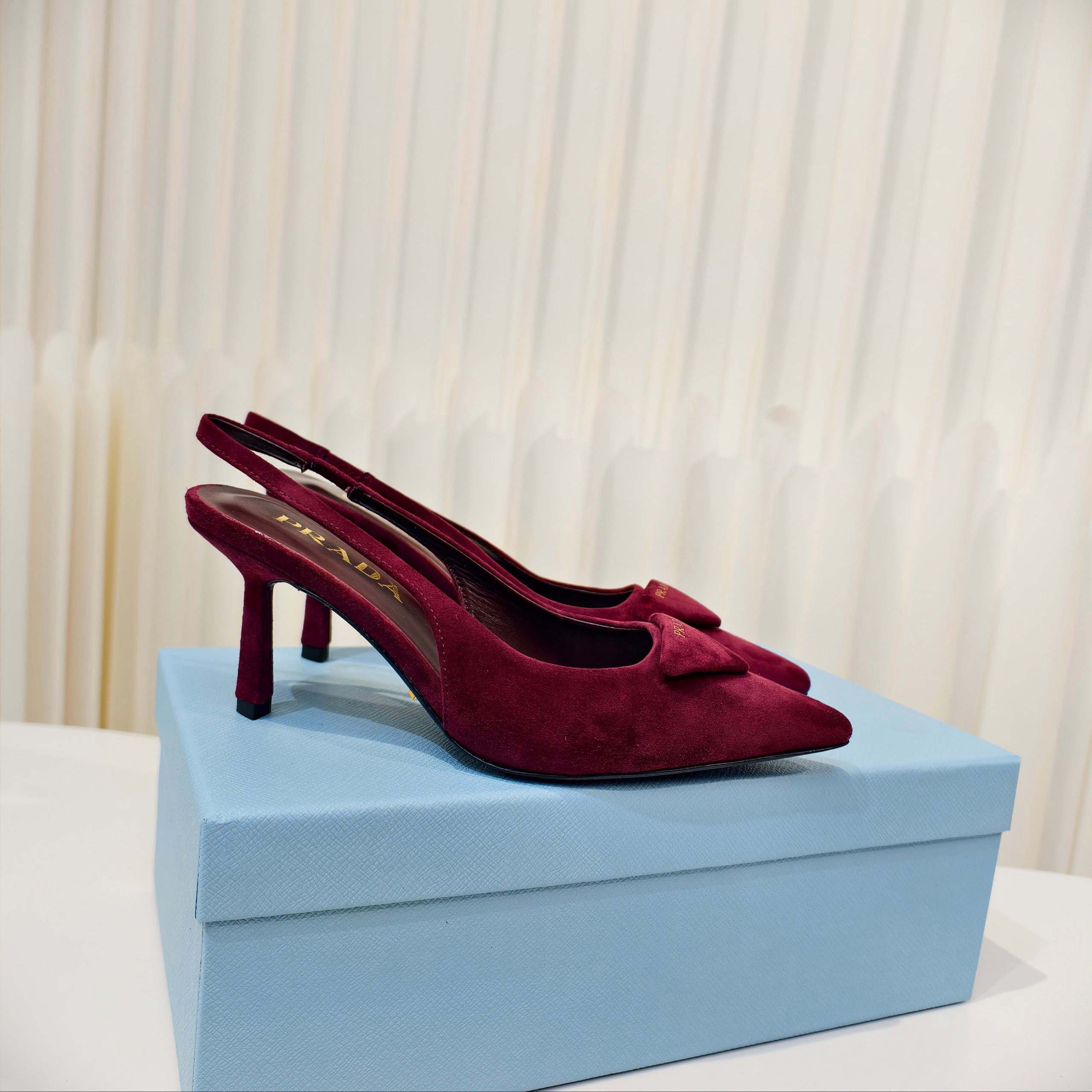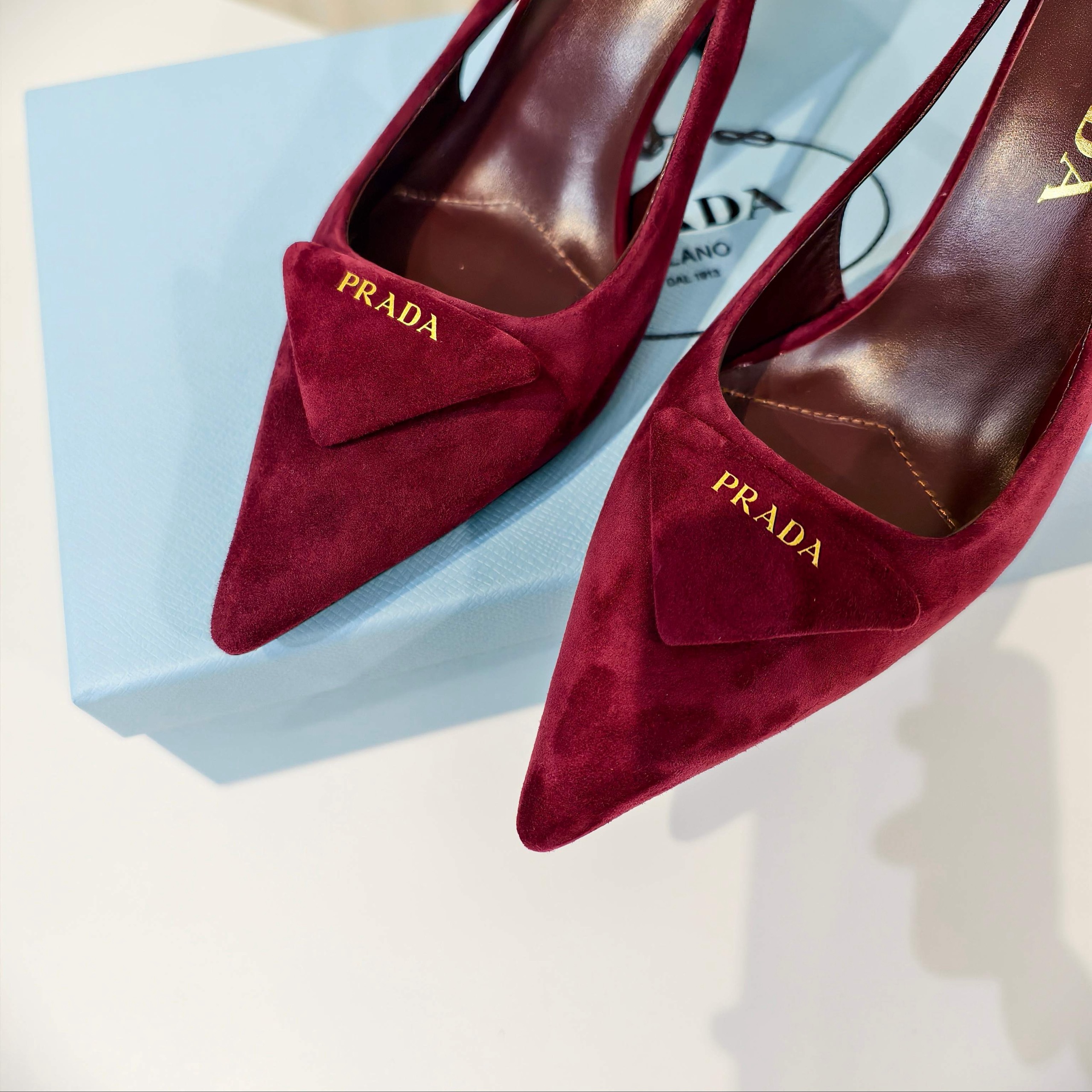 Туфли Prada на высоком каблуке из замши и овечьей кожи с ремешком сзади