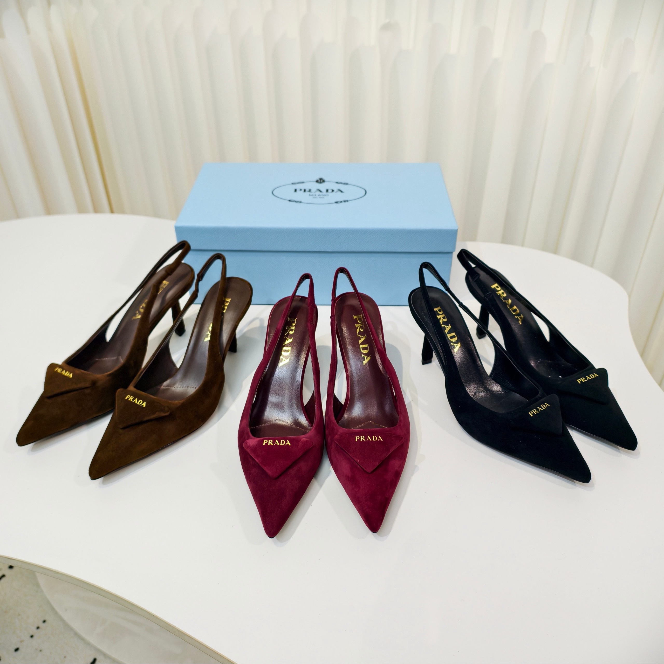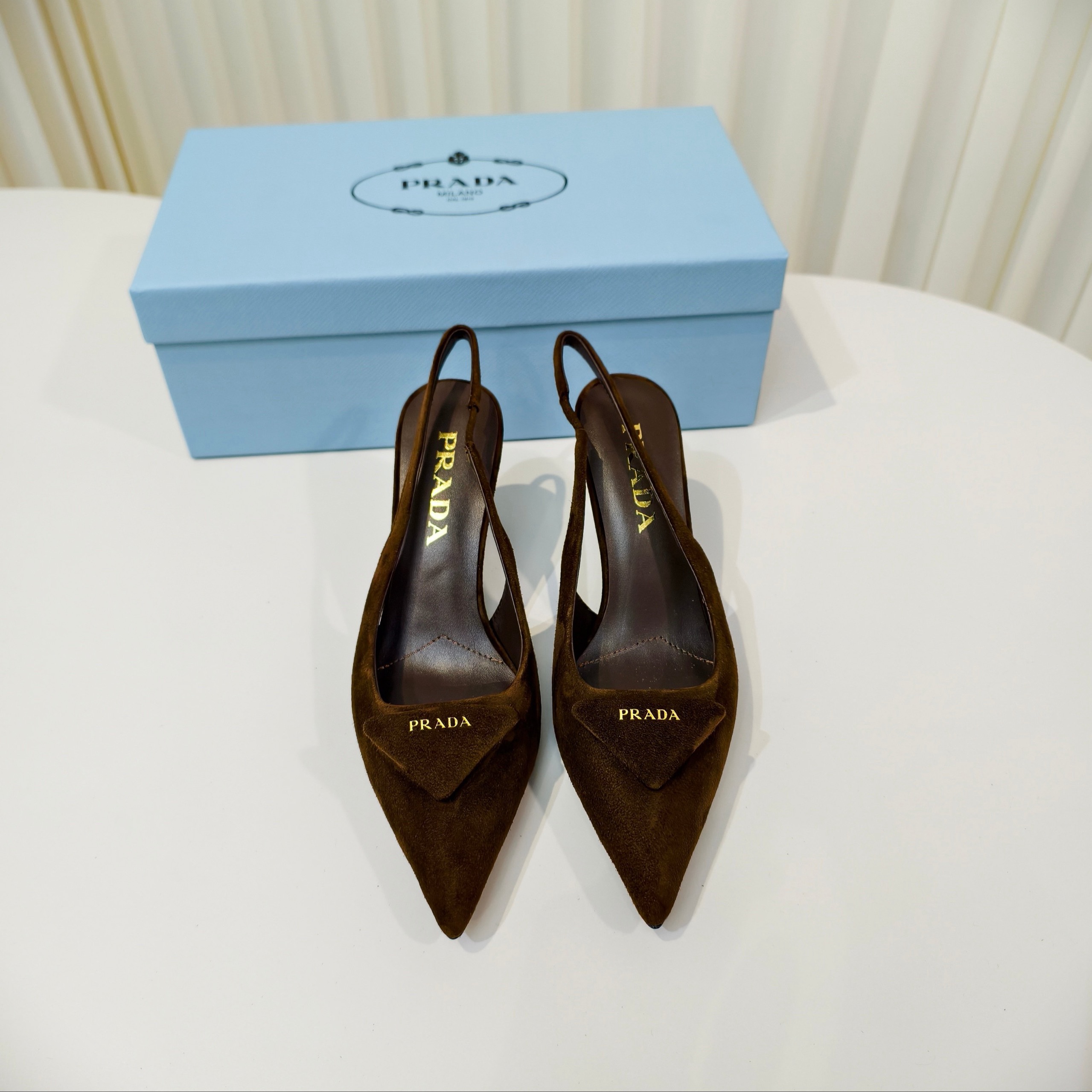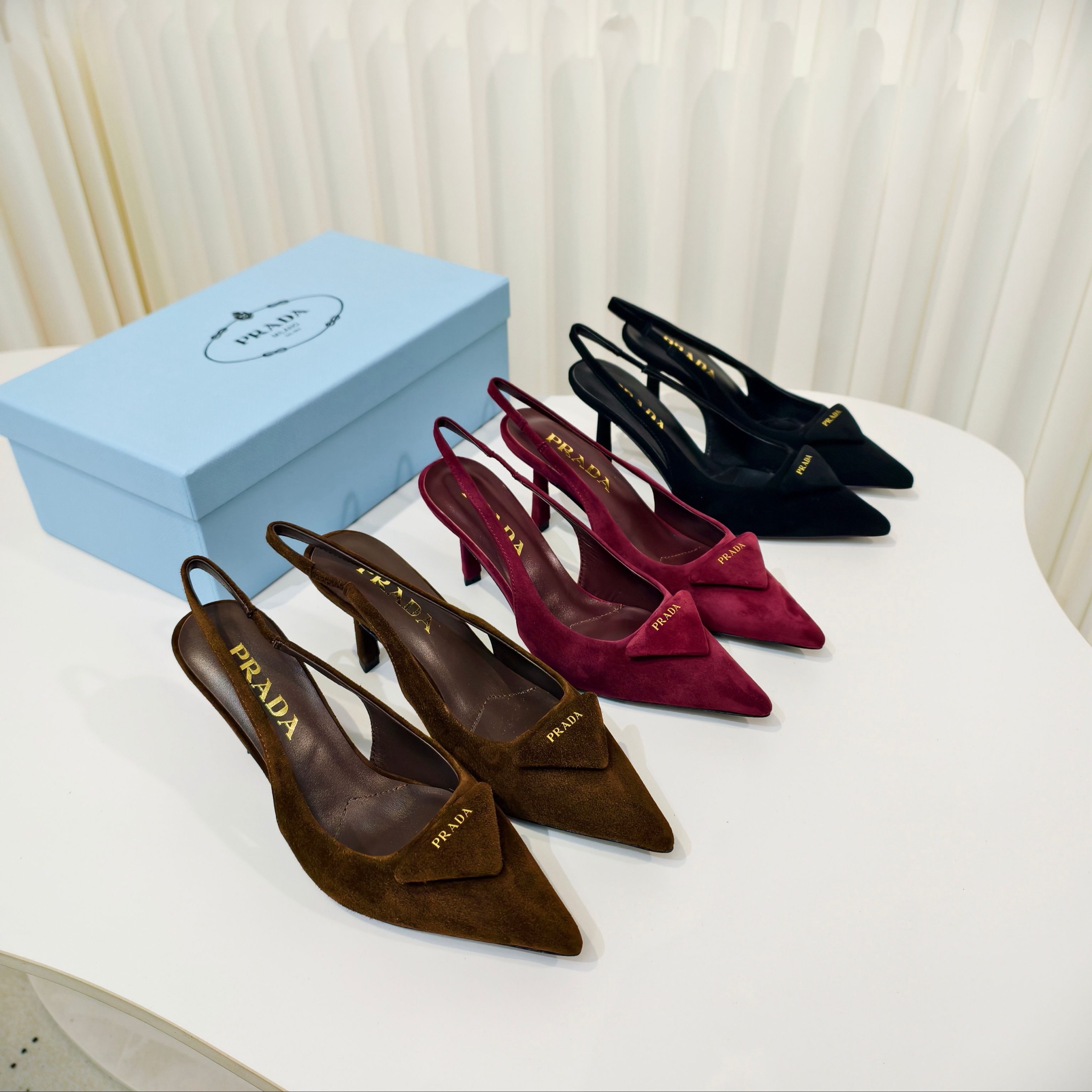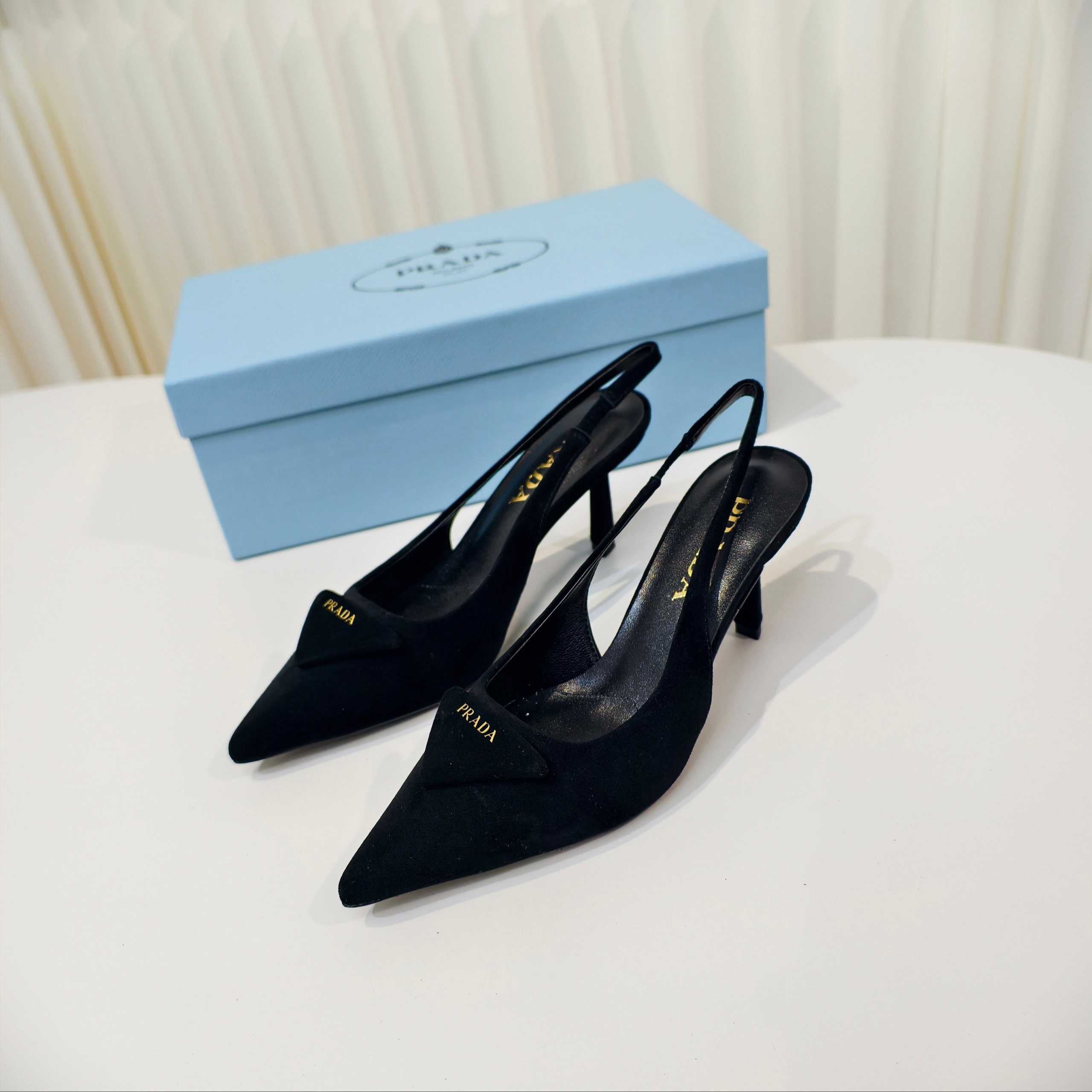 Туфли Prada на высоком каблуке из замши и овечьей кожи с ремешком сзади